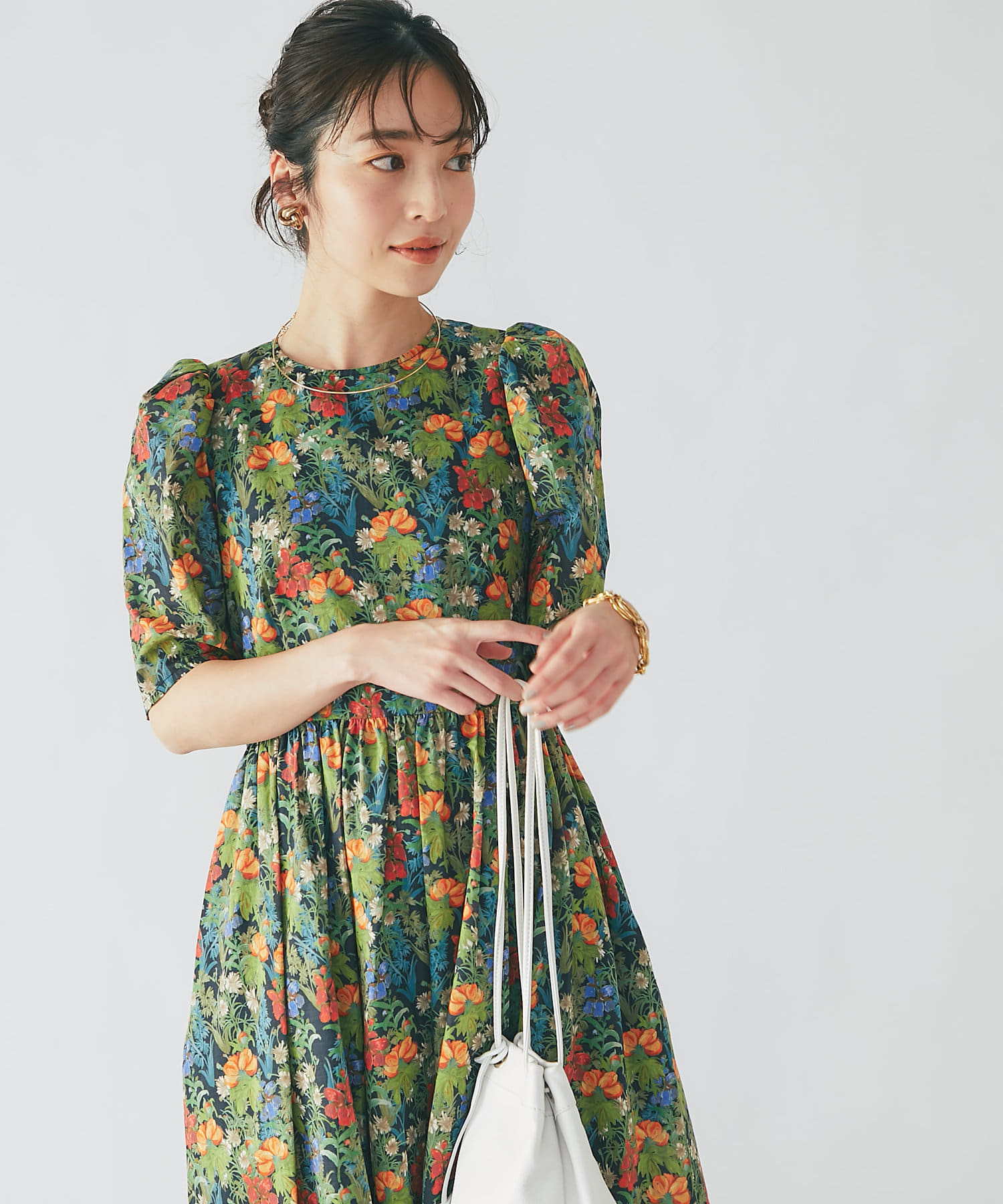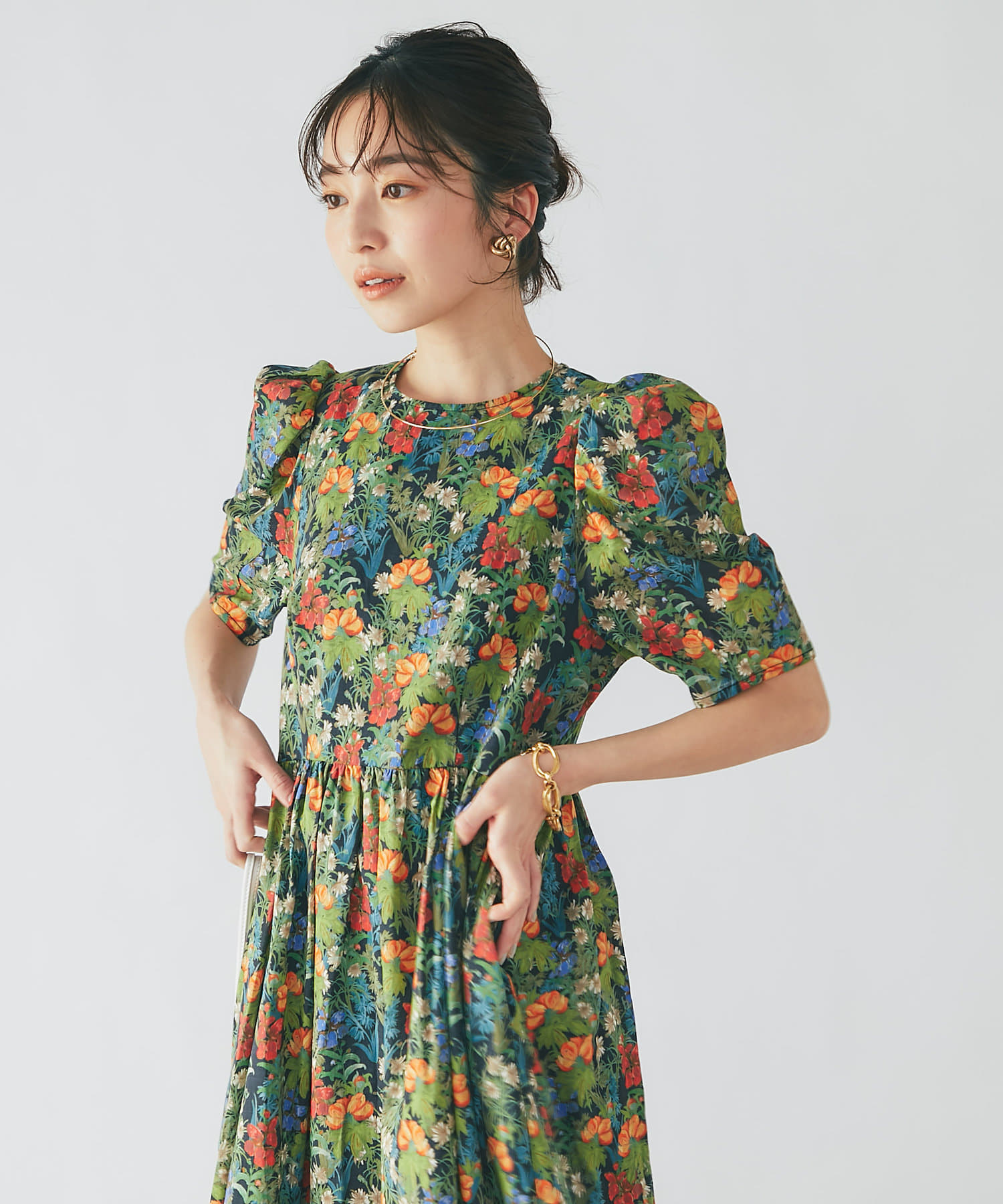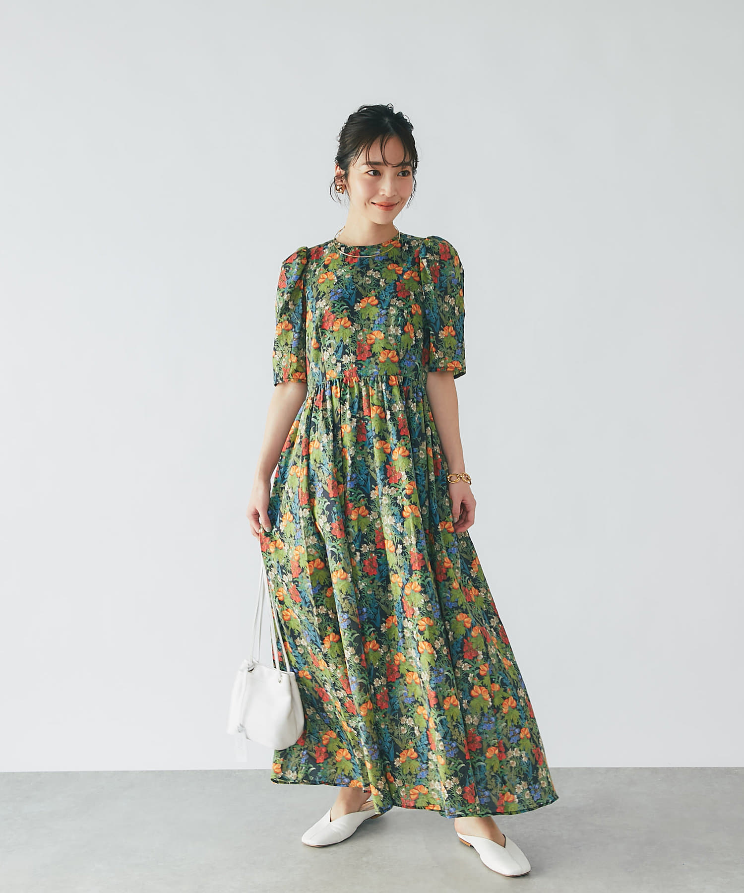 #大人カジュアル #きれいめカジュアル #上品カジュアル #ボタニカル #フラワープリント #ウエスト切り替え #スタイルアップ #脚長効果 #ワンピース #パワショル #パワショルワンピース