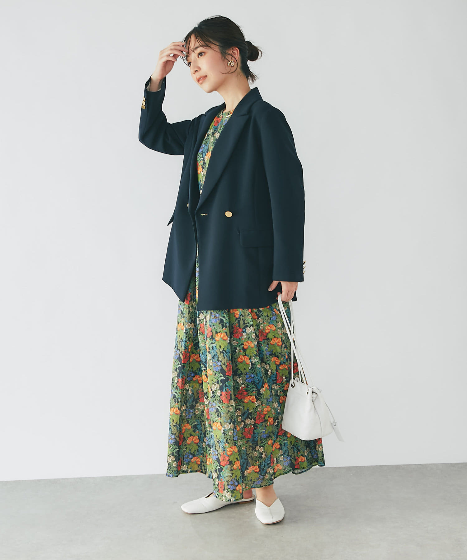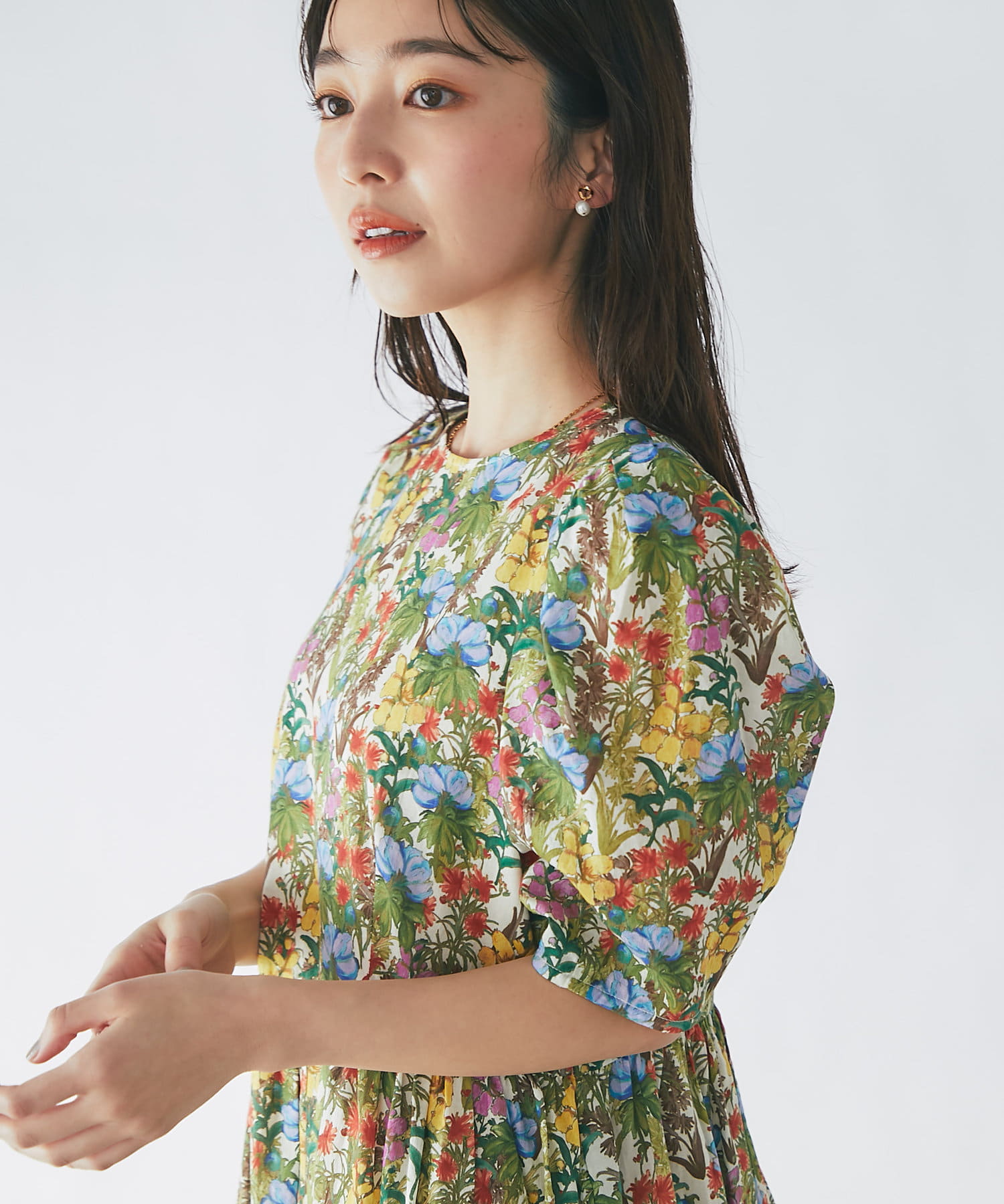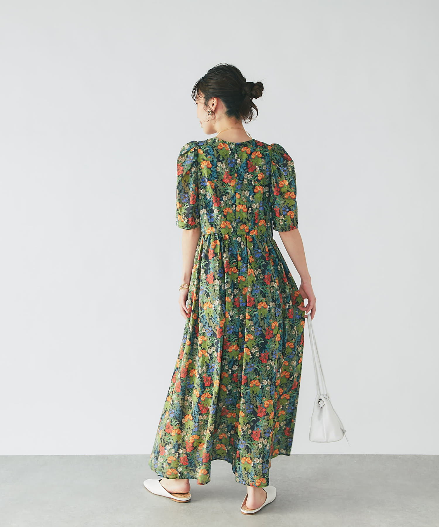 #大人カジュアル #きれいめカジュアル #上品カジュアル #ボタニカル #フラワープリント #ウエスト切り替え #スタイルアップ #脚長効果 #ワンピース #パワショル #パワショルワンピース