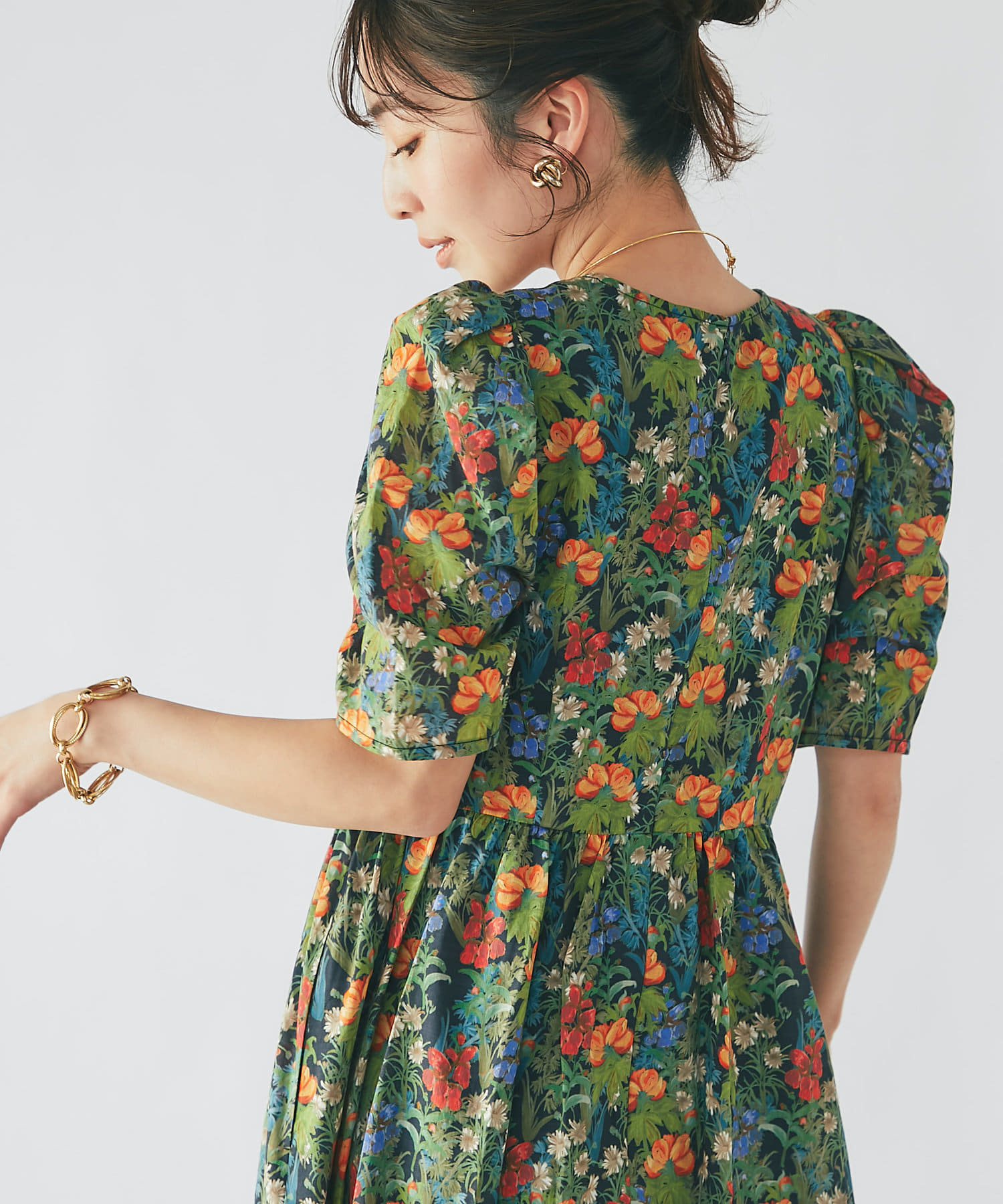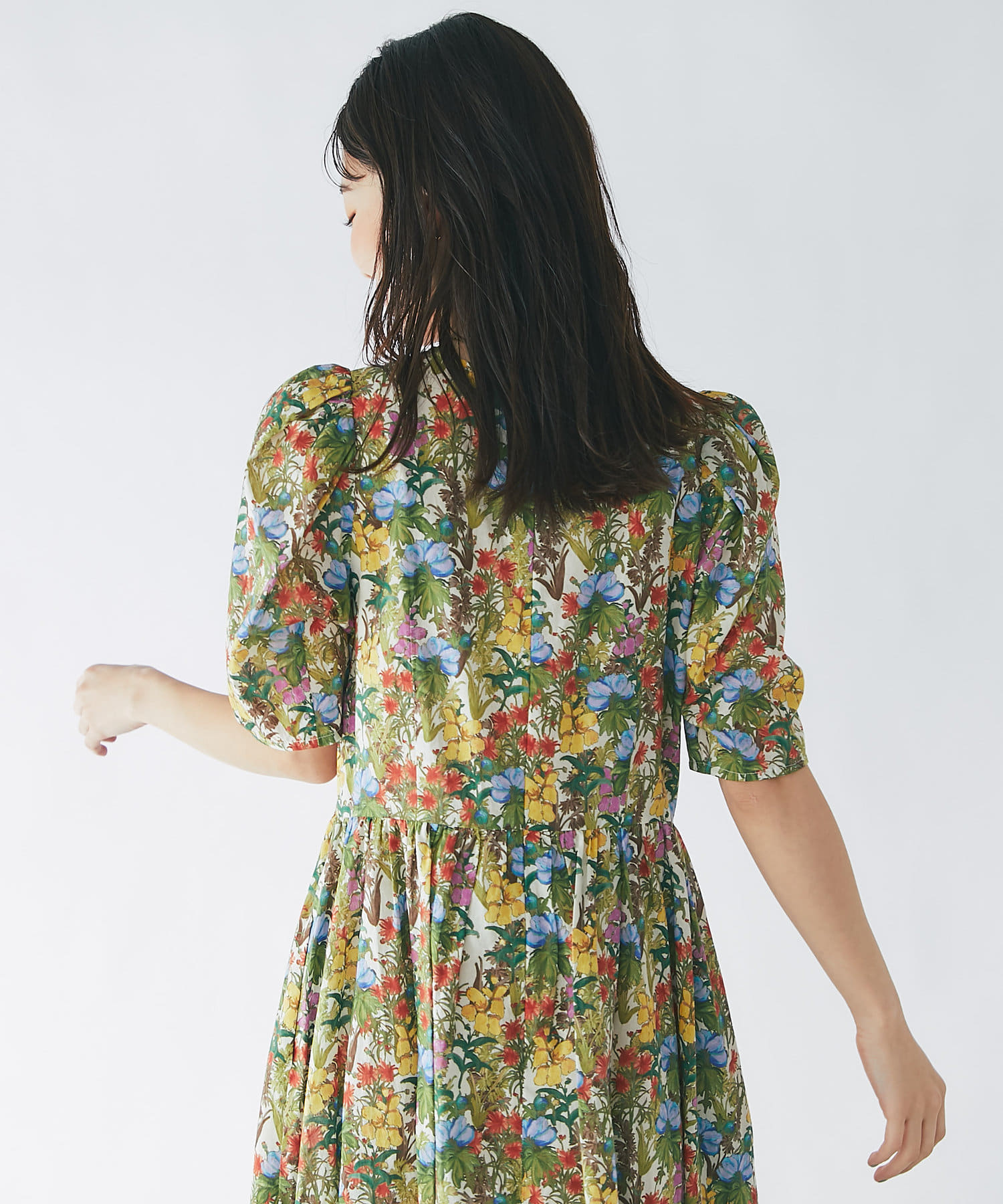 【シーズンムードを引き立てる】ボタニカルプリントパワショルワンピース