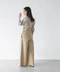 セットアップのスカートと合わせて着ればお呼ばれスタイルにもピッタリの華やかコーデに!