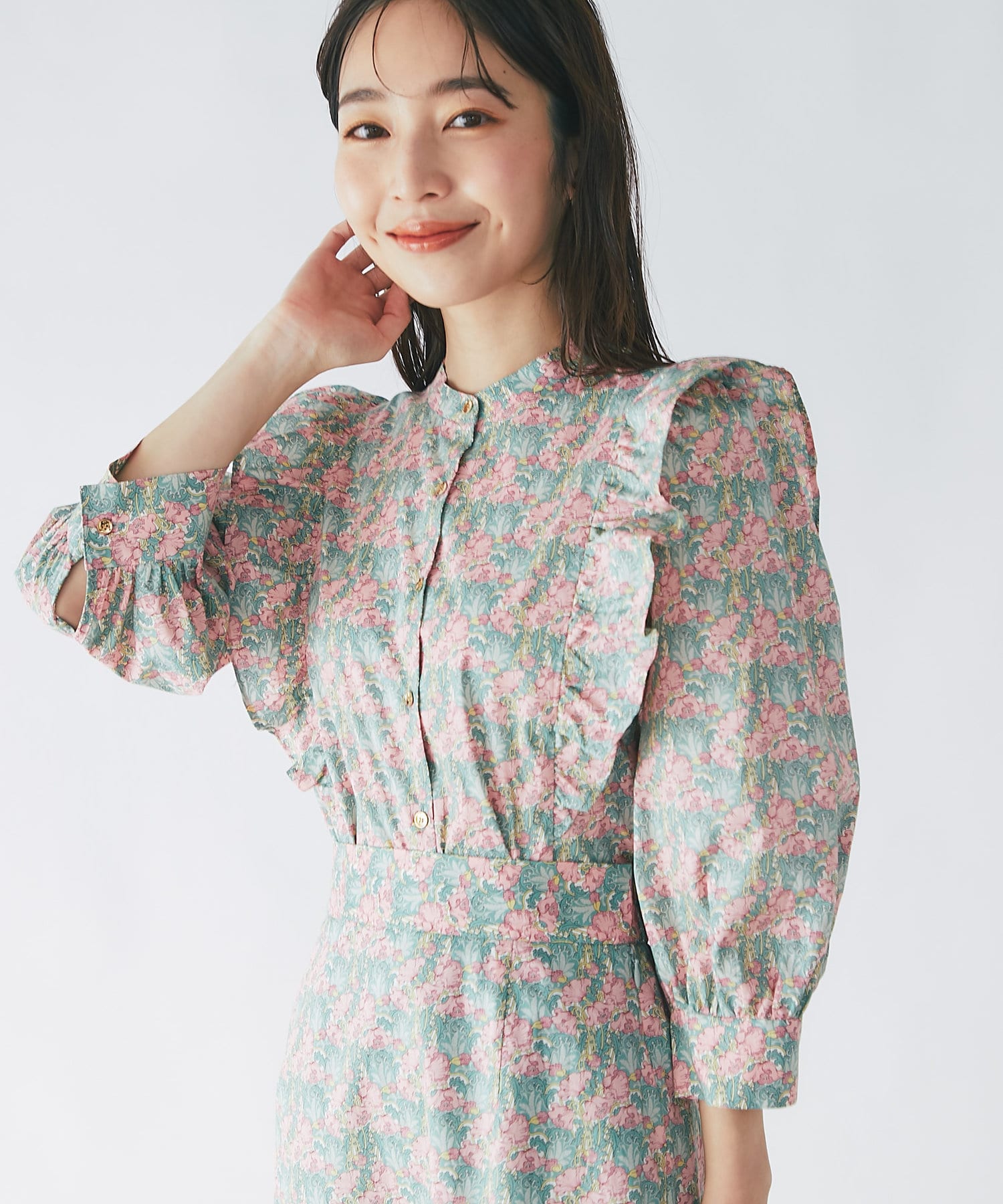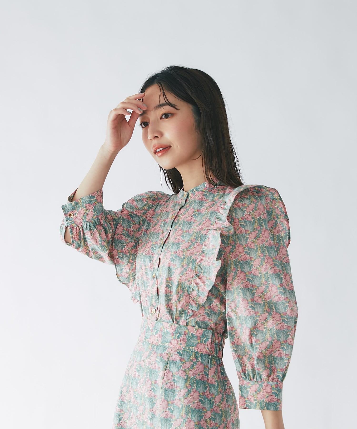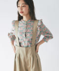ミントの追加オーダー決定!フリルデザインがポイントのプリントブラウス