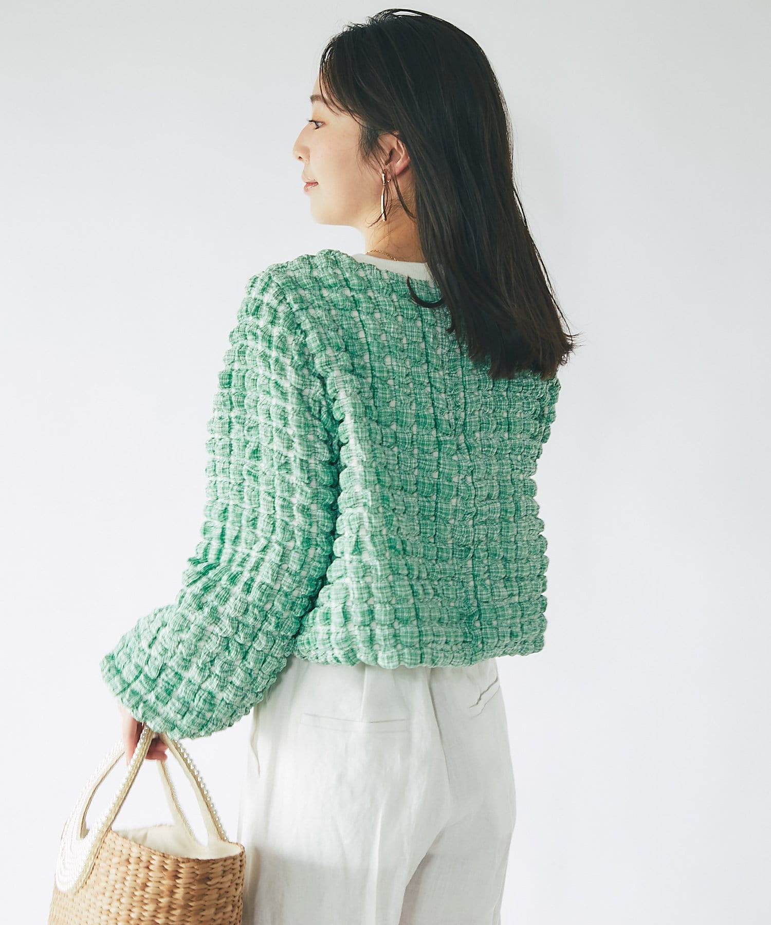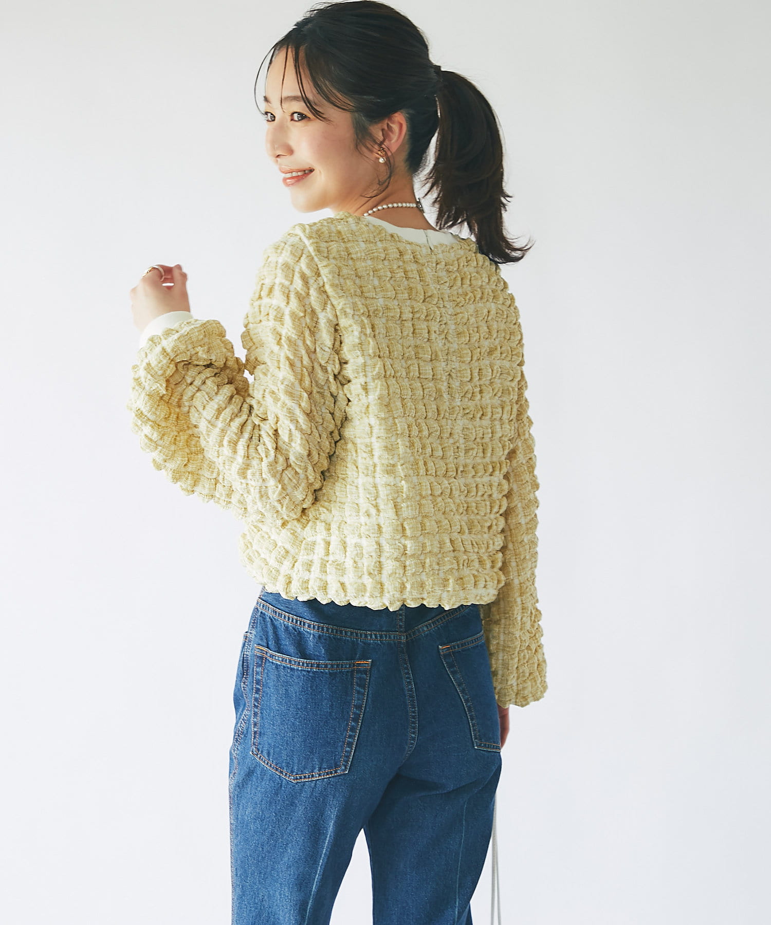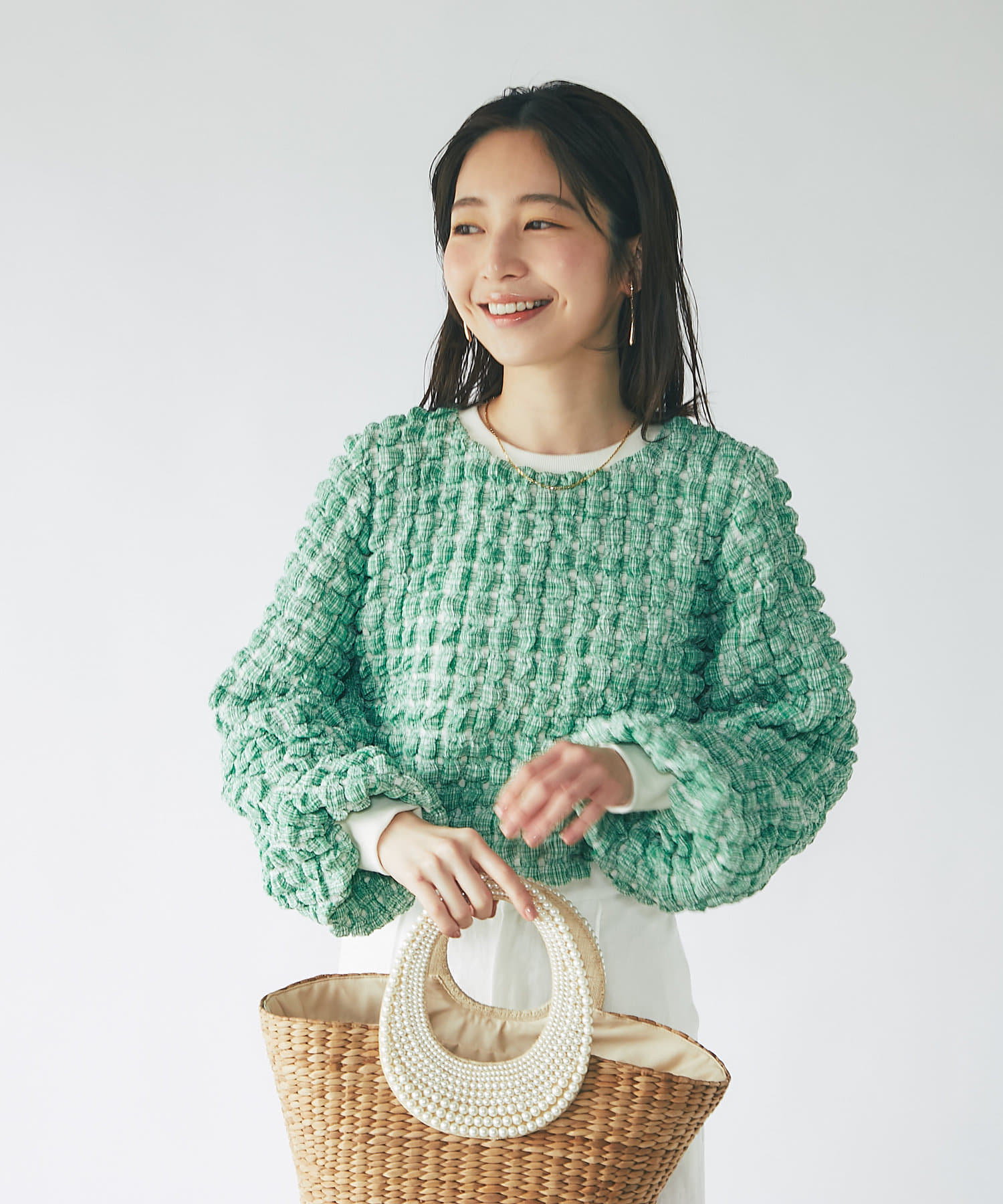 ぽこぽこと凹凸感のあるジャガード生地を使用したデザインブラウス。