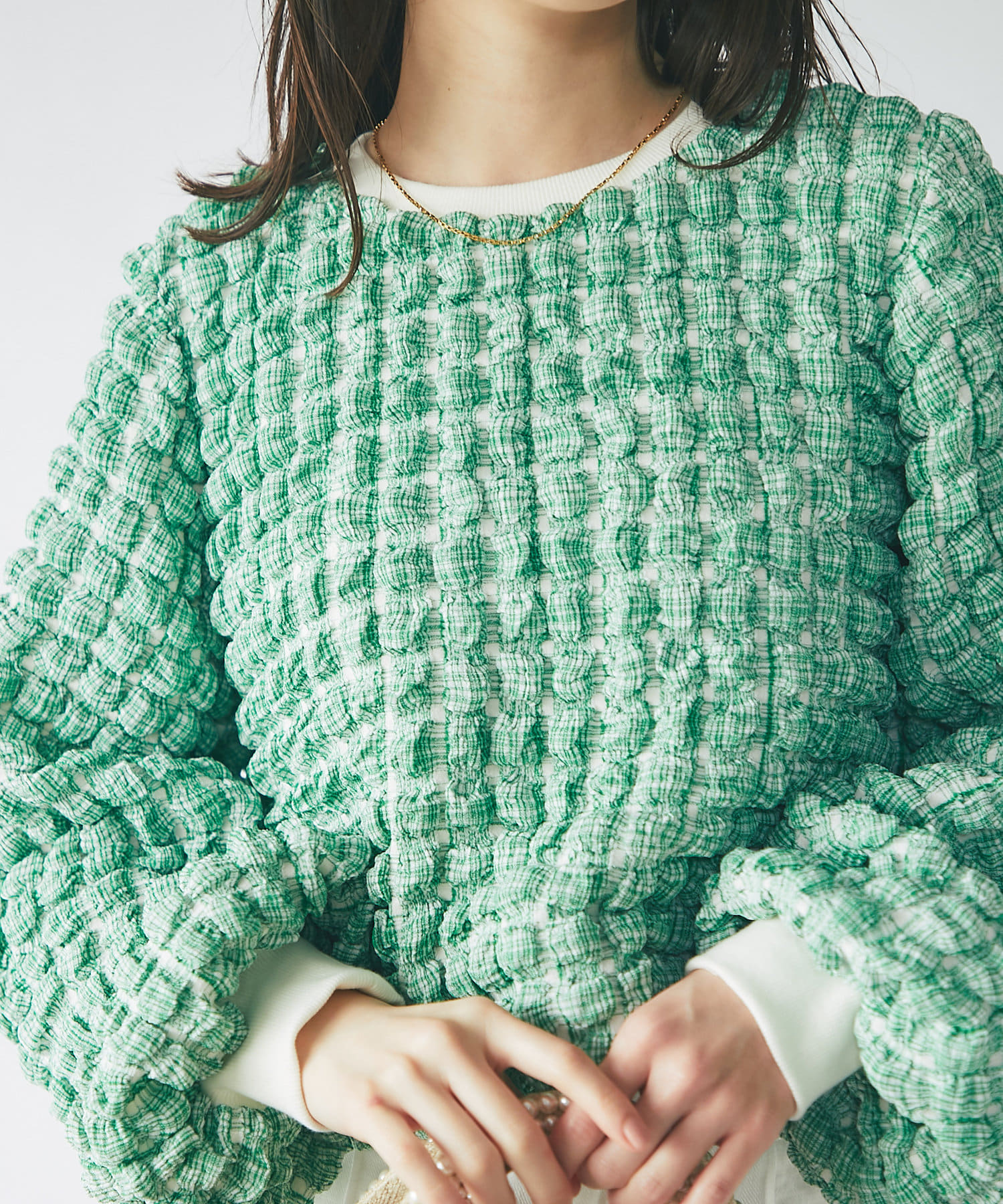・ぽこぽこジャガードリブ付きブラウス(LBZ1022304A0007)