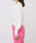 また、ネックラインはすっきりとデコルテを美しく演出し、一枚着としても着用頂ける浅めのVネックとなっております。