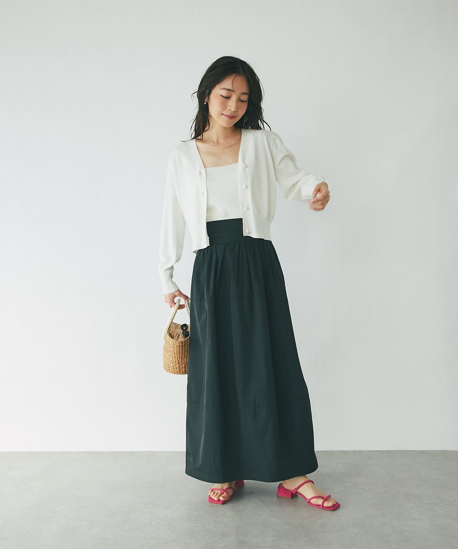 同素材のビスチェとのセットアップもおすすめのアイテムです。