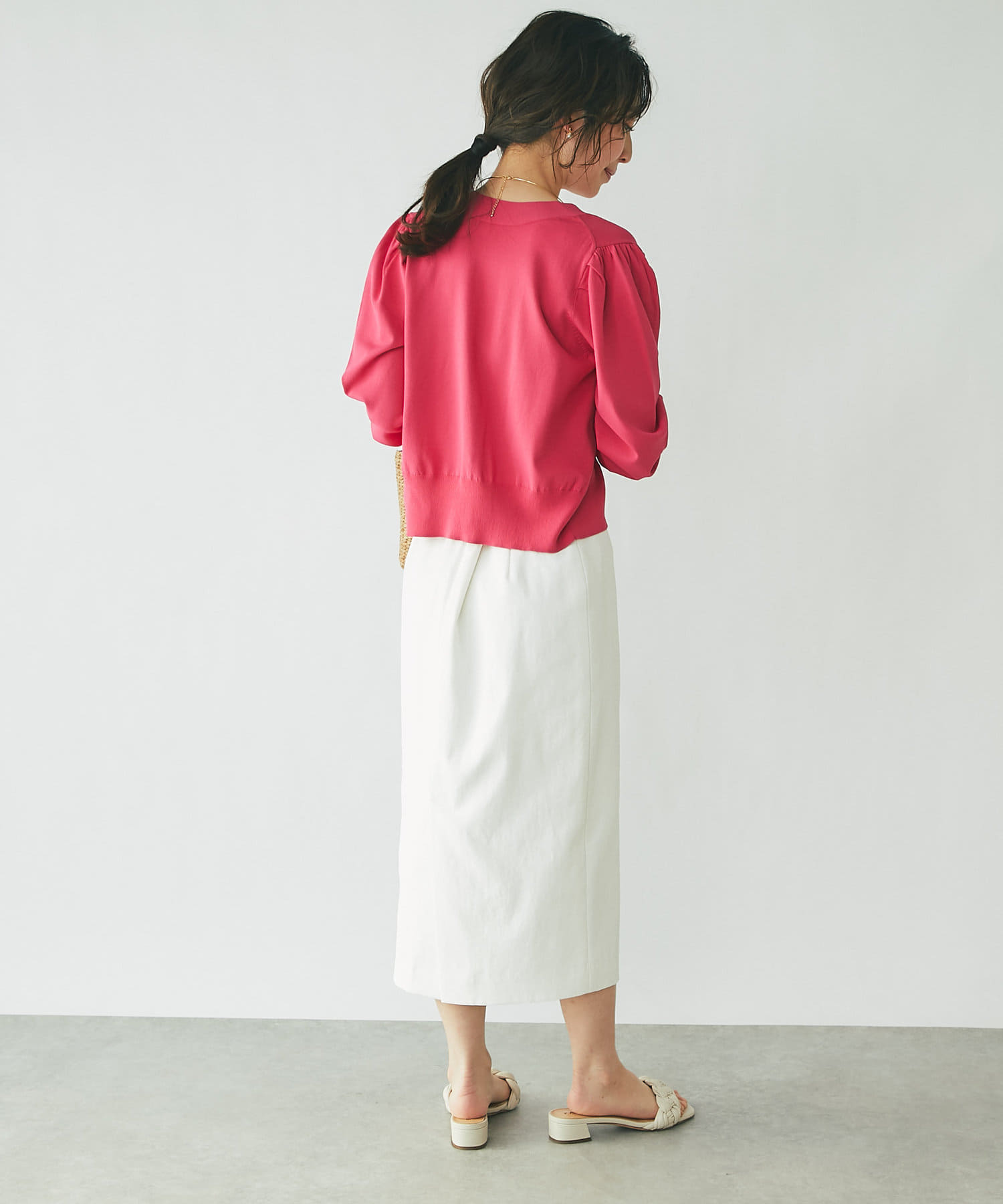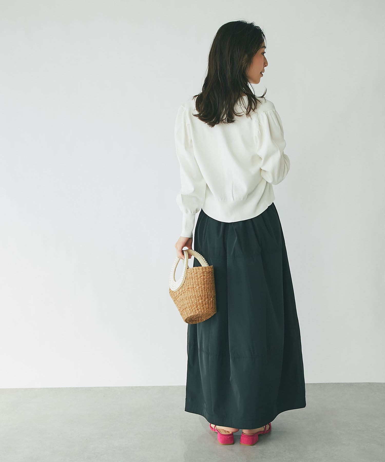また、ラブティックボンボンでも人気のパール釦を使用し、袖山にタックを入れることでより女性らしく着て頂けるアイテム。