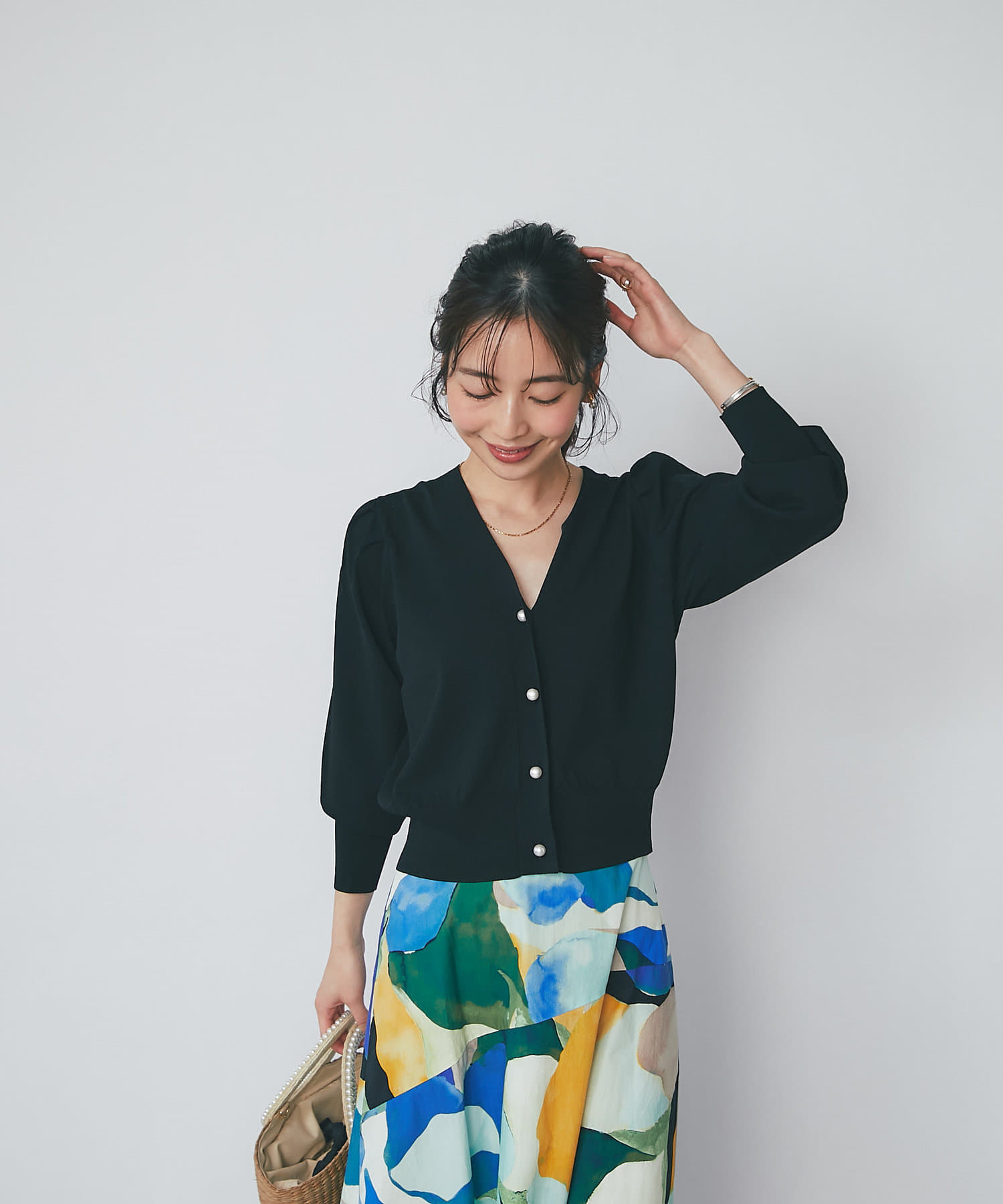 人気のクールタッチシリーズにパール釦のカーディガンが登場