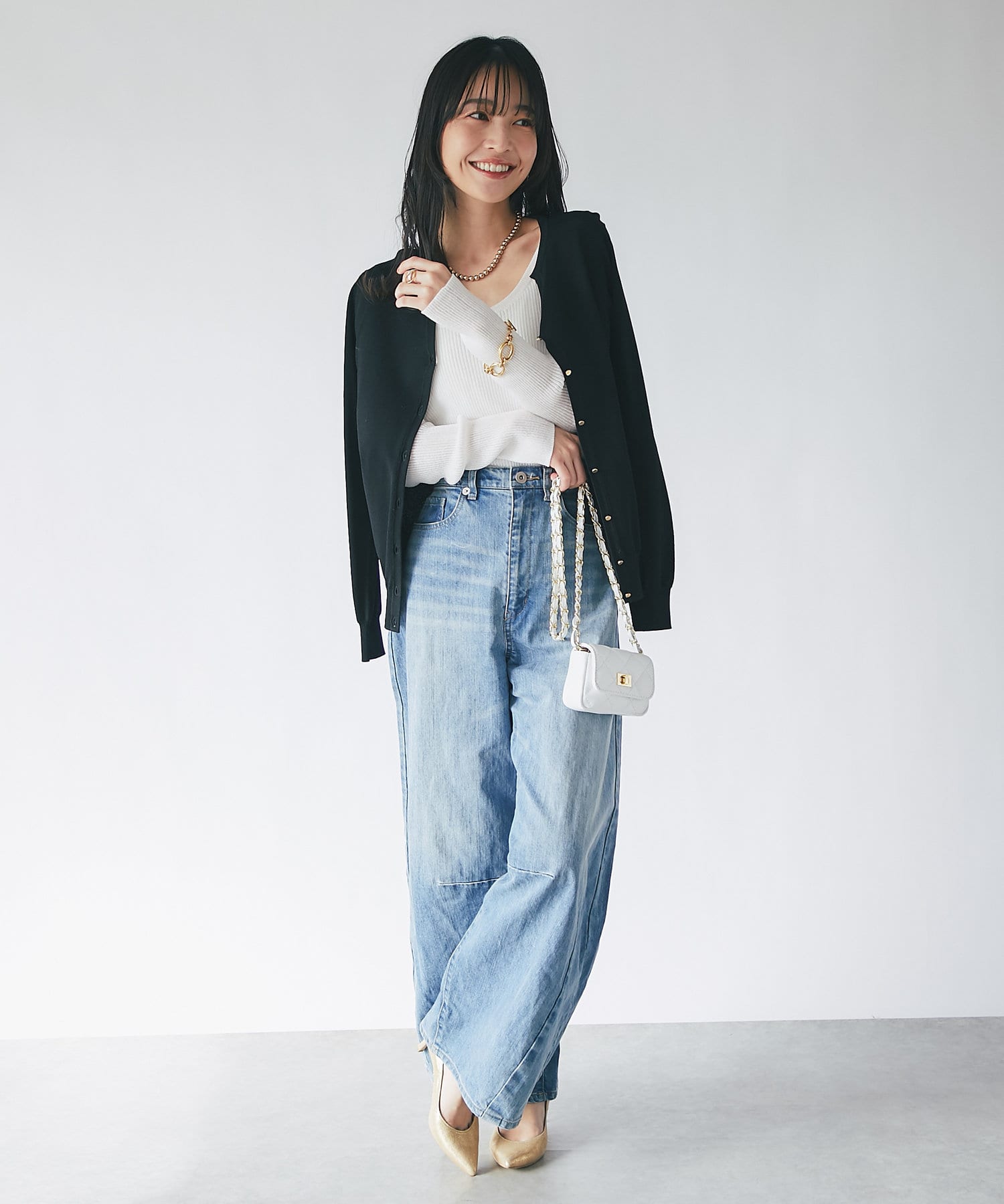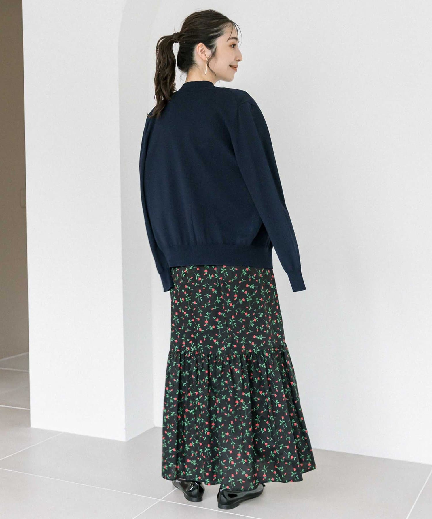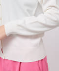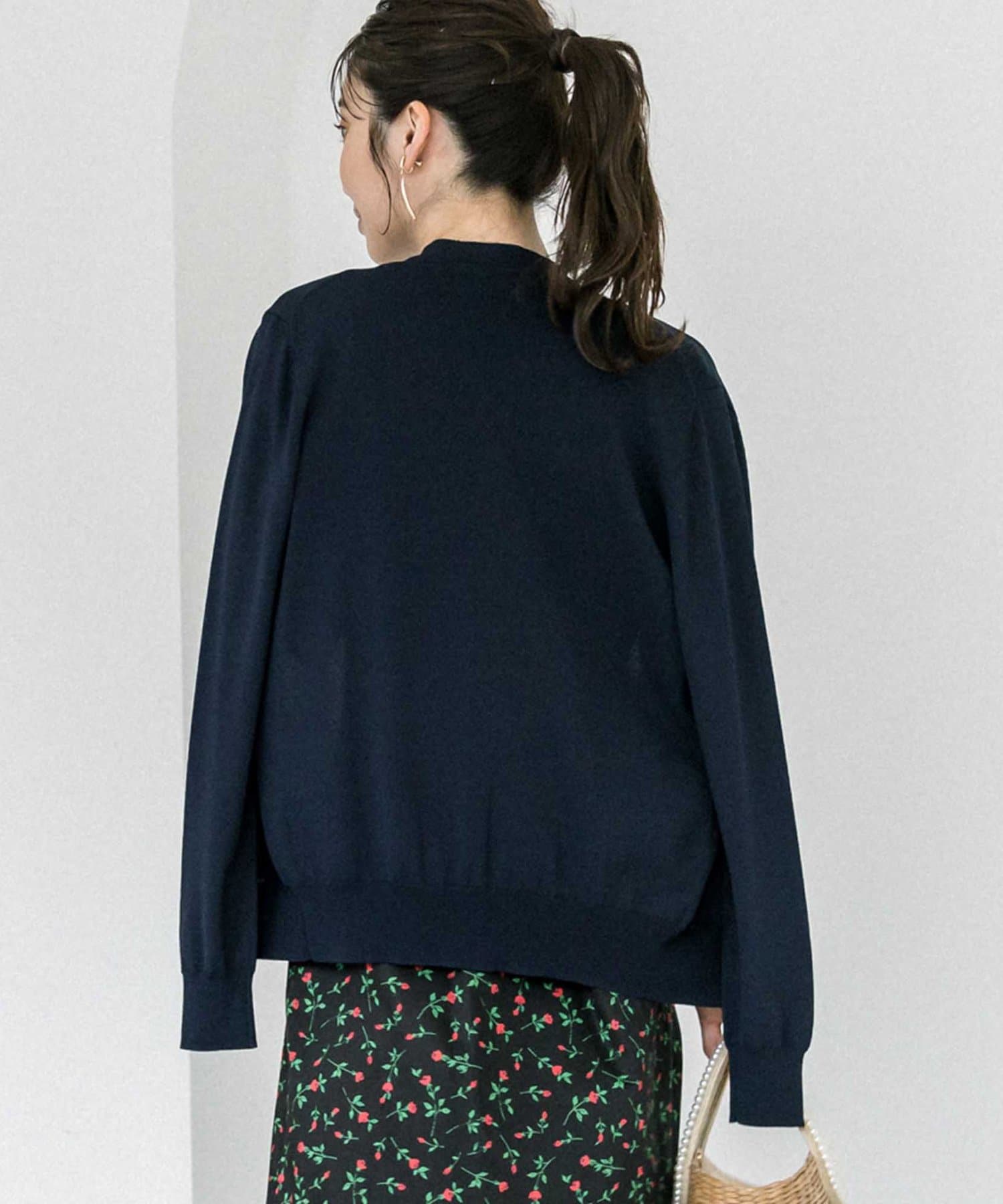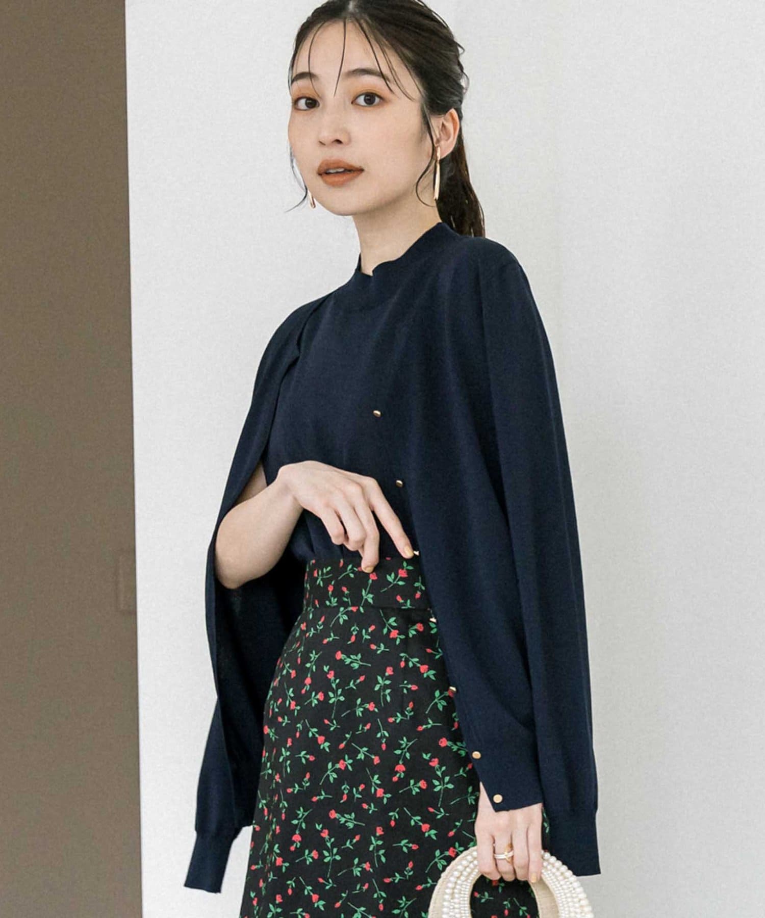 鎖骨をきれいに見せてくれるスキッパーネックのフェミニンなカーディガン。