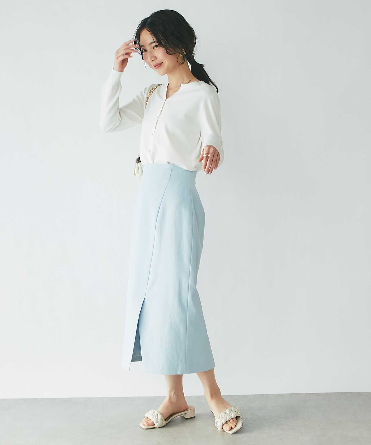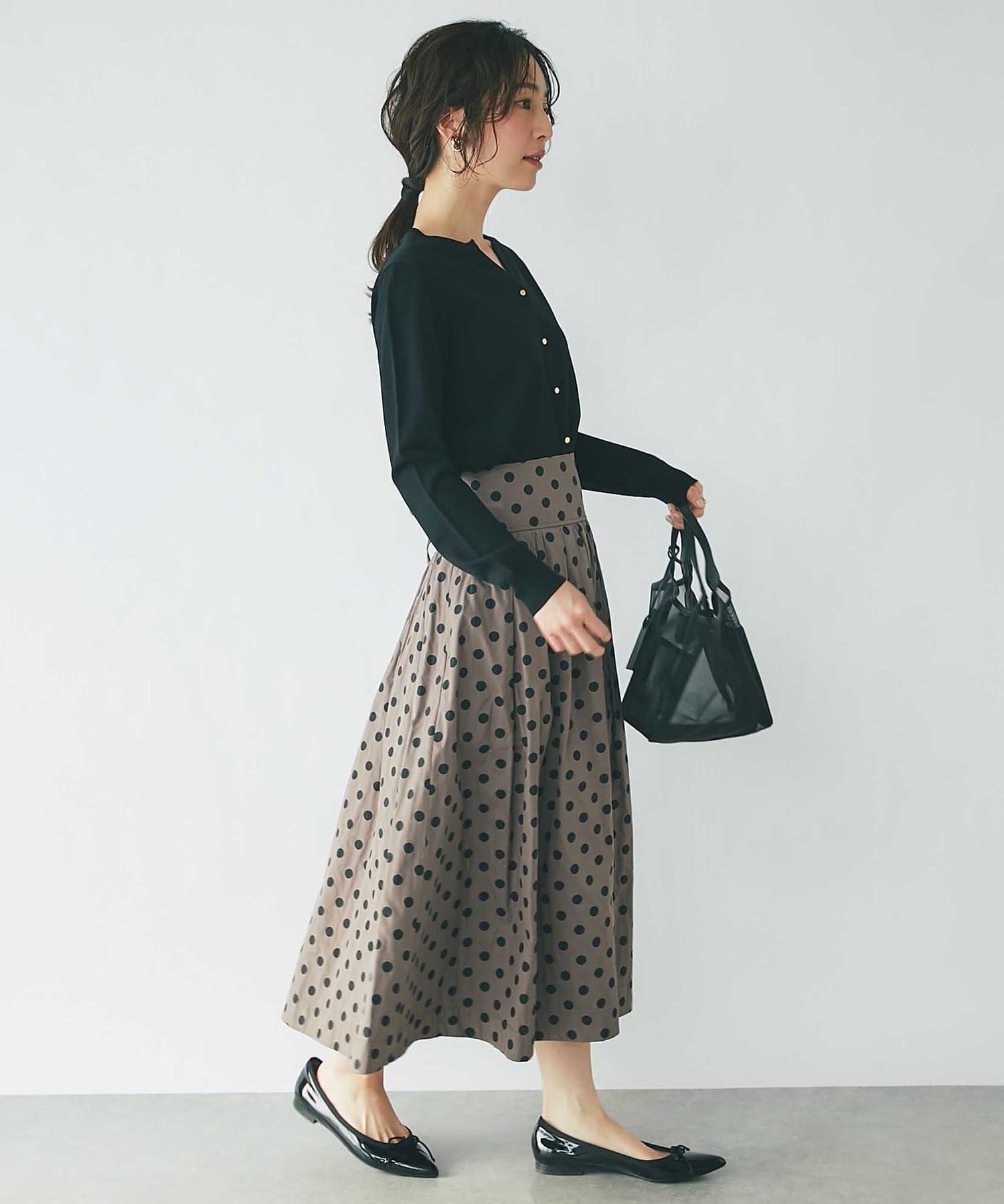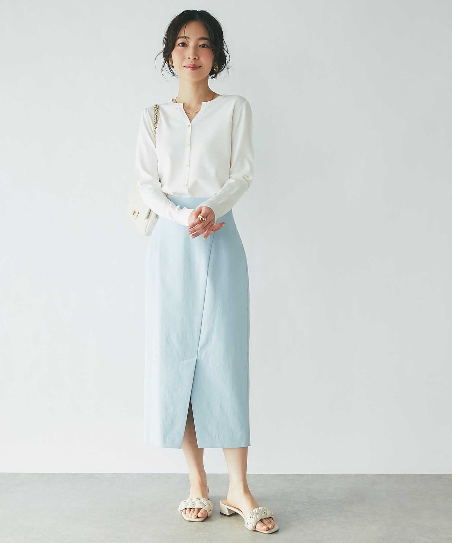 柄スカートなど華やかなボトムの合わせに使いやすいアイテムです。