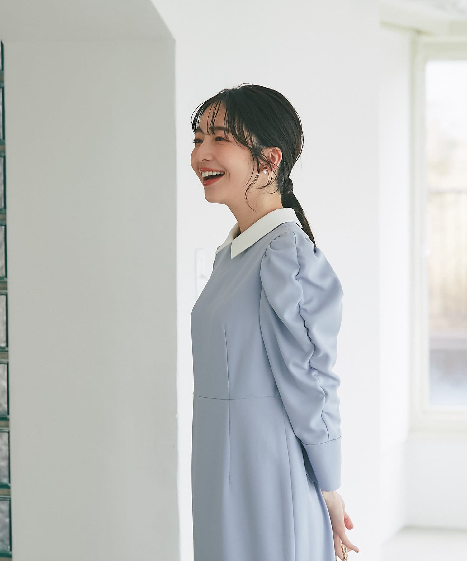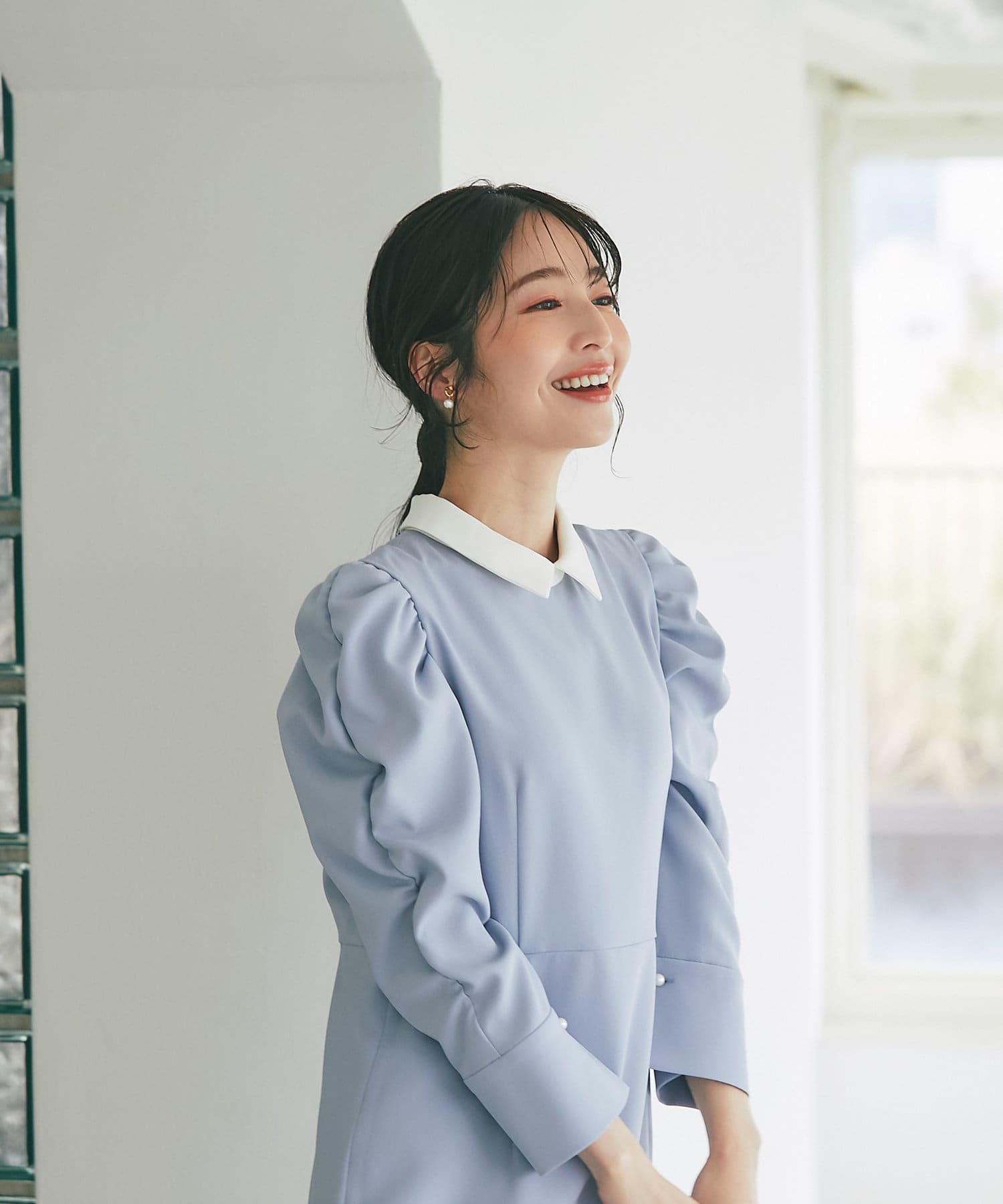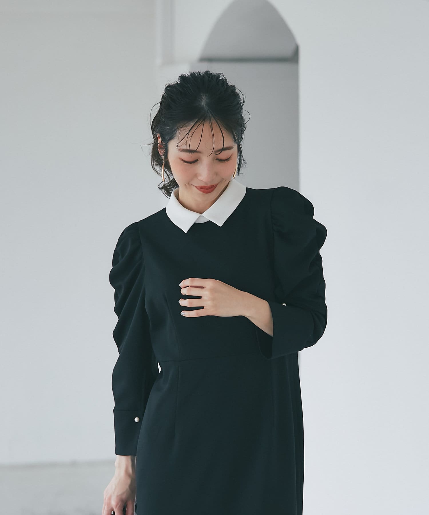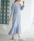 ボリュームスリーブが大人かわいい上品ワンピース