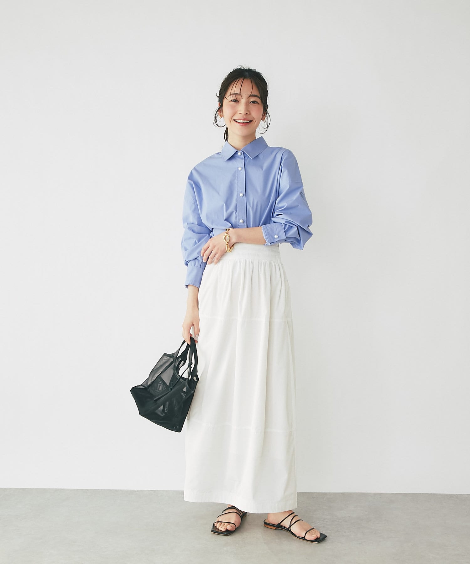 ハリのある軽い生地で身体のラインを拾わず、ふんわりとした仕上がりです。