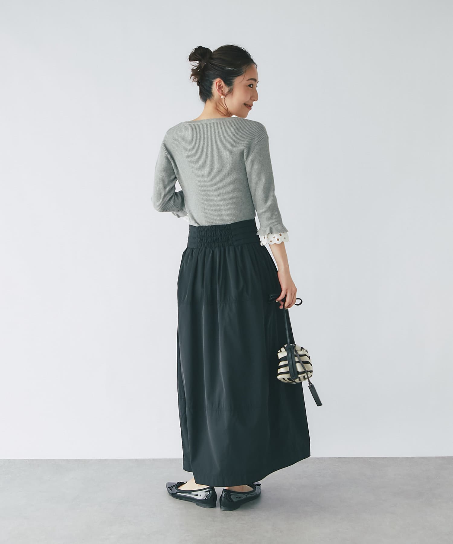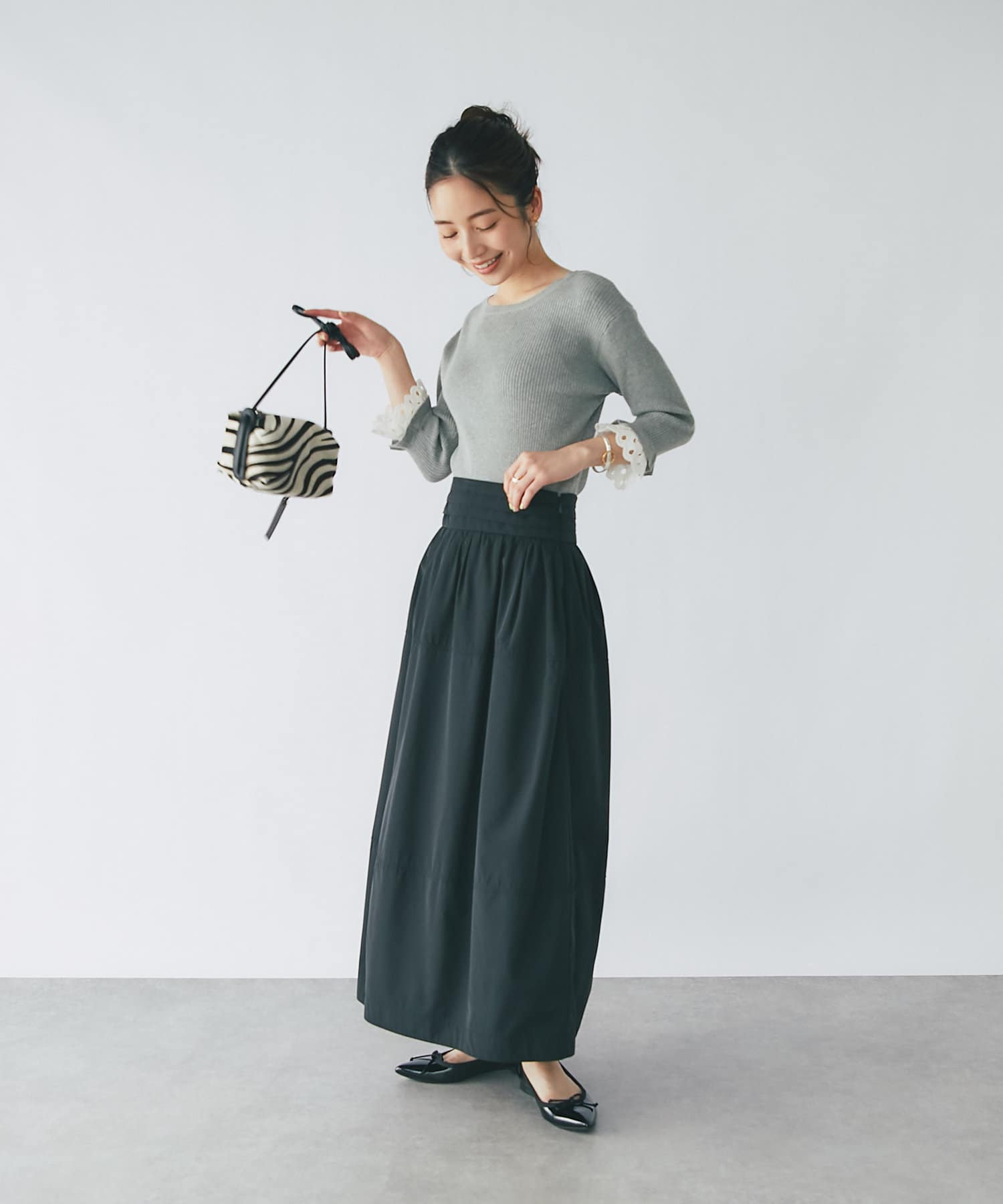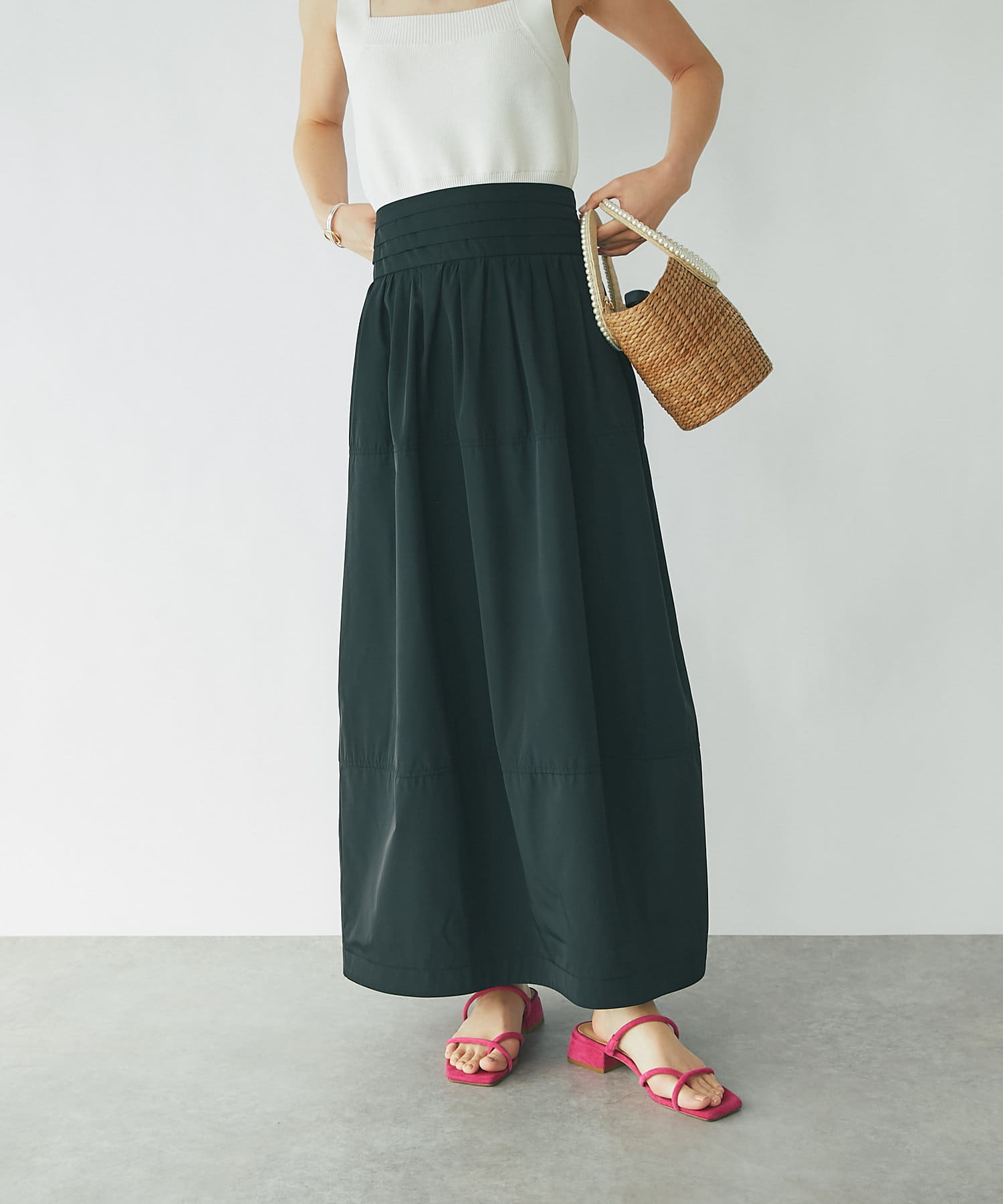 【シルエットを楽しめる】タフタコクーンマキシスカート