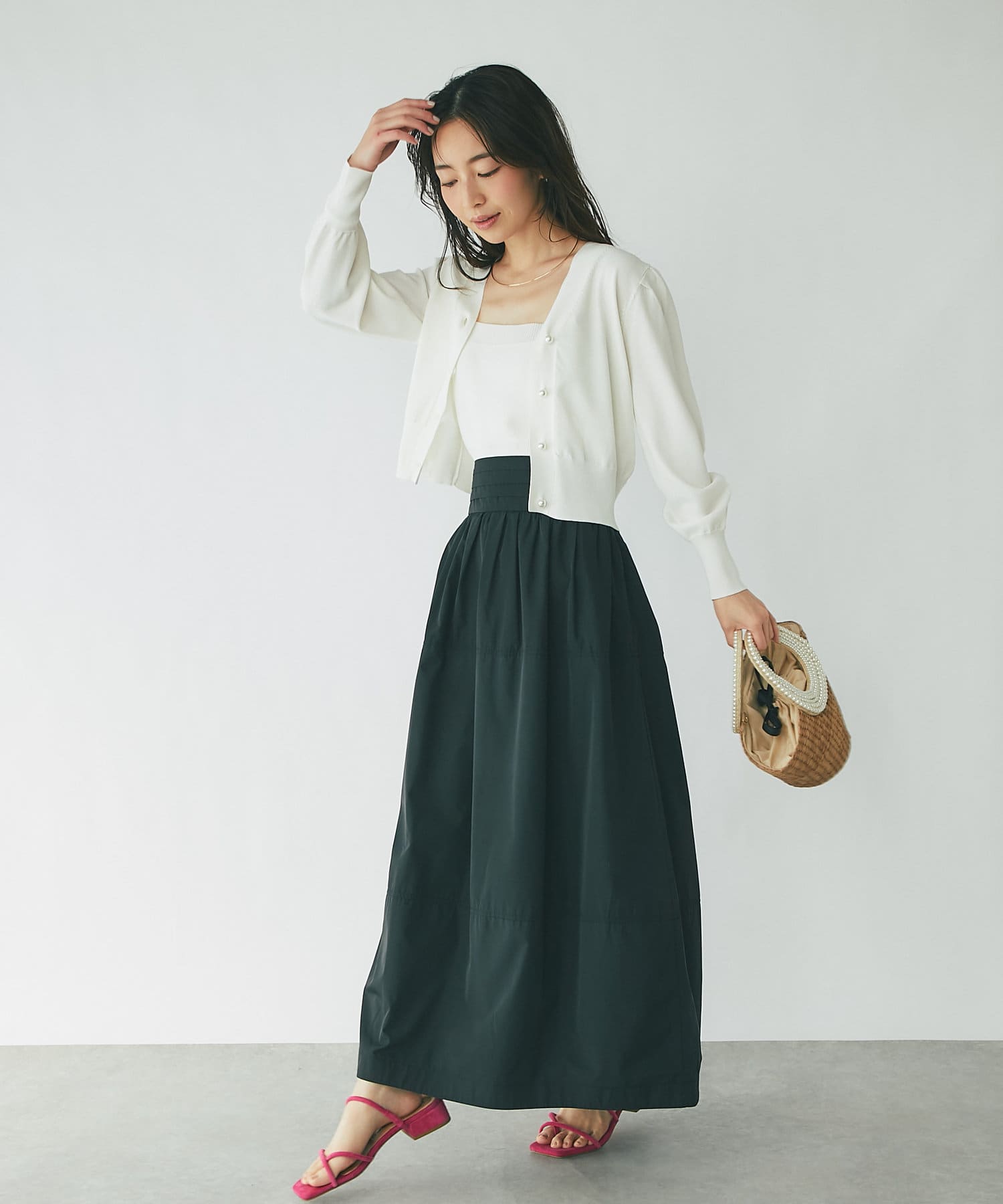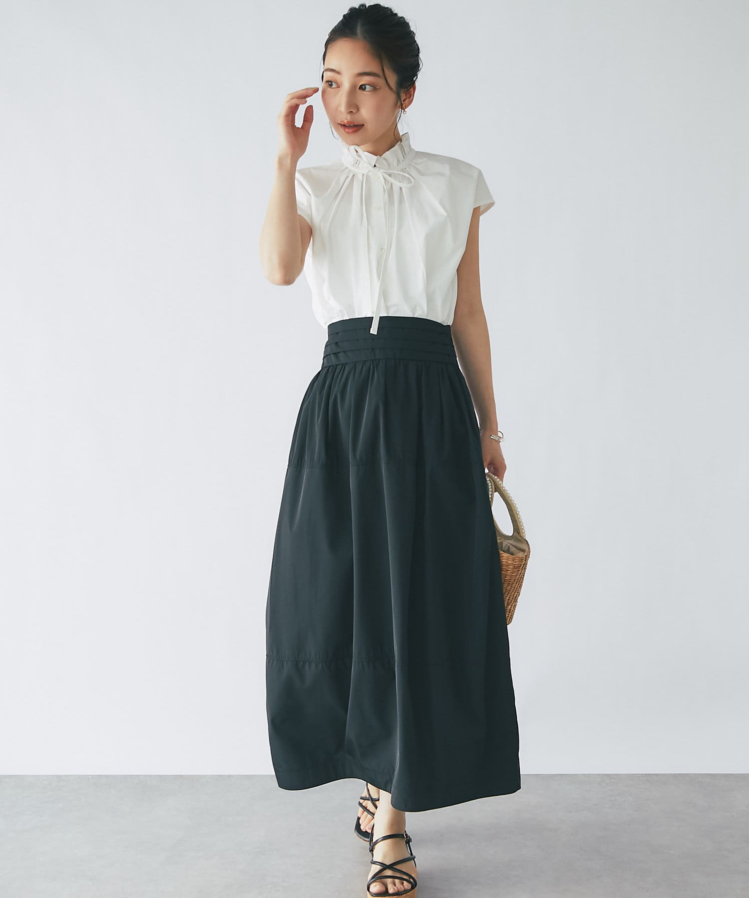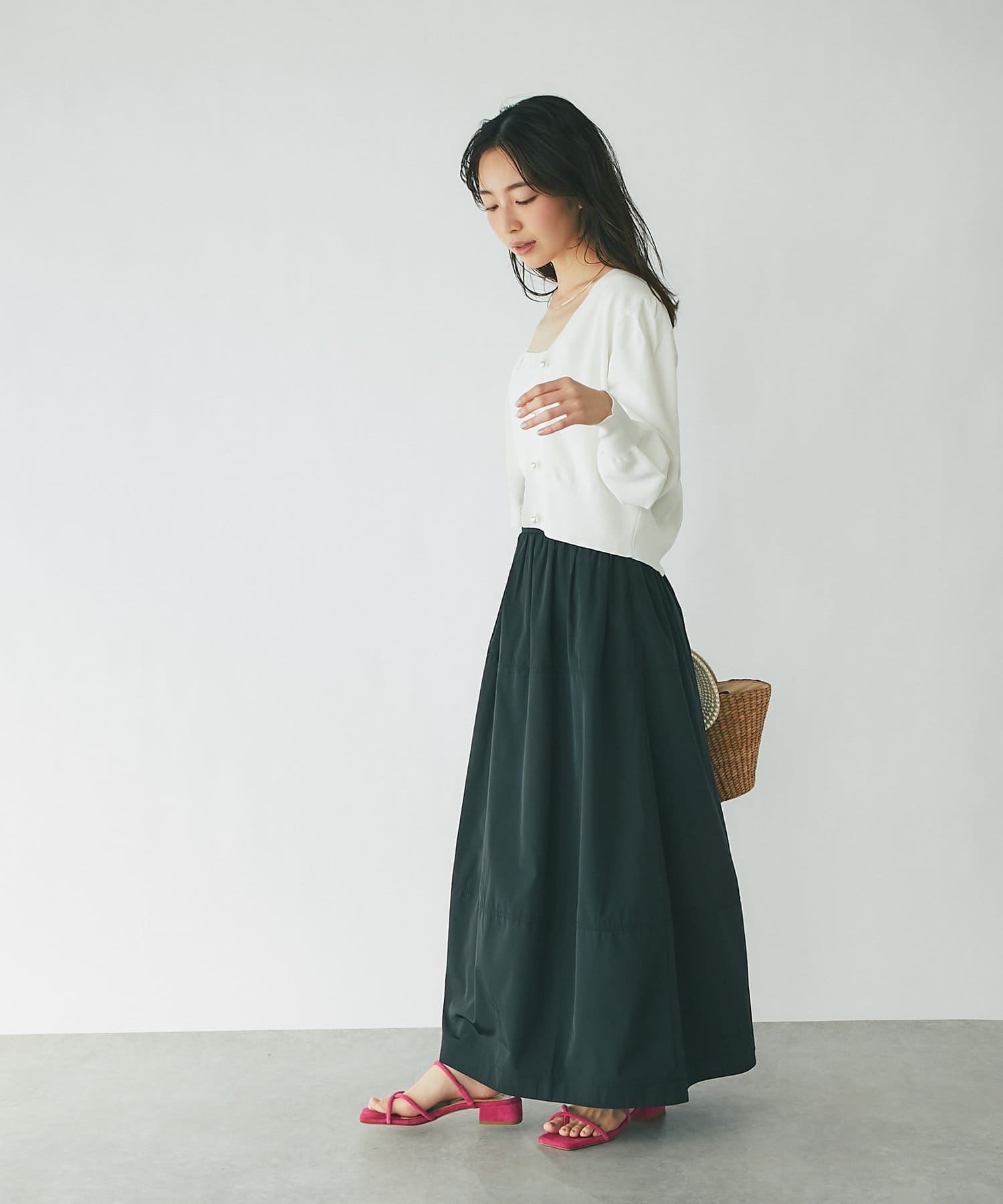 【シルエットを楽しめる】タフタコクーンマキシスカート