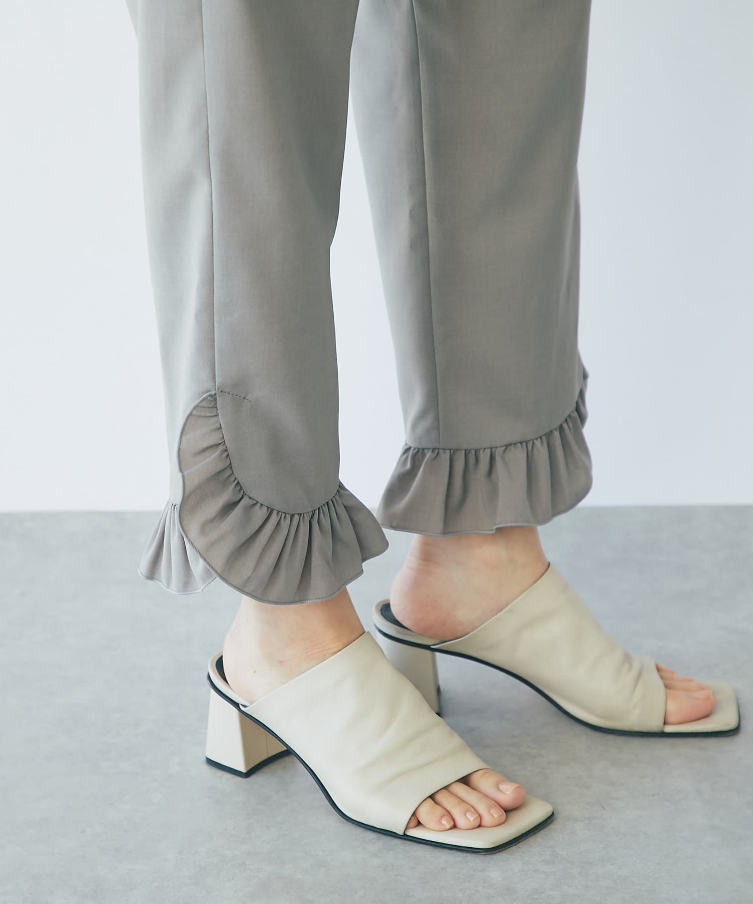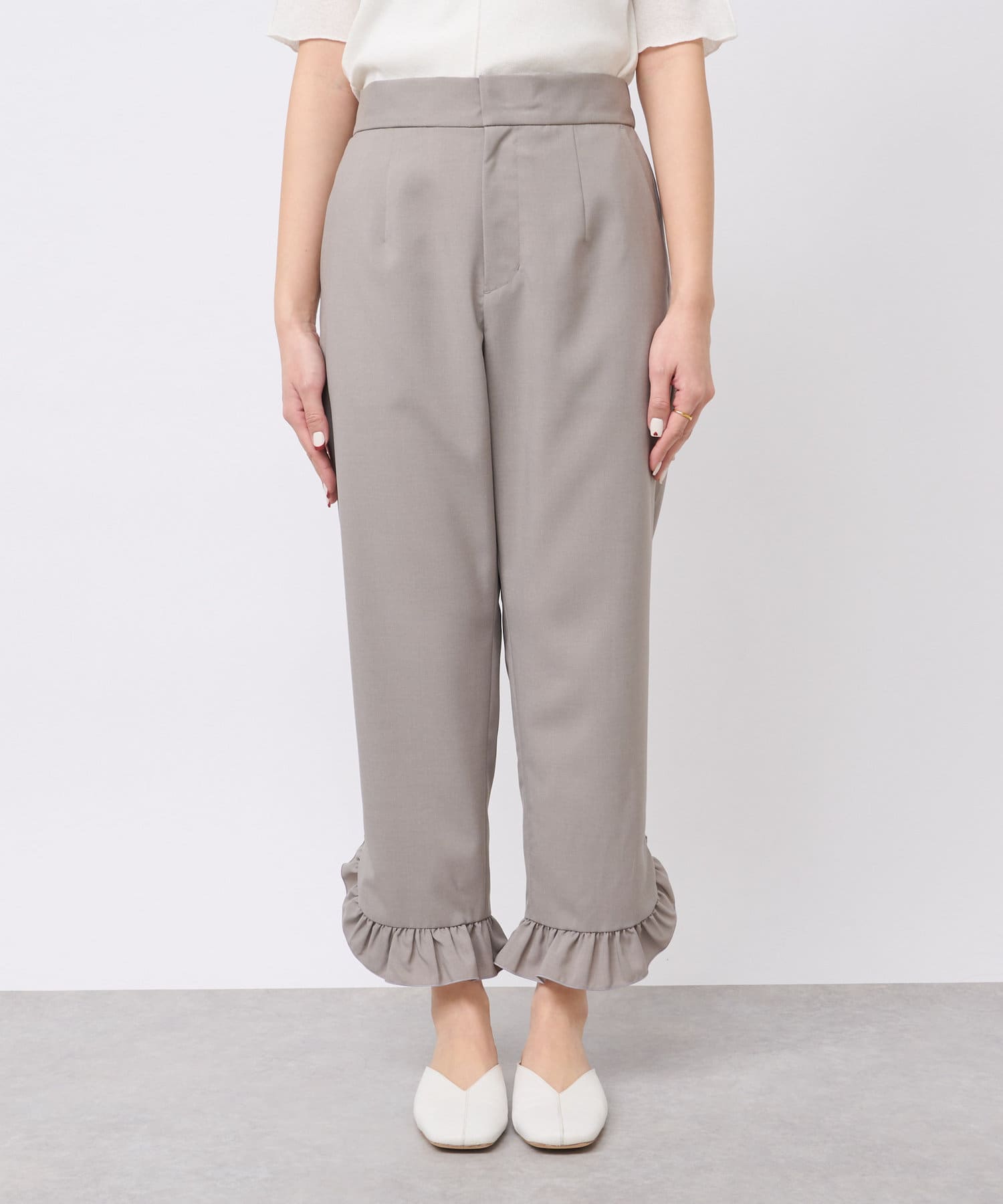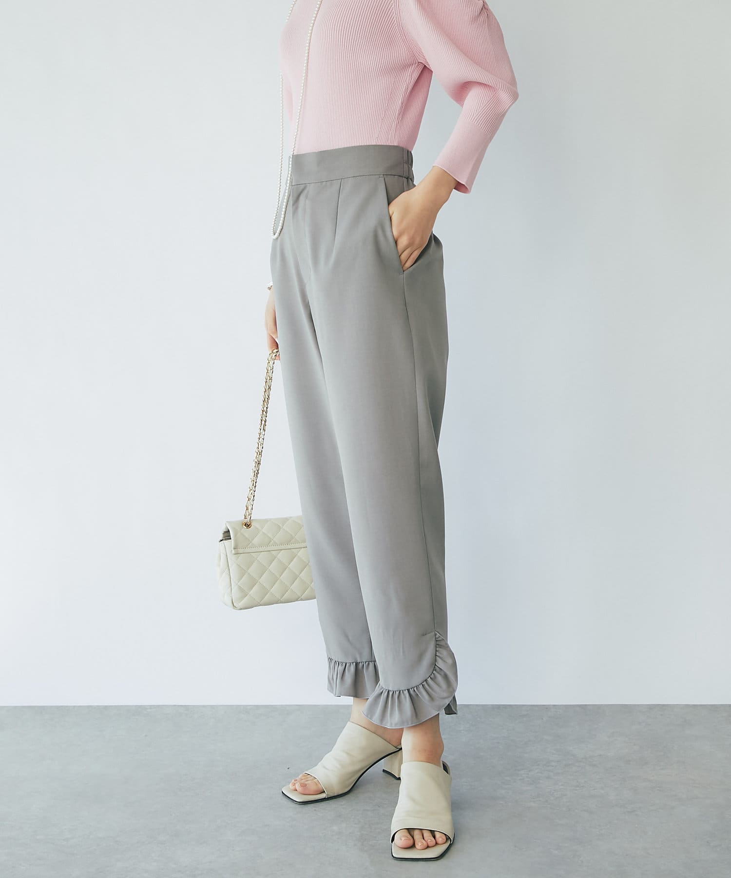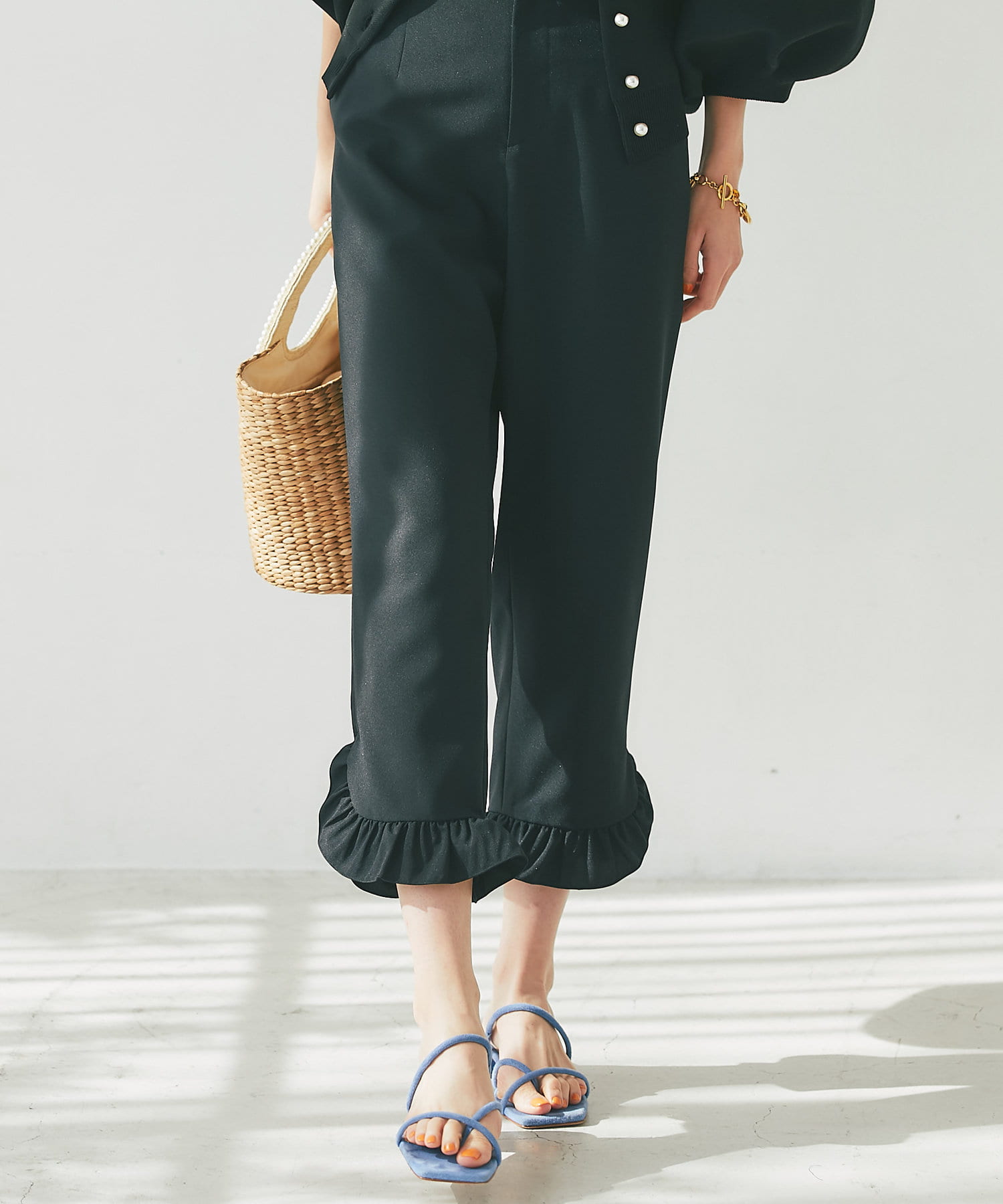 裾のフリルが可愛いフェミニンなクロップドパンツ。