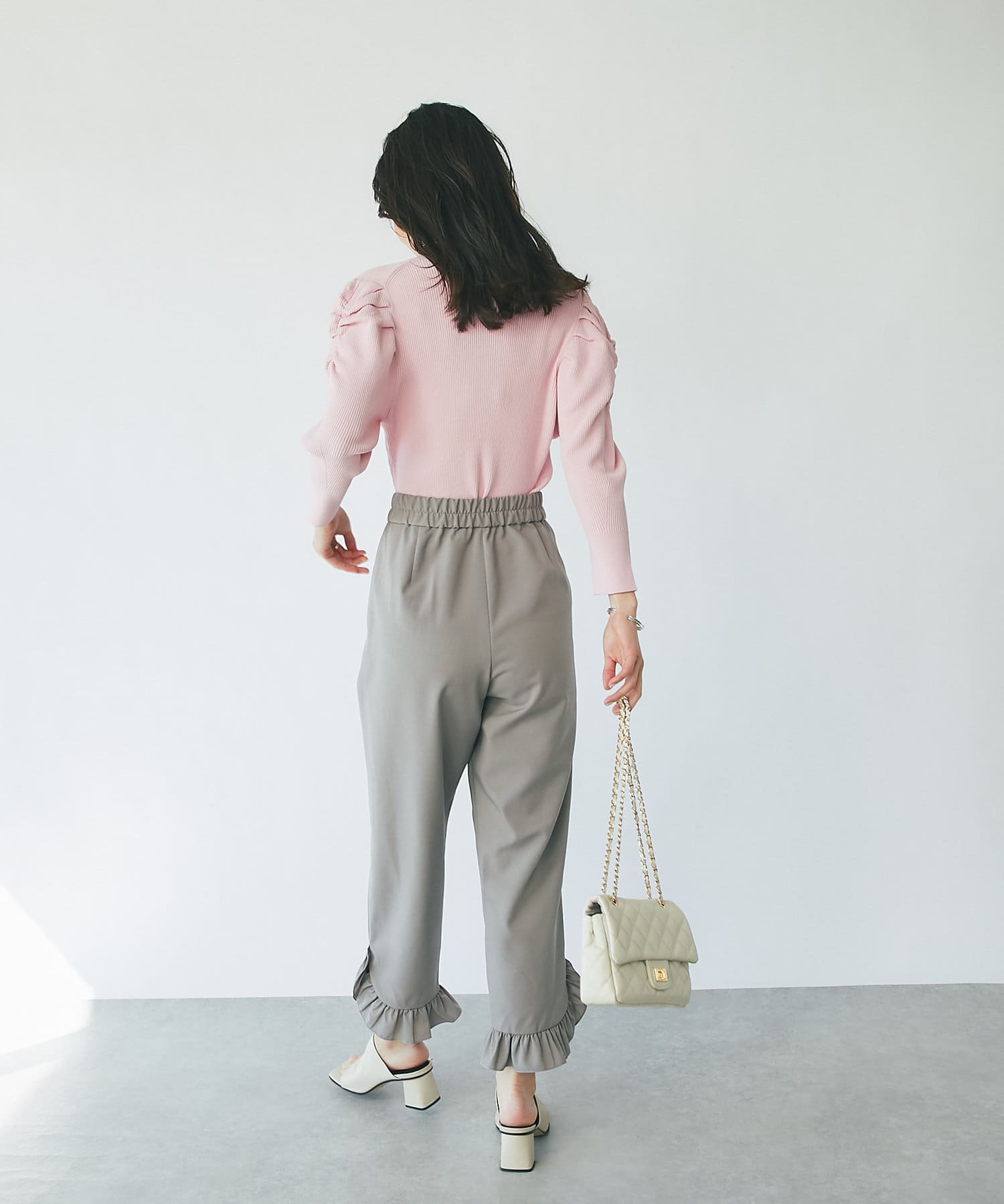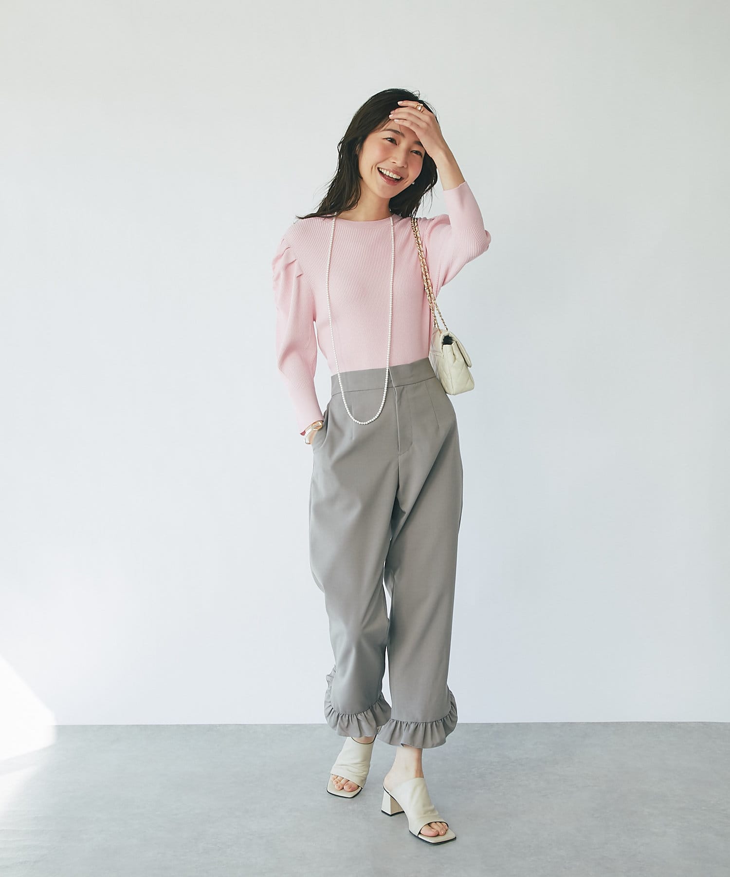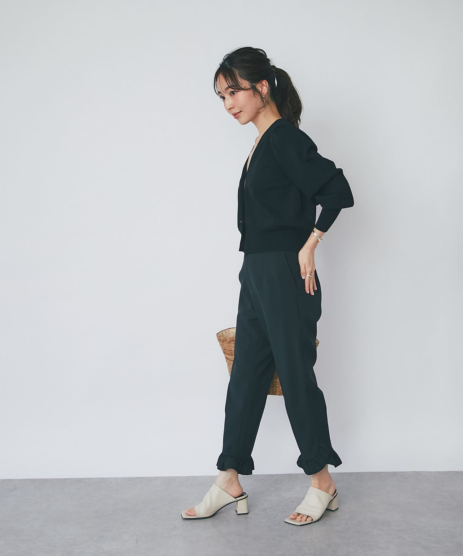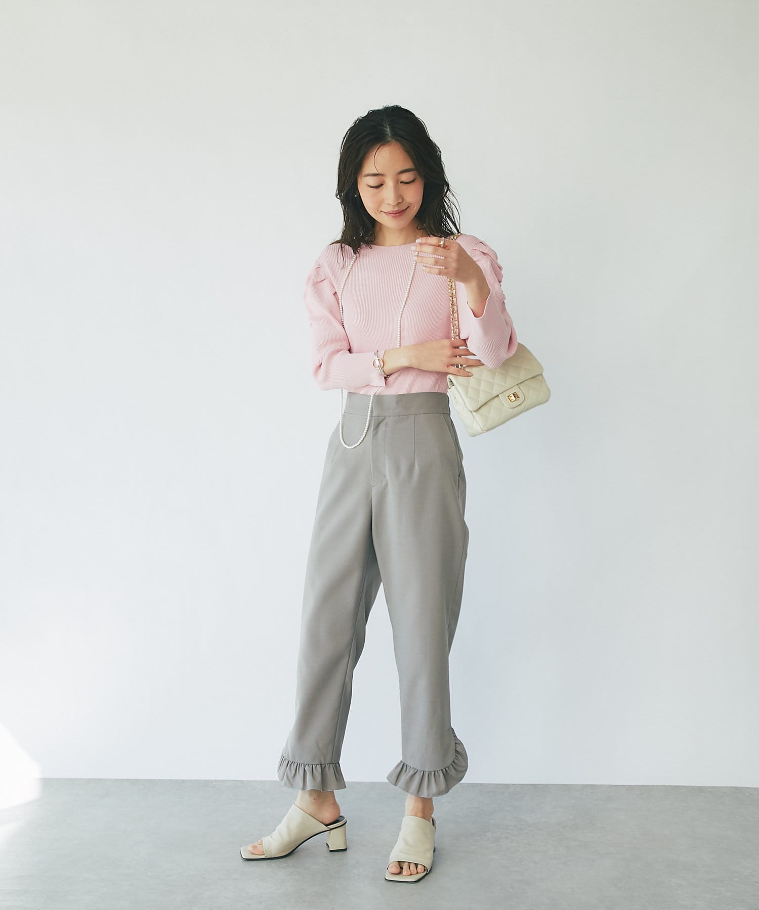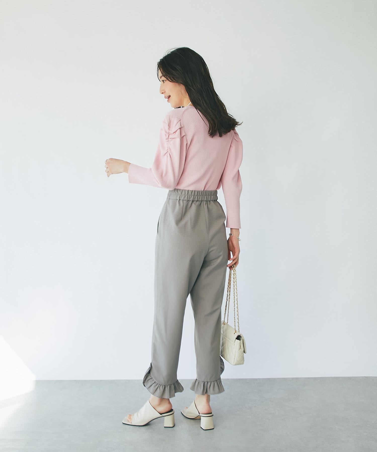 裾のフリルが可愛いフェミニンなクロップドパンツ。