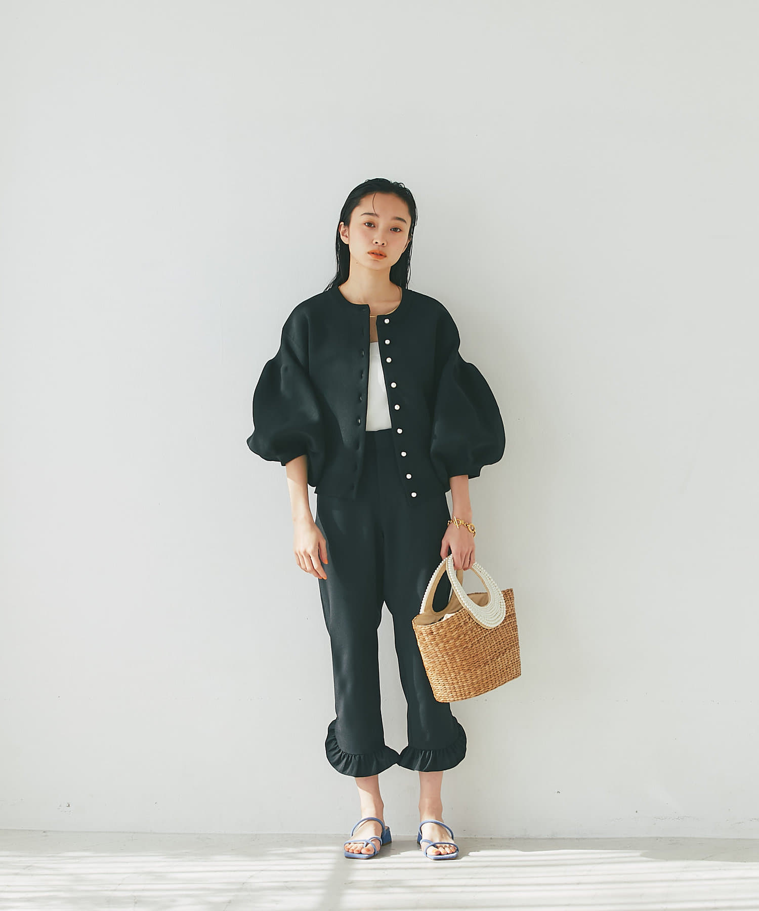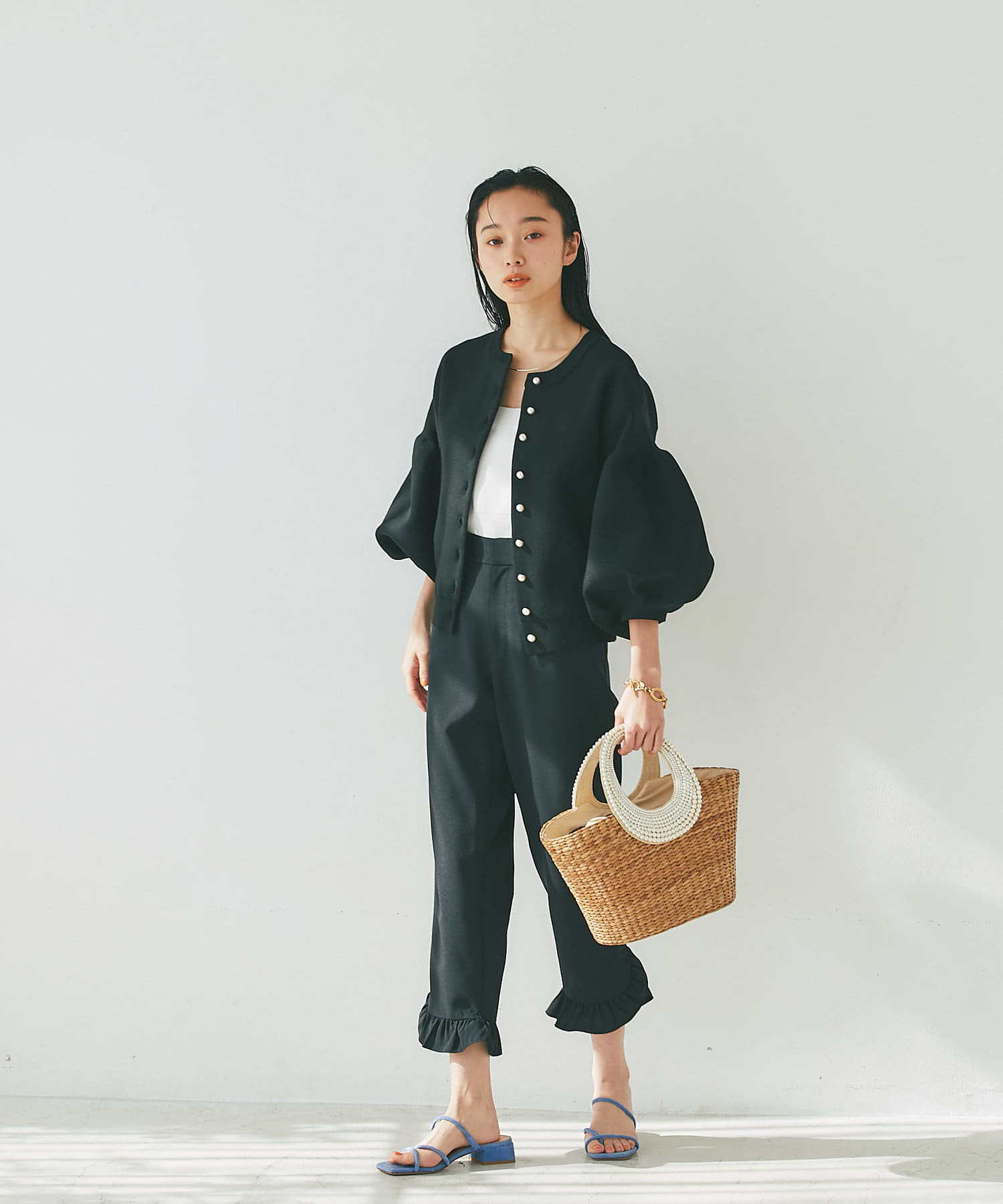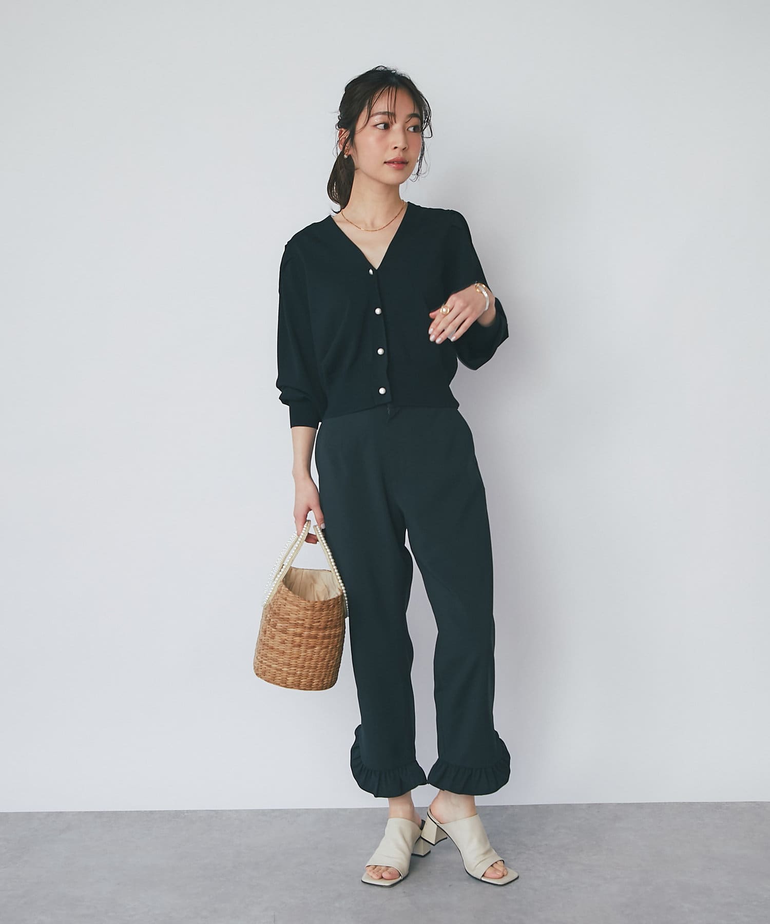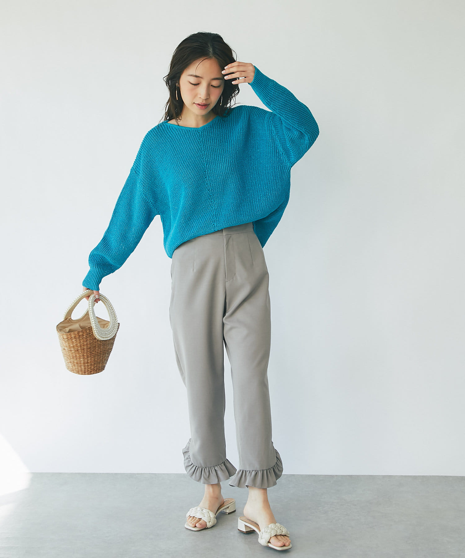 裾のフリルが可愛いフェミニンなクロップドパンツ。