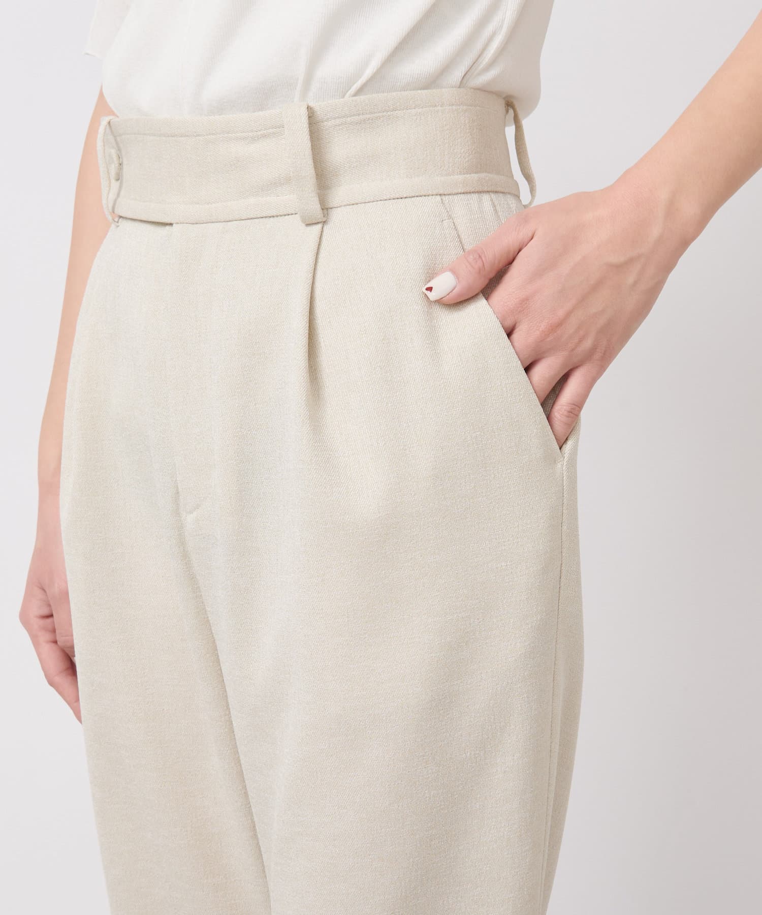 リネンのようなドライな質感で、気持ちよく着用できる美シルエットパンツ