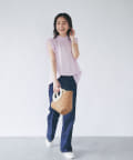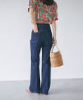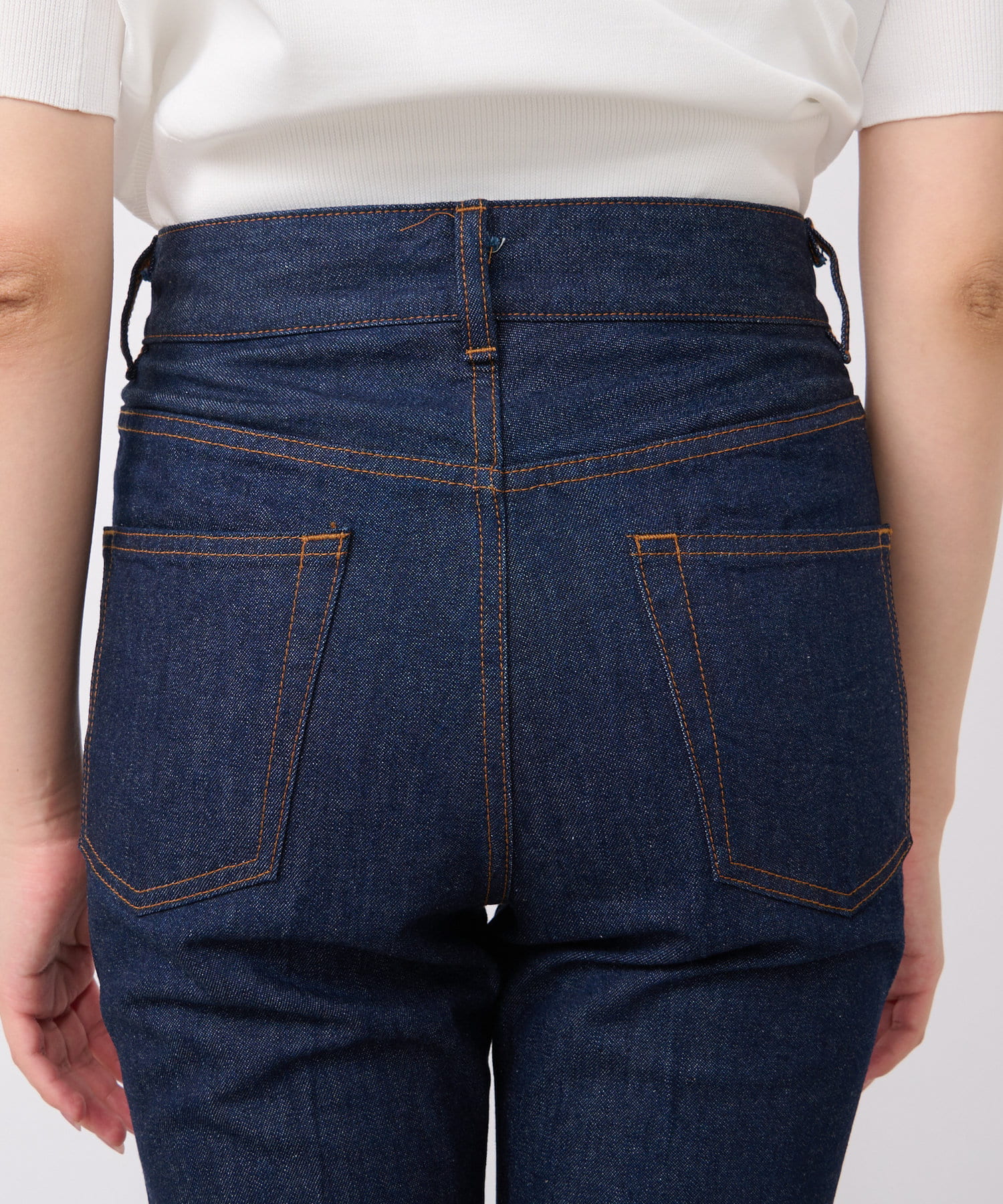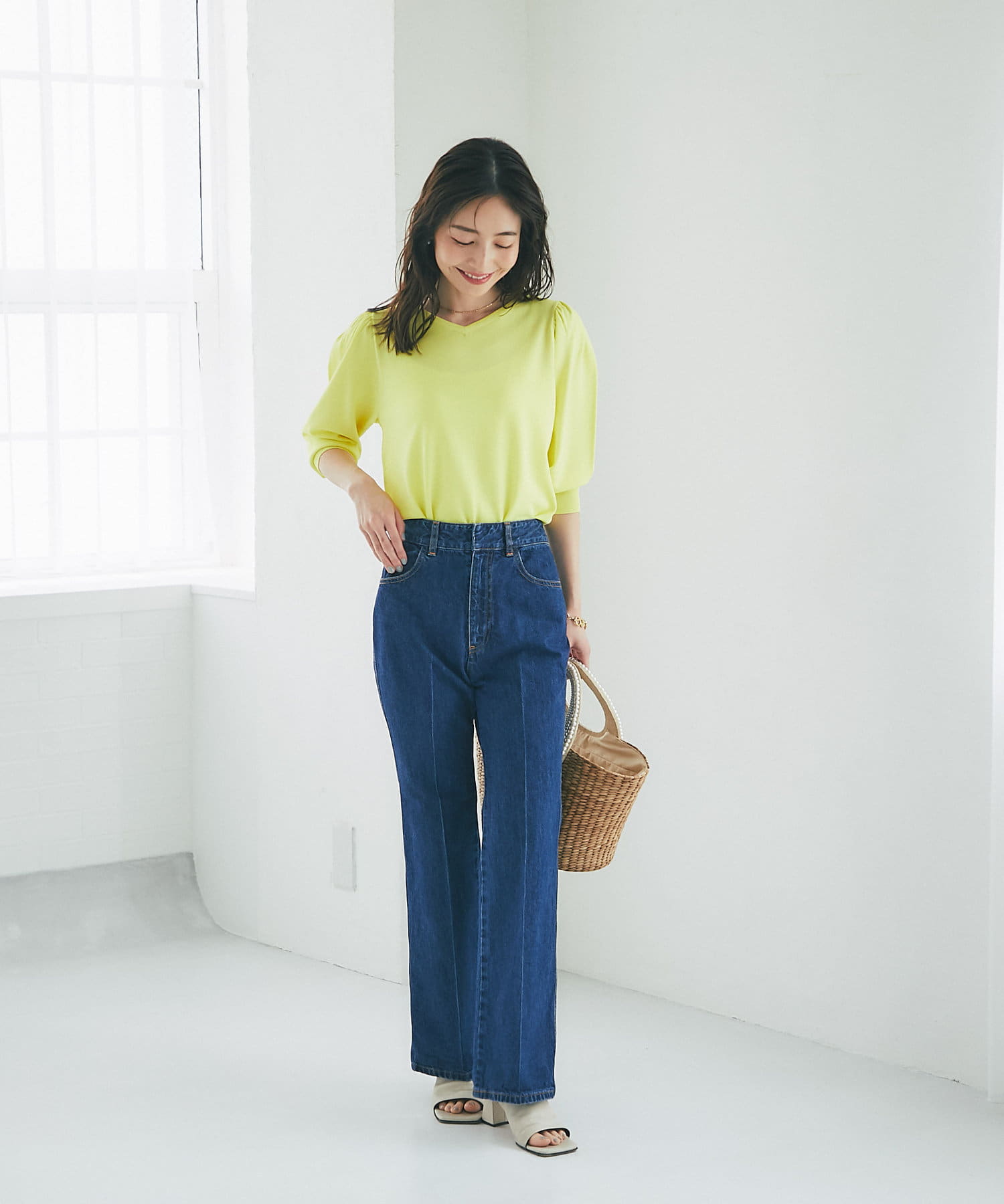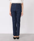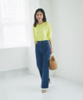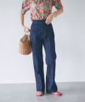 デニム素材でカジュアルながら、センタープレスにすることで上品さがプラスされたデニムパンツ。