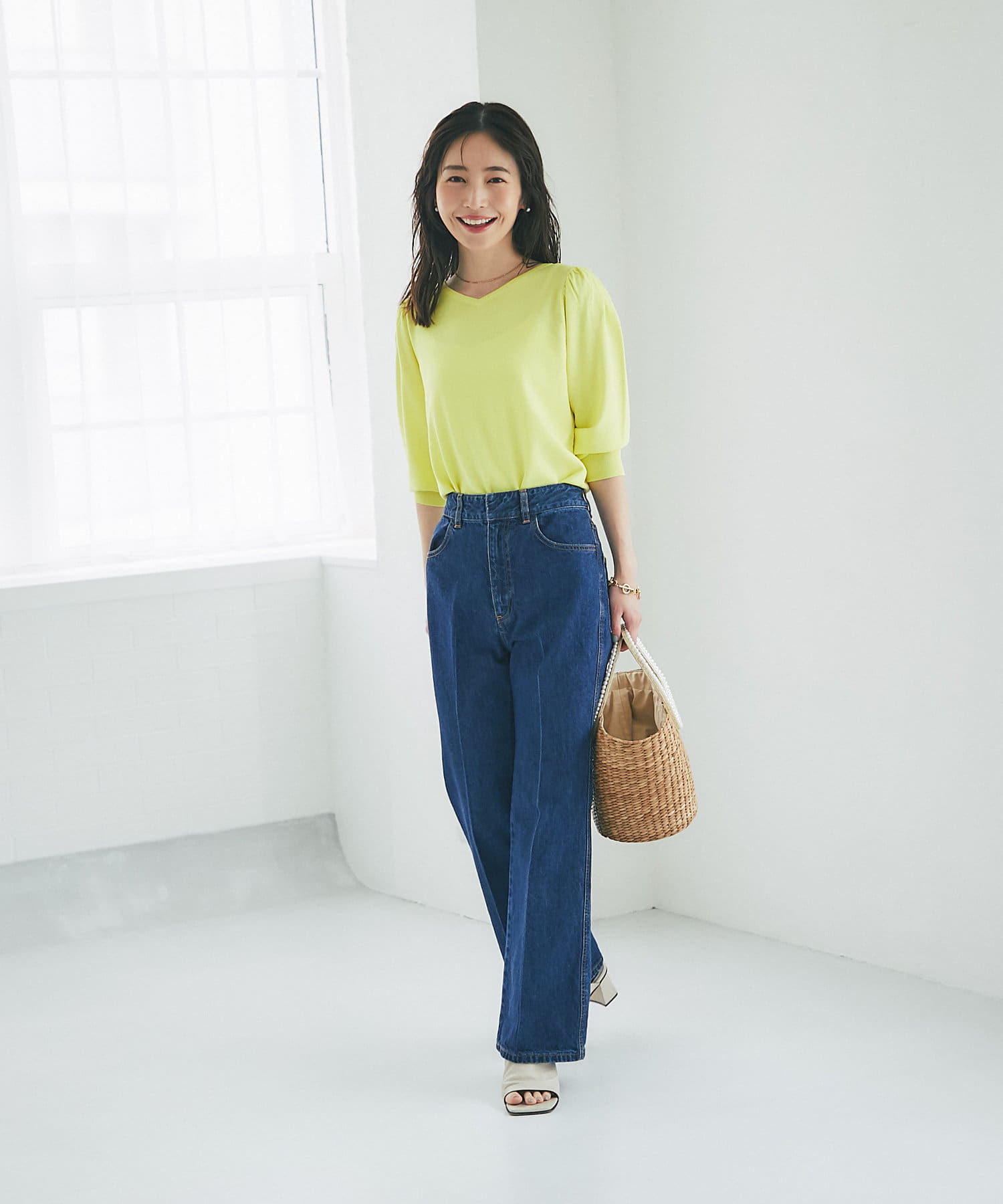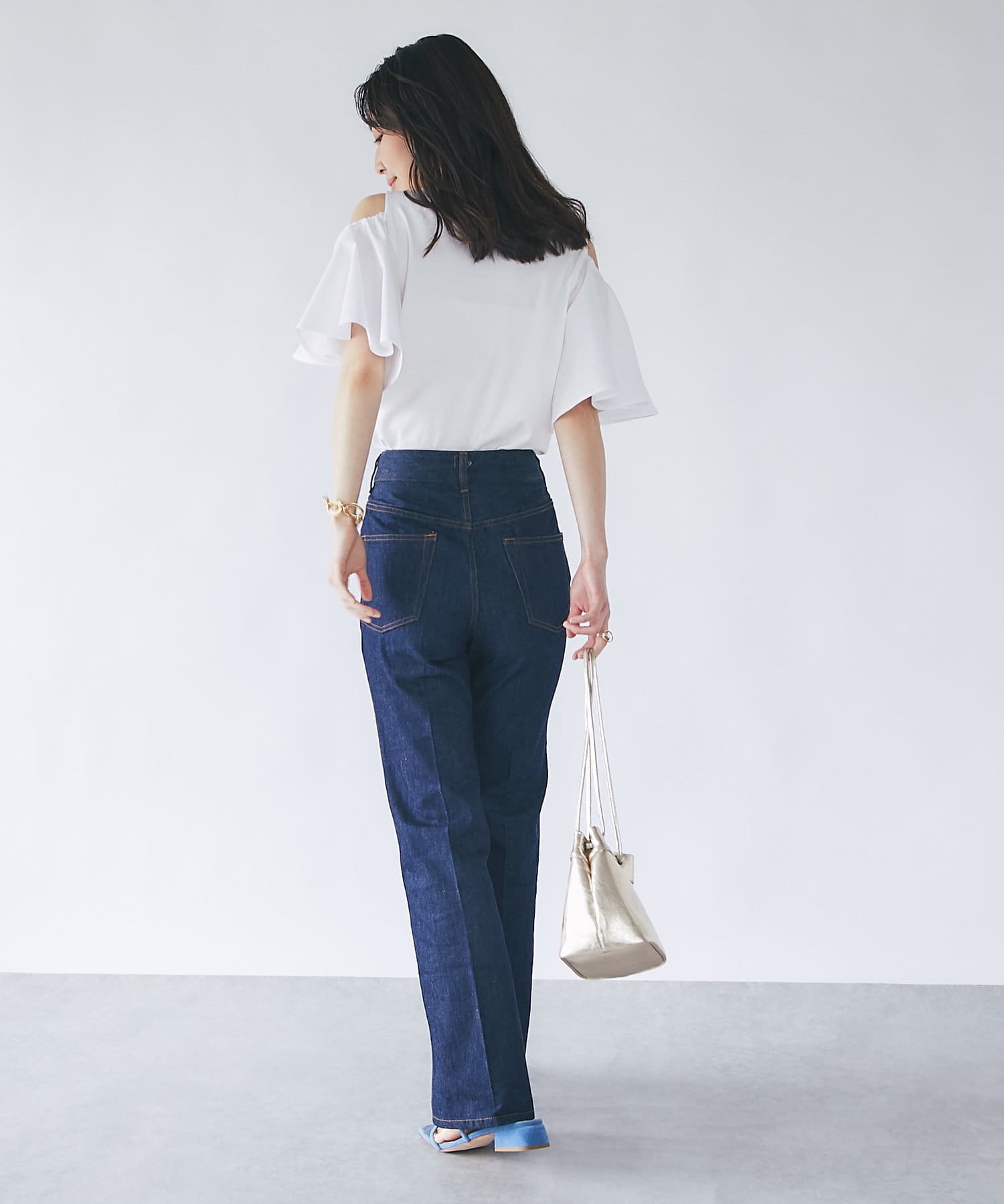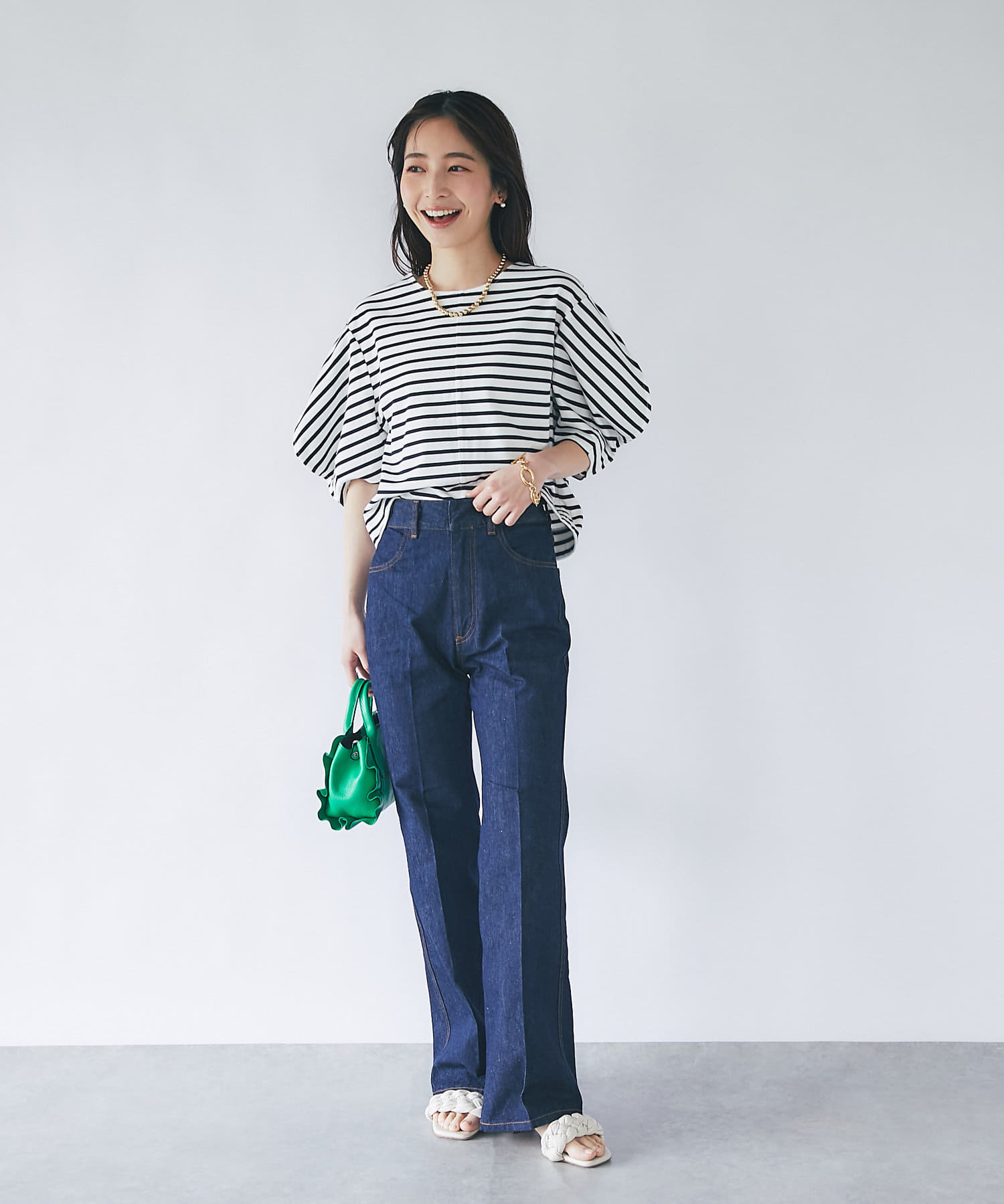 #大人カジュアル #きれいめカジュアル #きれいめコーデ #上品カジュアル #デニム #デニムパンツ #センタープレス #センタープレスパンツ #Iライン #美脚 #美シルエット