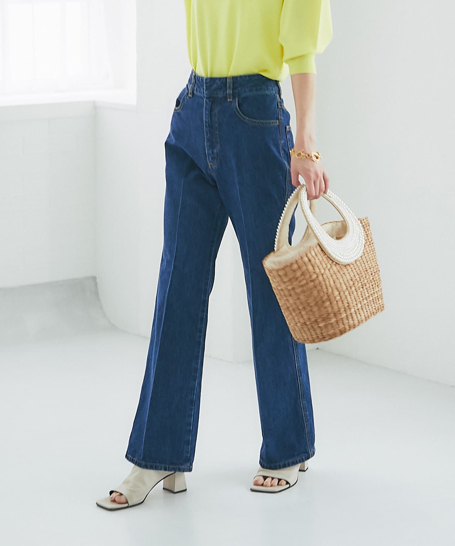 【CURRENTAGE(カレンテージ)】センタープレス細身フレアデニム