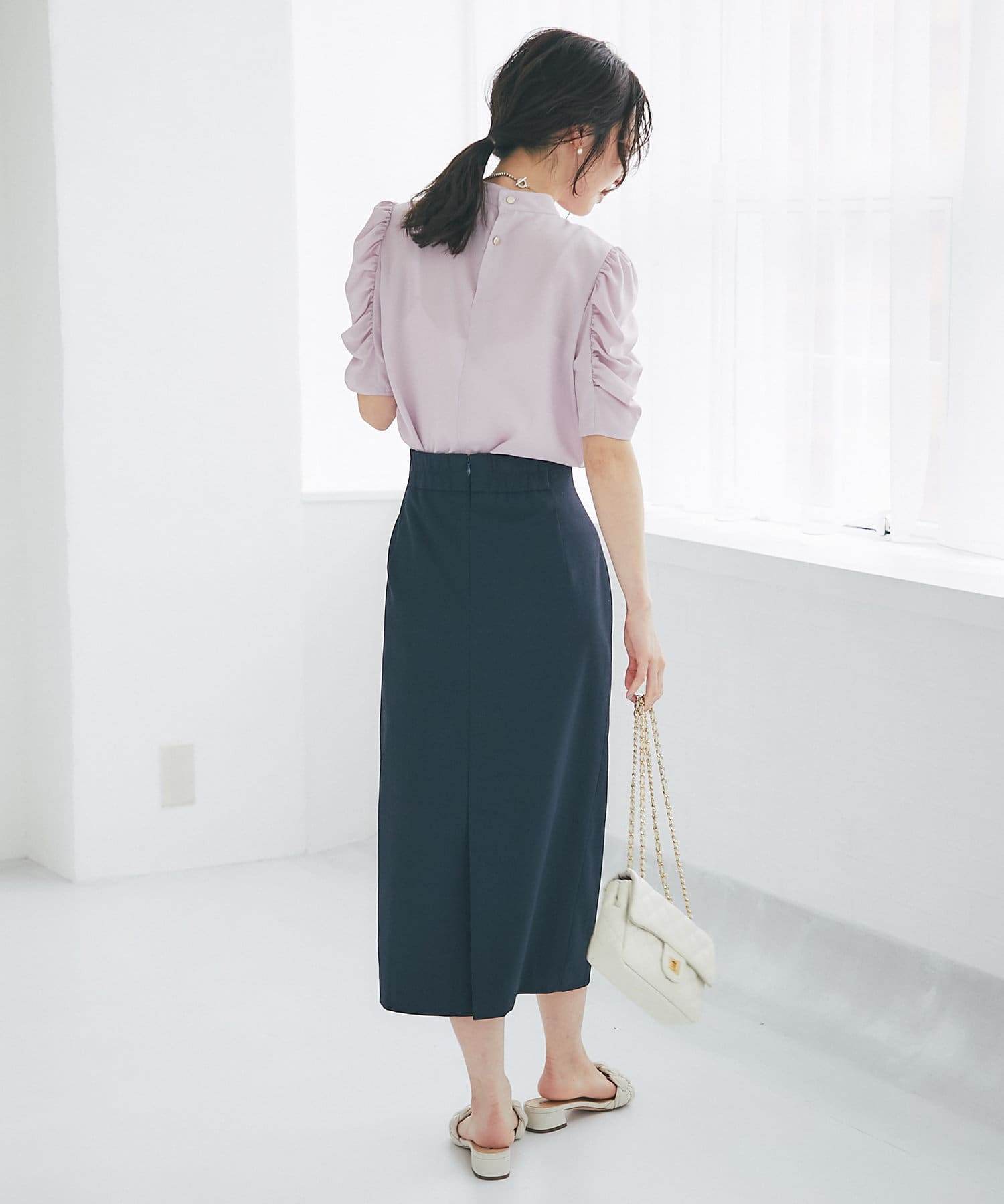 ギャザーを寄せ、ふくらみを持たせた立体感のあるスリーブが華やかさを演出。