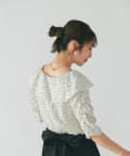 シンプルなボトムに合わせるだけで華やかに着こなせます。