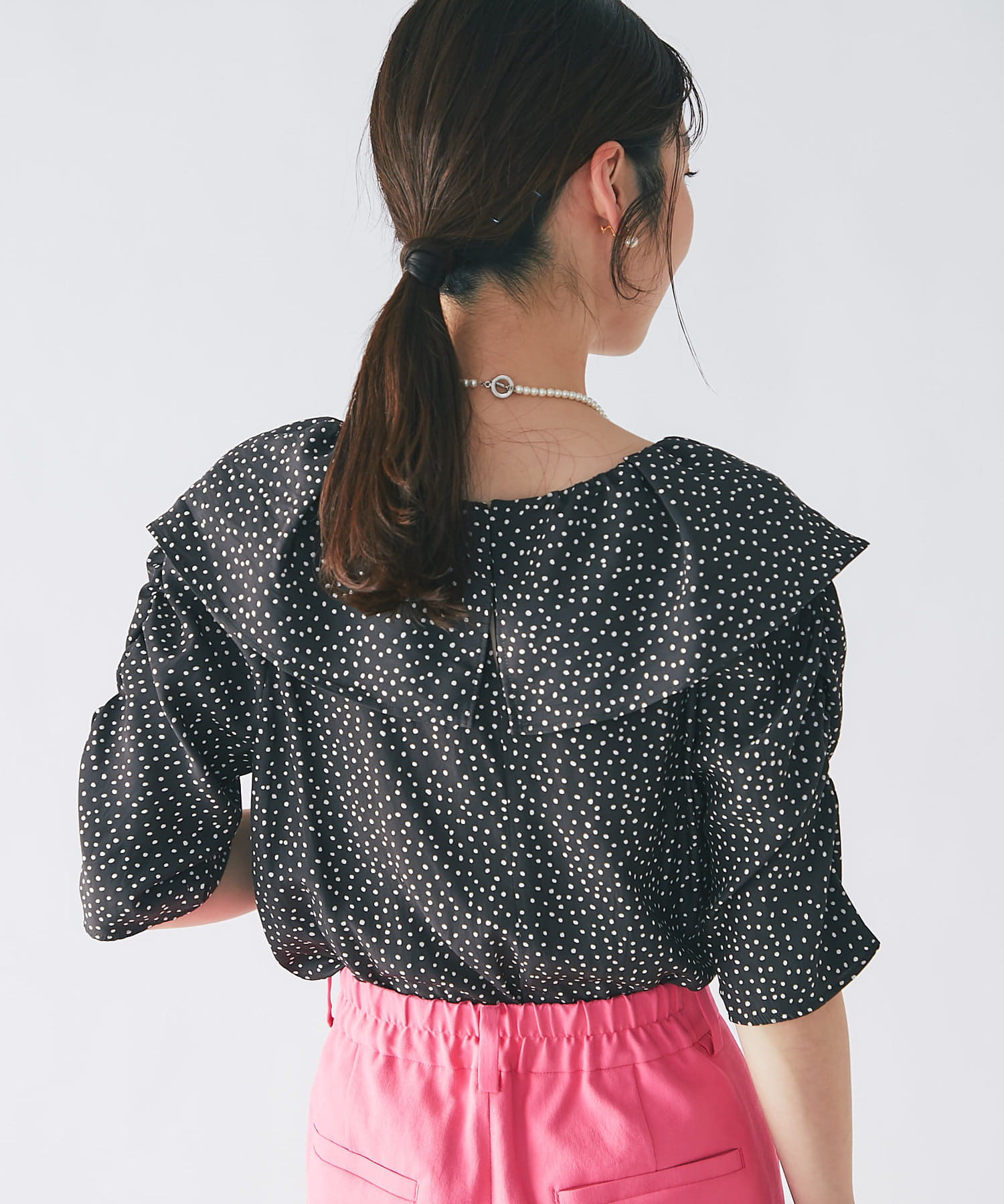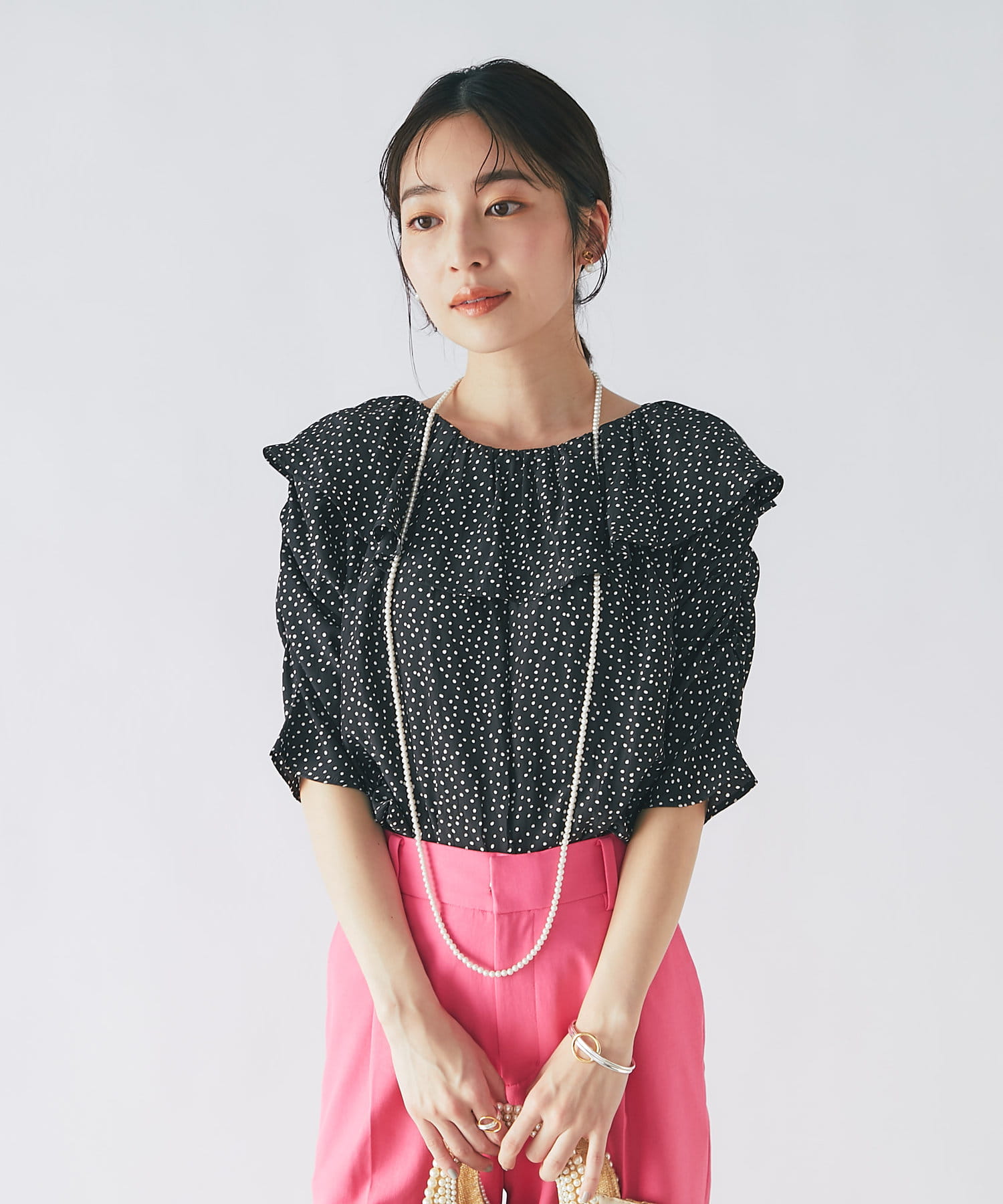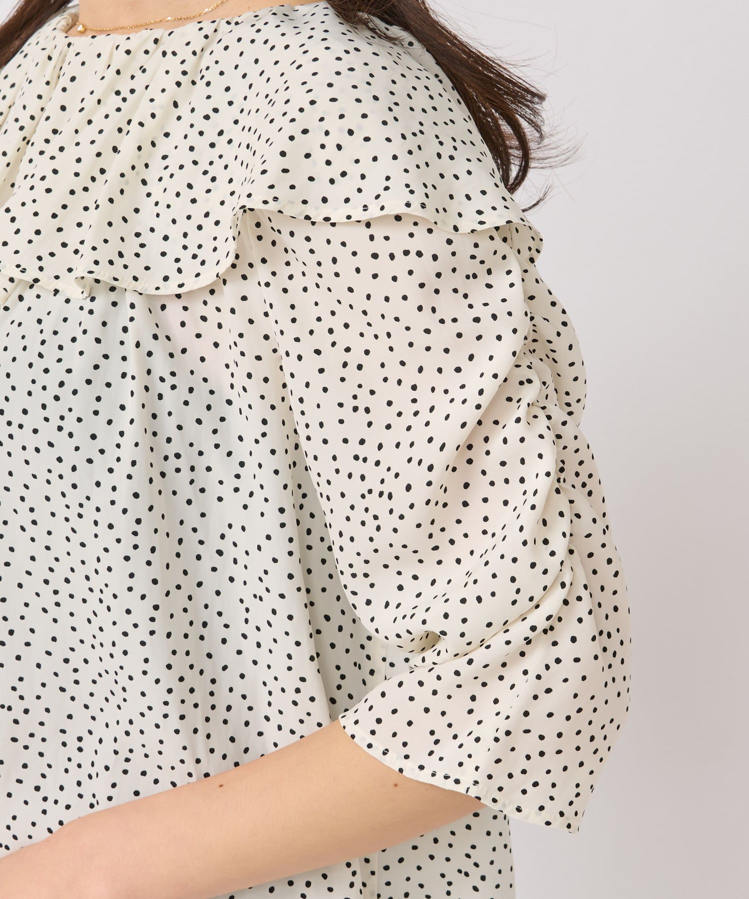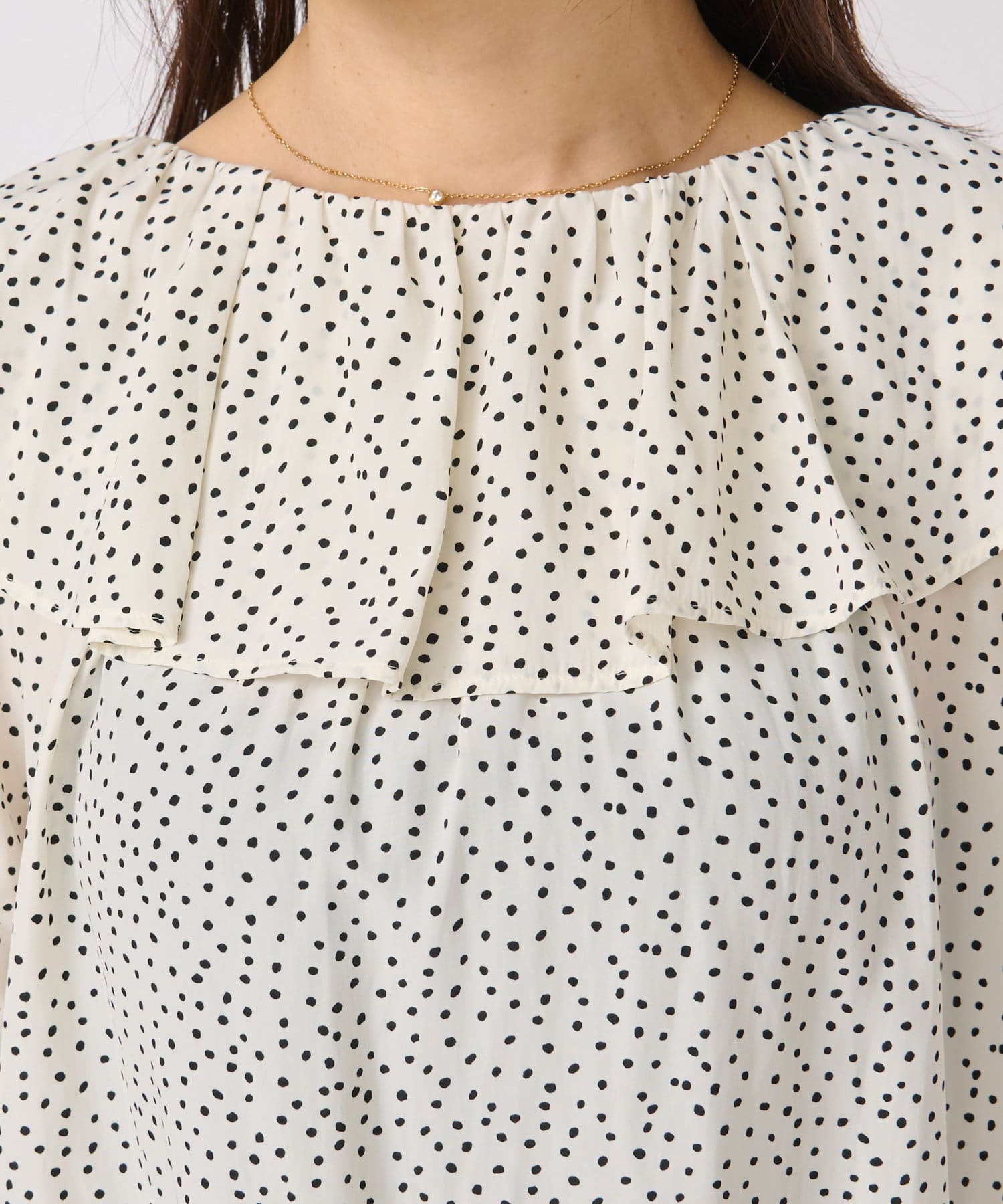 #大人カジュアル #きれいめカジュアル #上品カジュアル #ドット #総柄 #ドットプリント #ビッグカラー #ラッフルカラー #ラッフル #モテ服 #デート服 #モテ女子 #パワショル #ランダムドット