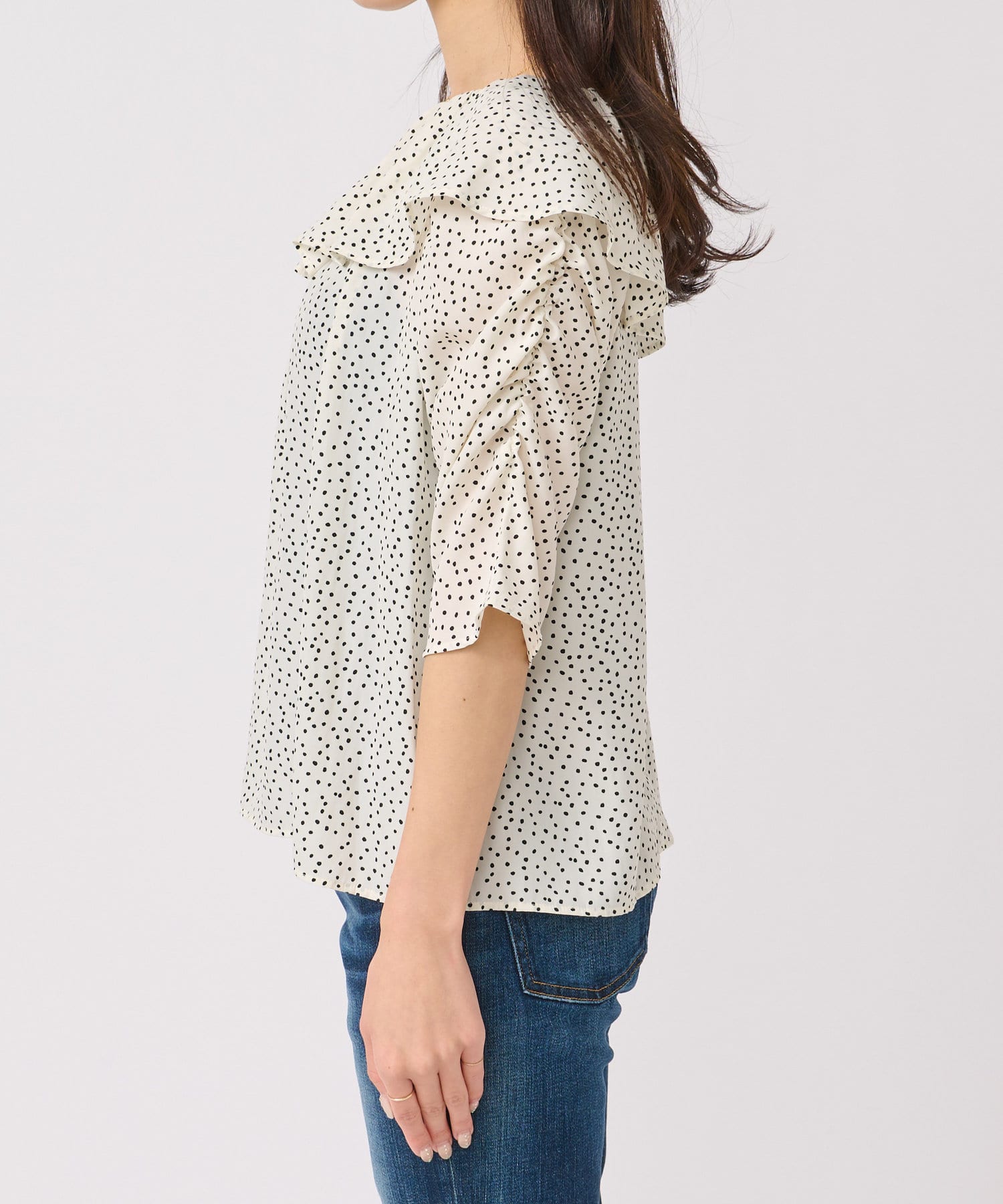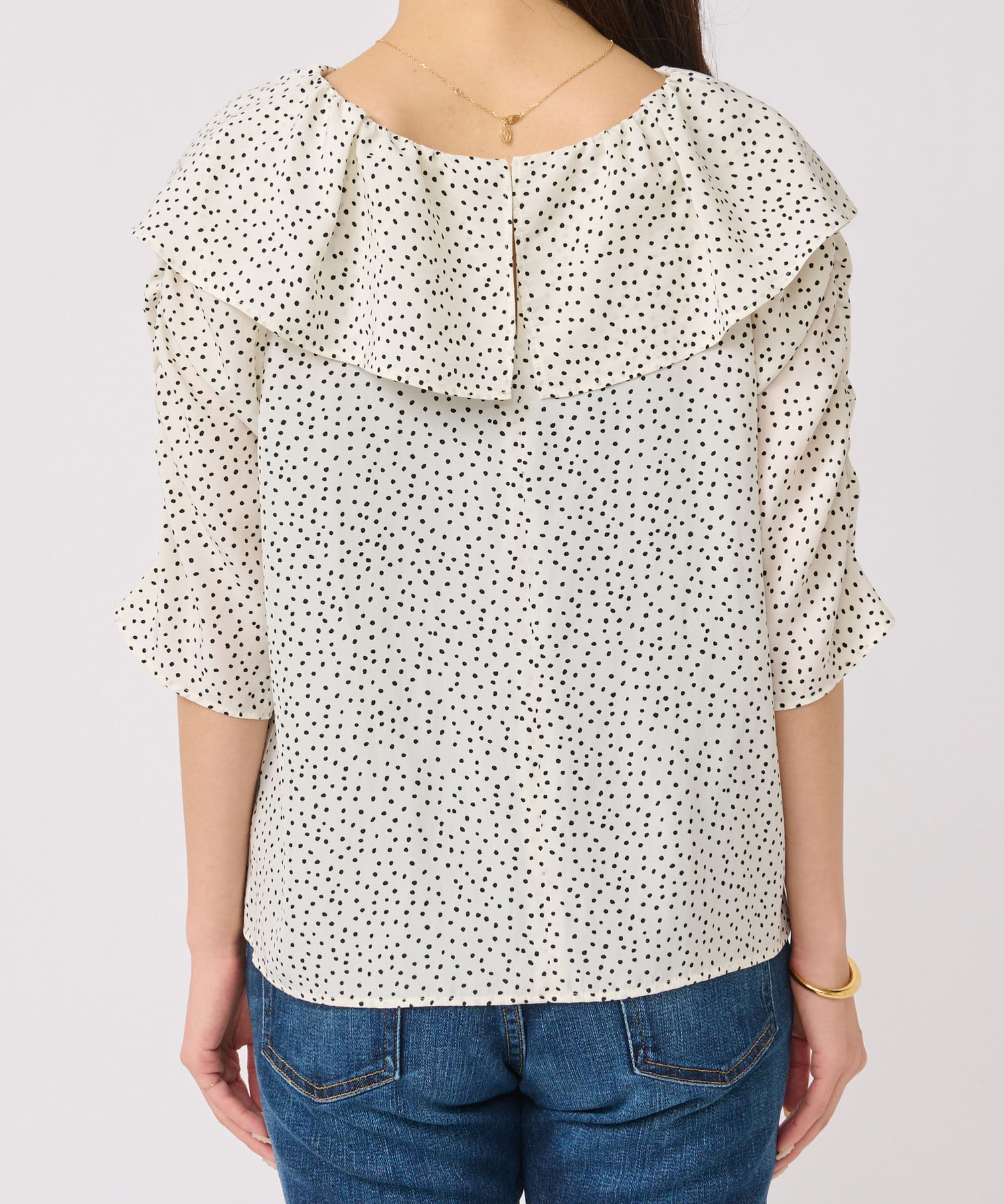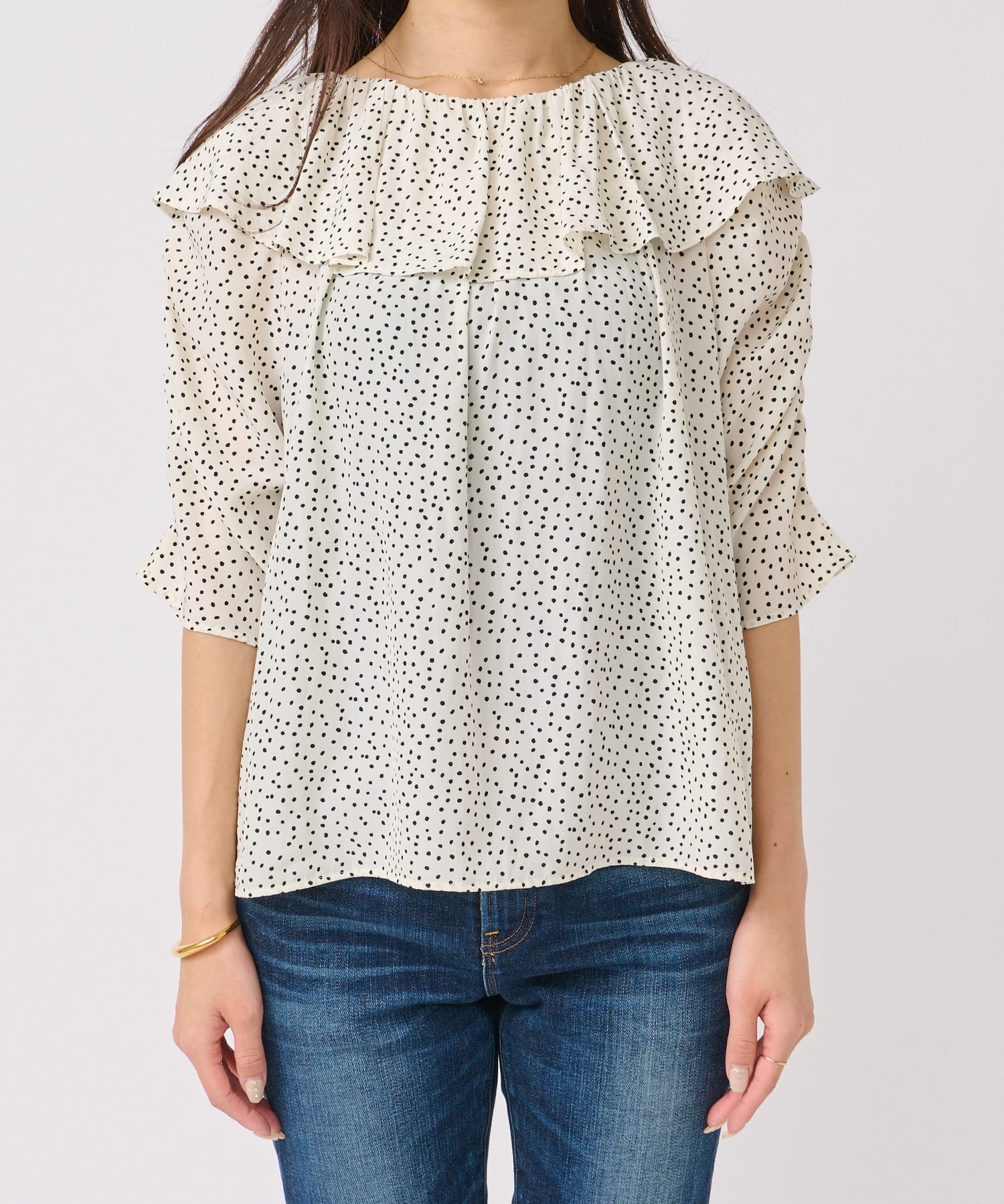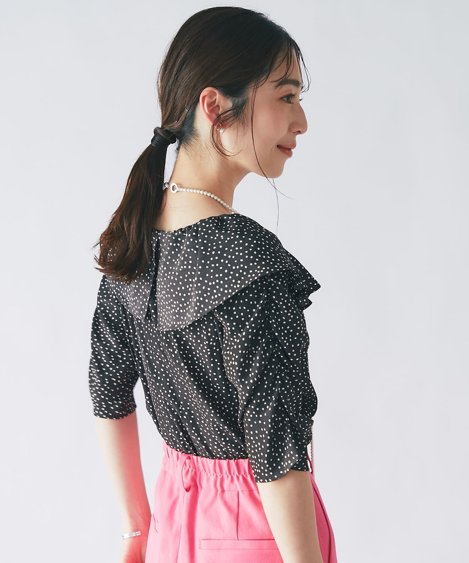 #大人カジュアル #きれいめカジュアル #上品カジュアル #ドット #総柄 #ドットプリント #ビッグカラー #ラッフルカラー #ラッフル #モテ服 #デート服 #モテ女子 #パワショル #ランダムドット