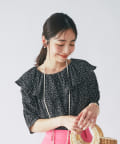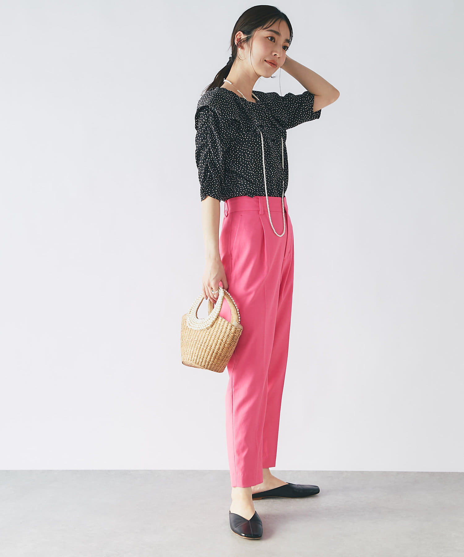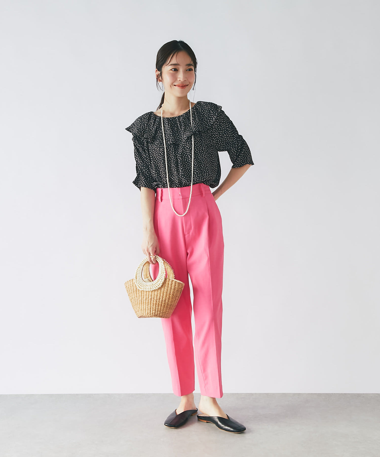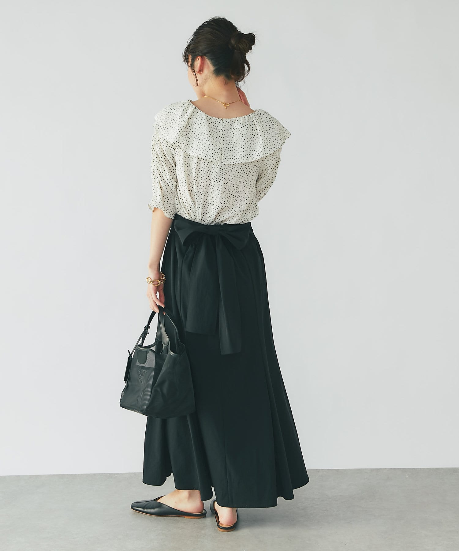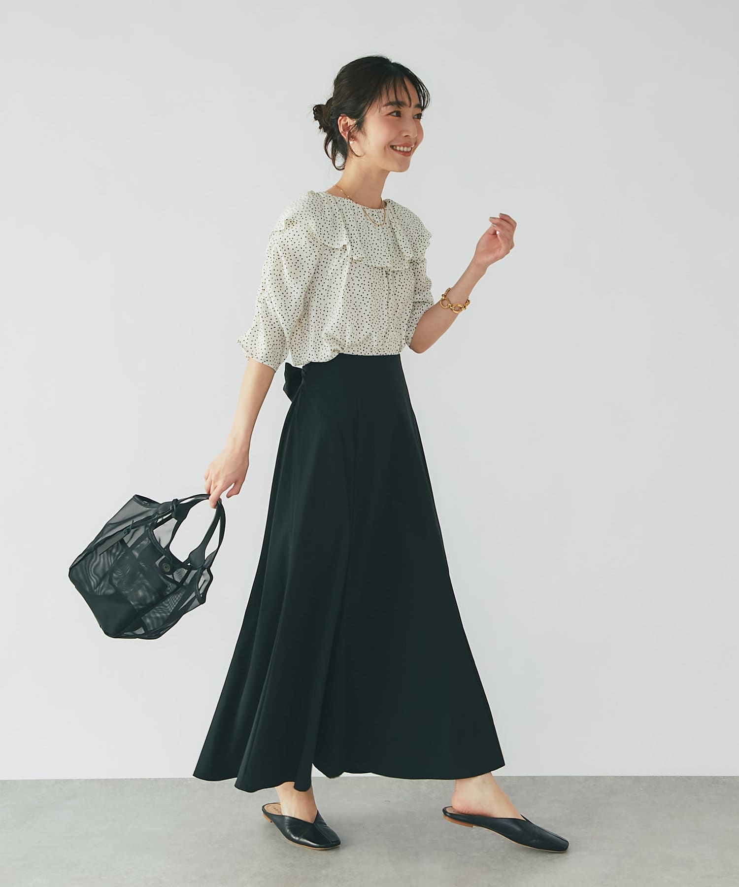 #大人カジュアル #きれいめカジュアル #上品カジュアル #ドット #総柄 #ドットプリント #ビッグカラー #ラッフルカラー #ラッフル #モテ服 #デート服 #モテ女子 #パワショル #ランダムドット