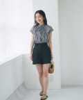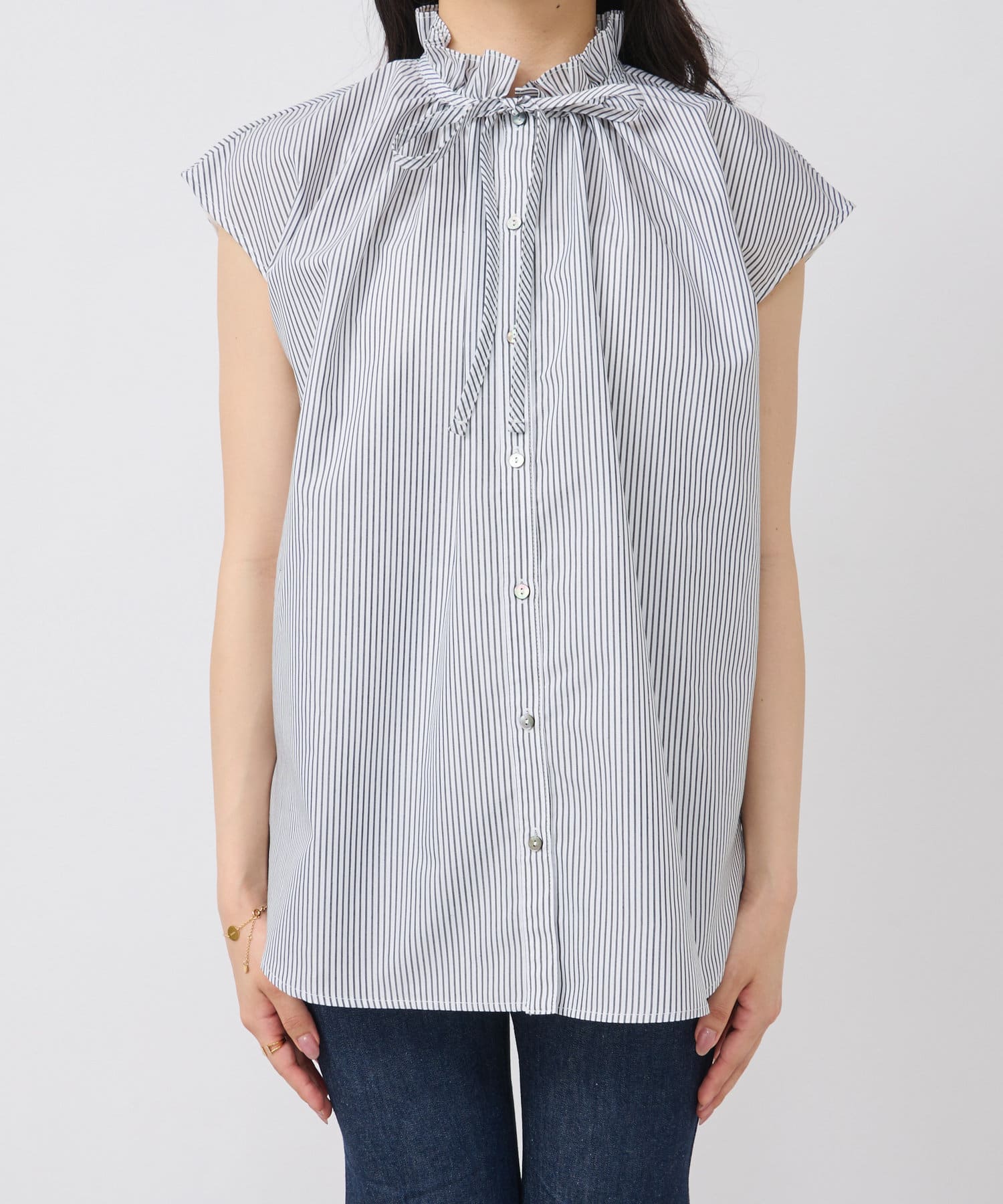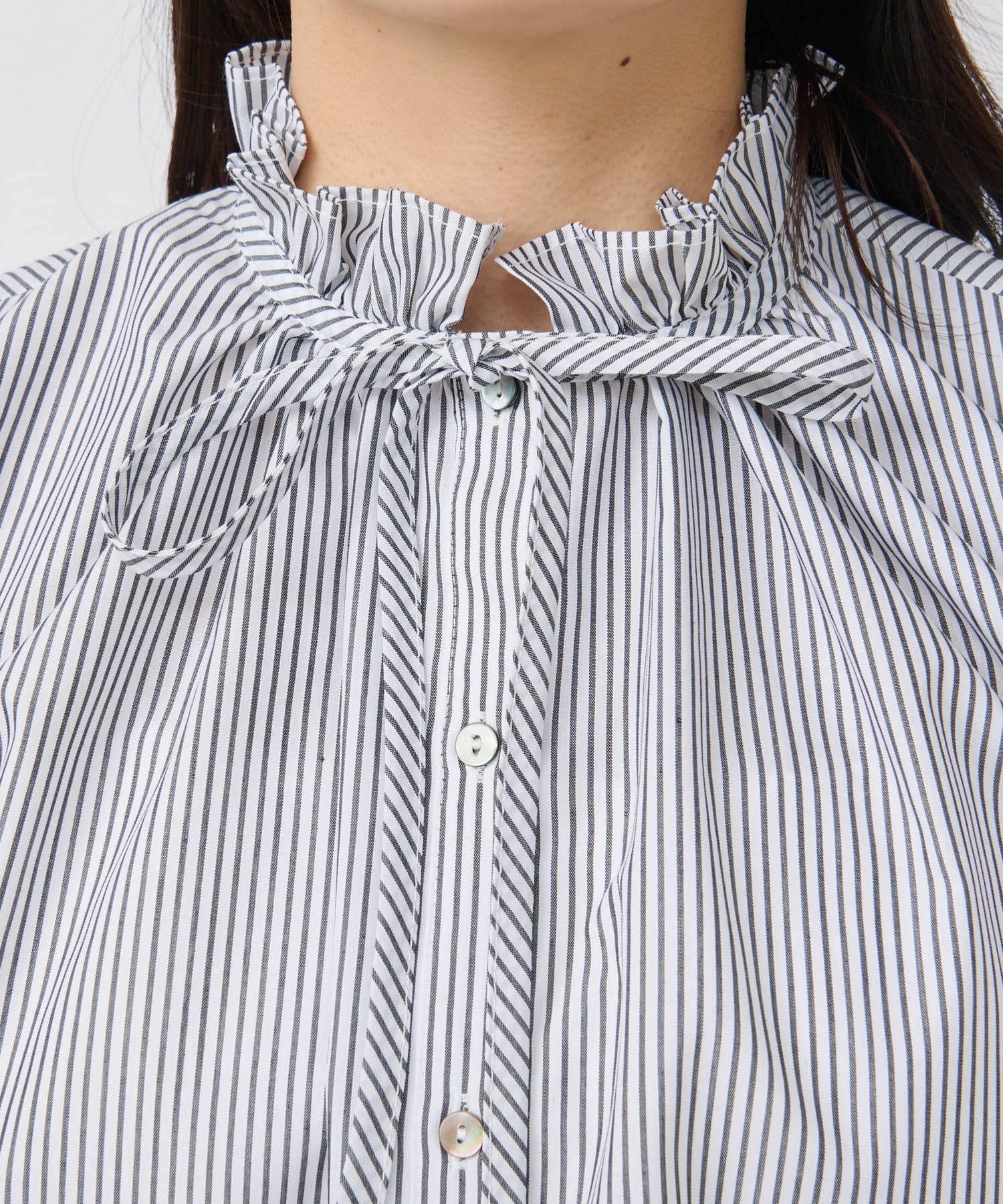 ・ストライプフリルリボンフレンチブラウス(LBZ1031304A0013)