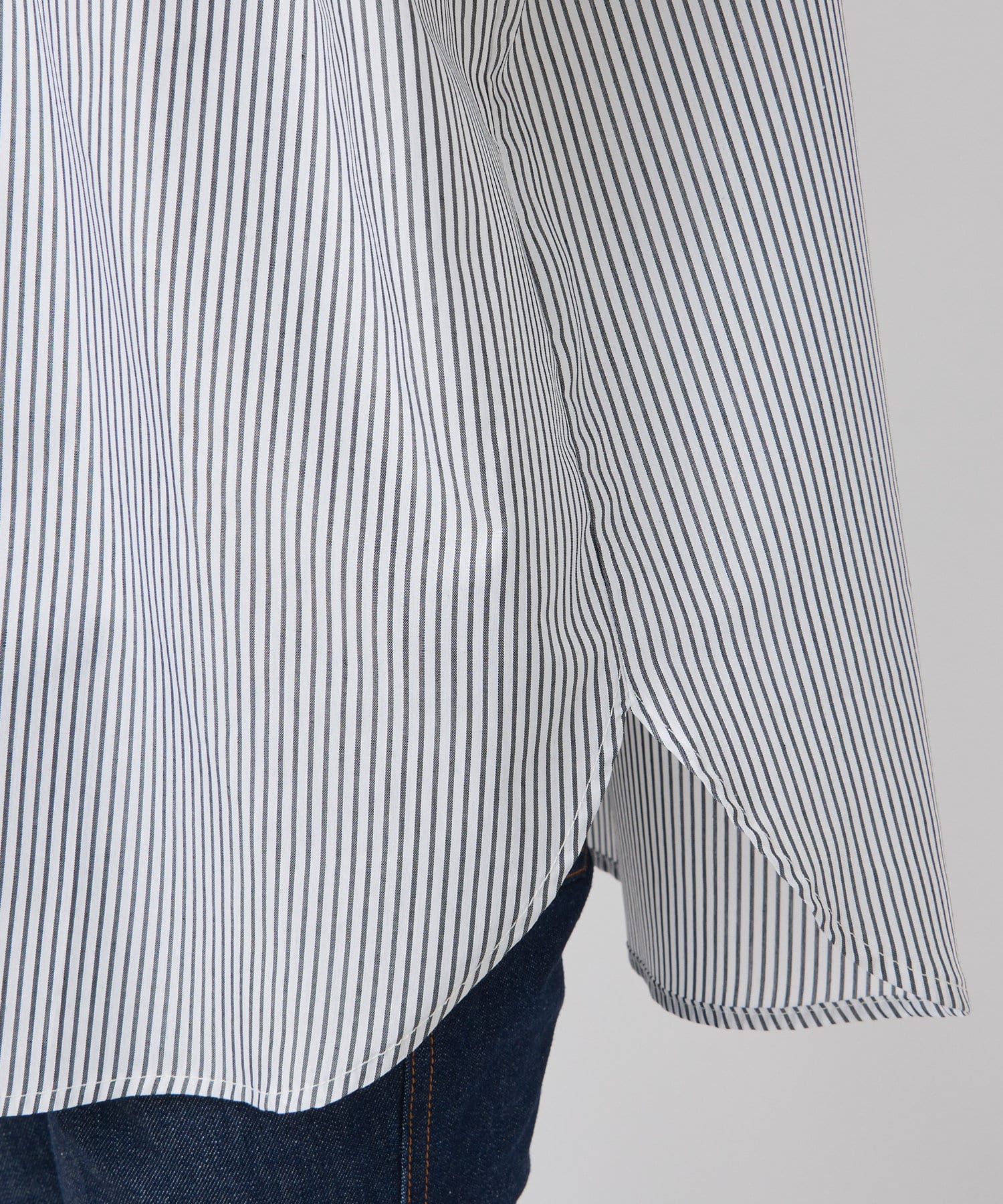 少し長めの着丈で、ボトムにインしても出しても着回しやすく、