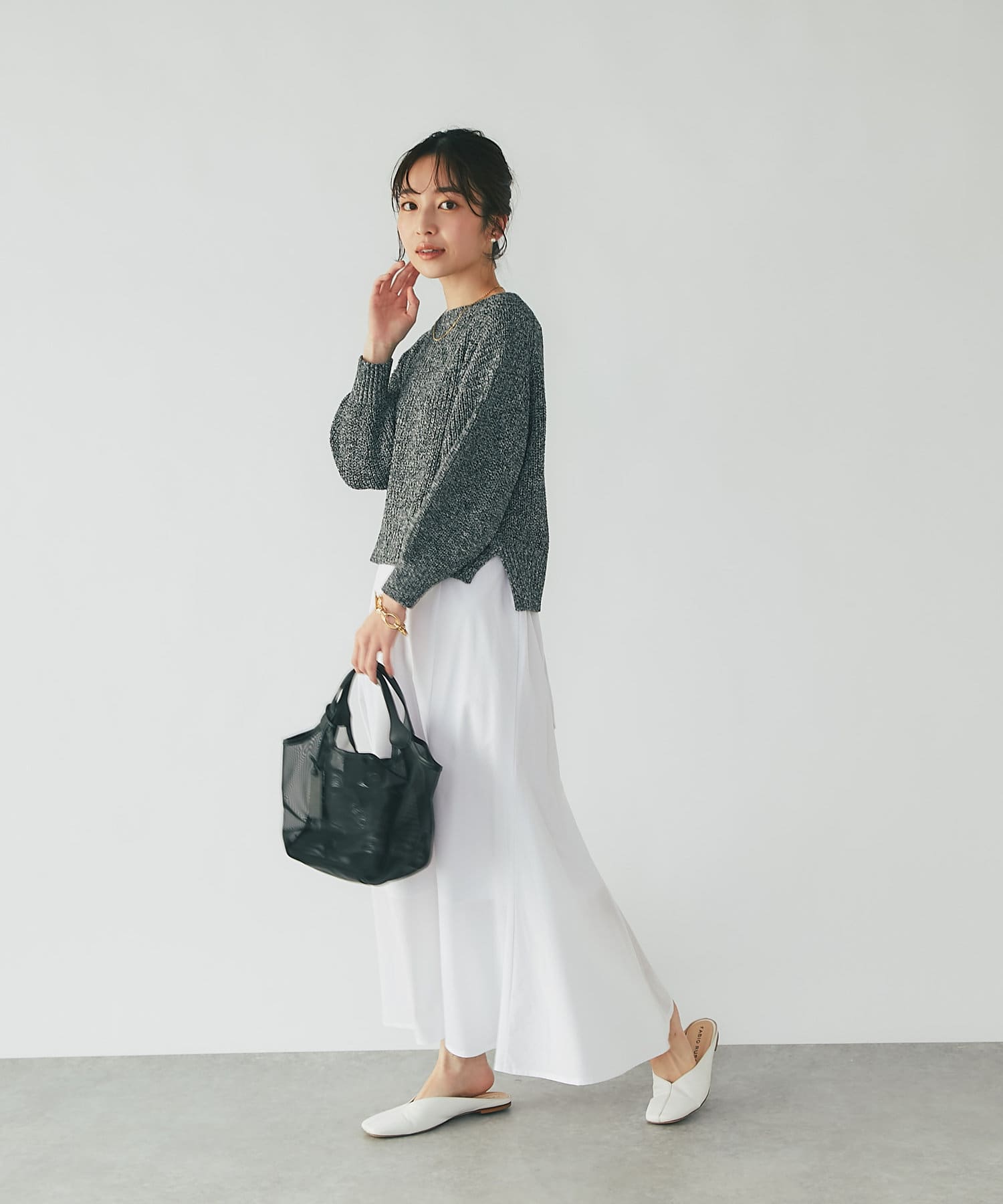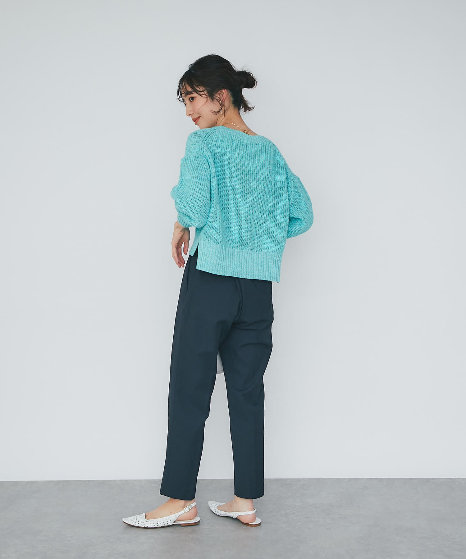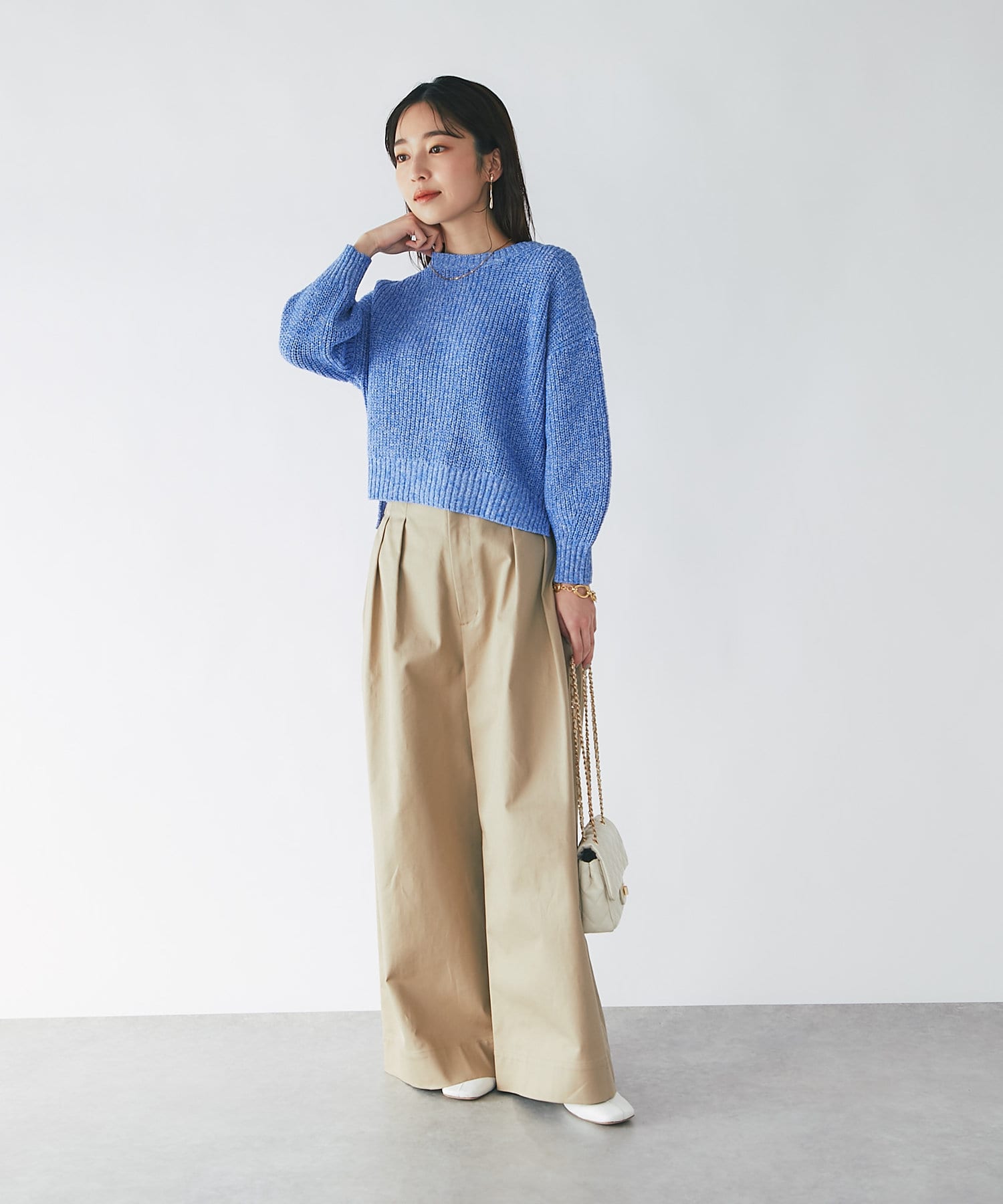 ハイウエストのボトムスと相性が良く、すっきりと着こなしていただけます。