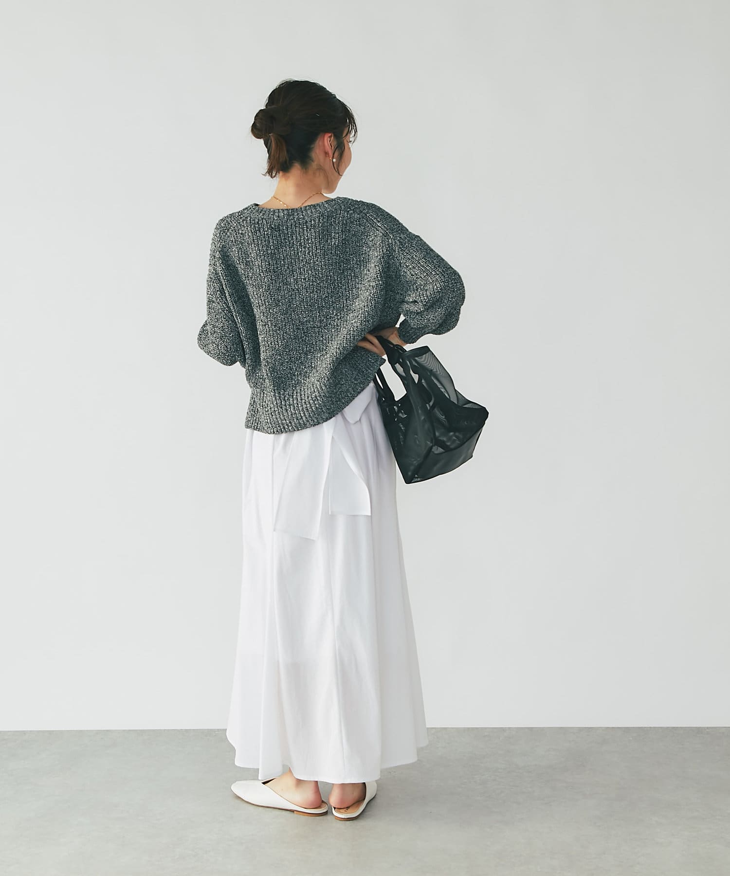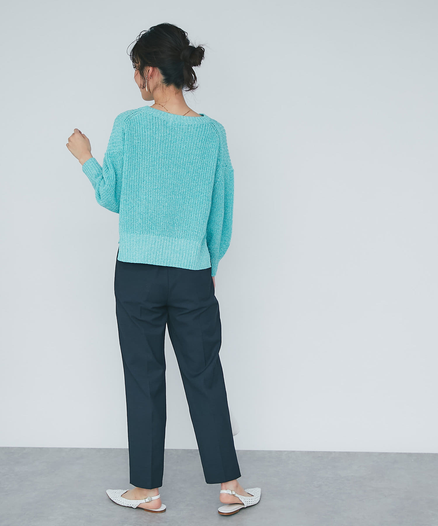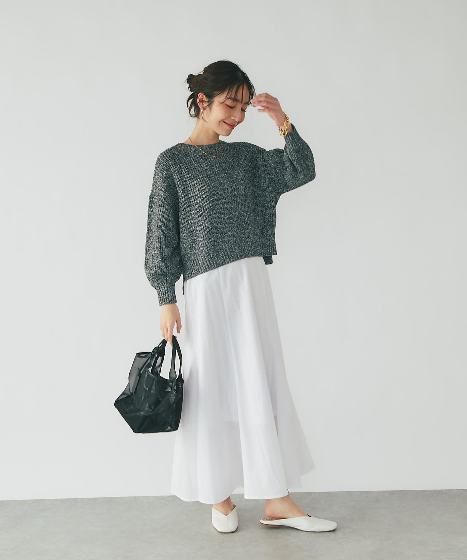 ハイウエストのボトムスと相性が良く、すっきりと着こなしていただけます。