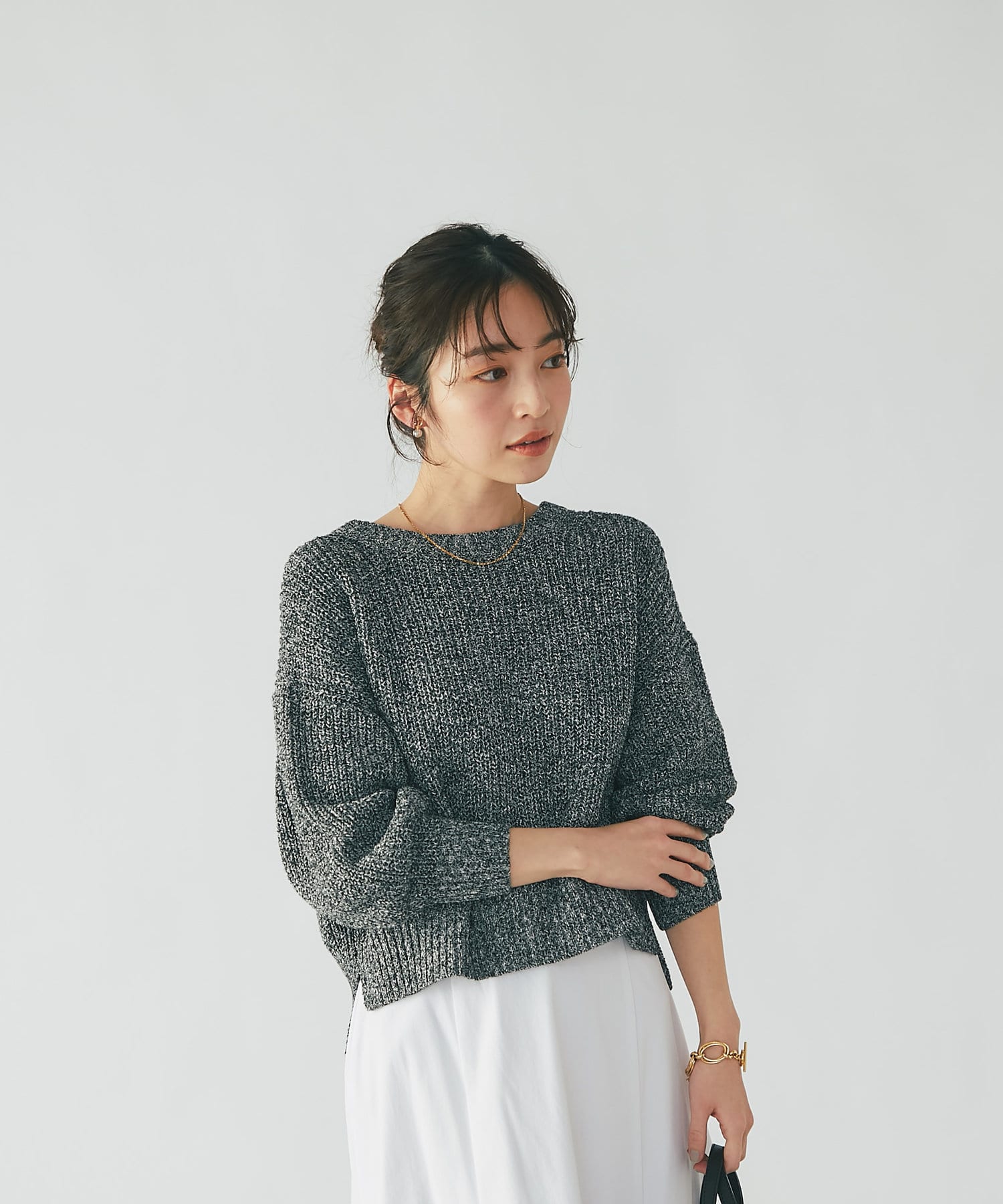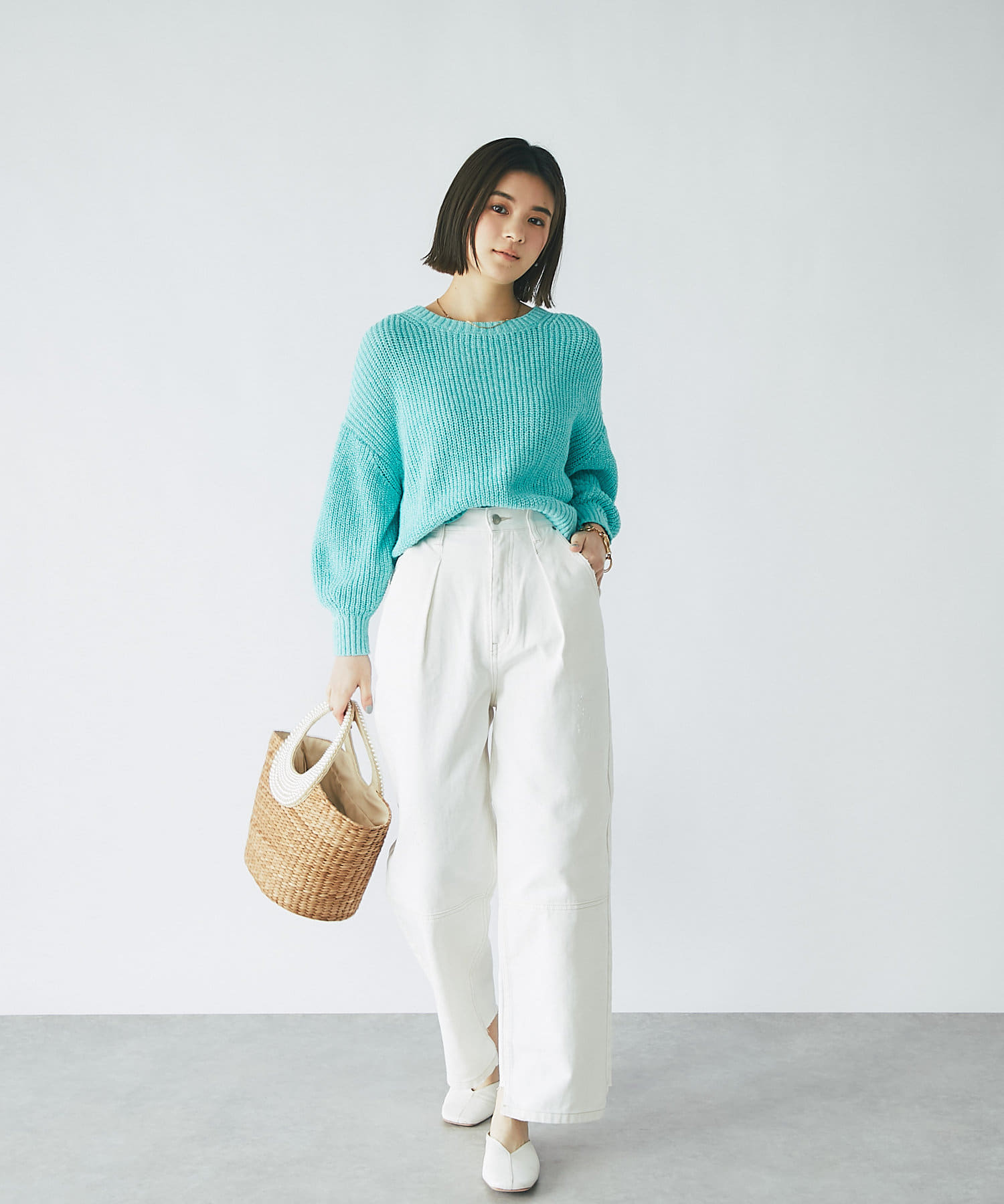 #大人カジュアル #きれいめカジュアル #上品カジュアル #大人女子 #ニット #春ニット #ギマコットン #ブークレ #クロップド丈 #クロップドニット #トレンド #カラーニット #モテ服