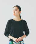 首元を美しく見せるクルーネックで、前後どちらでも着用できる2WAYデザインです。