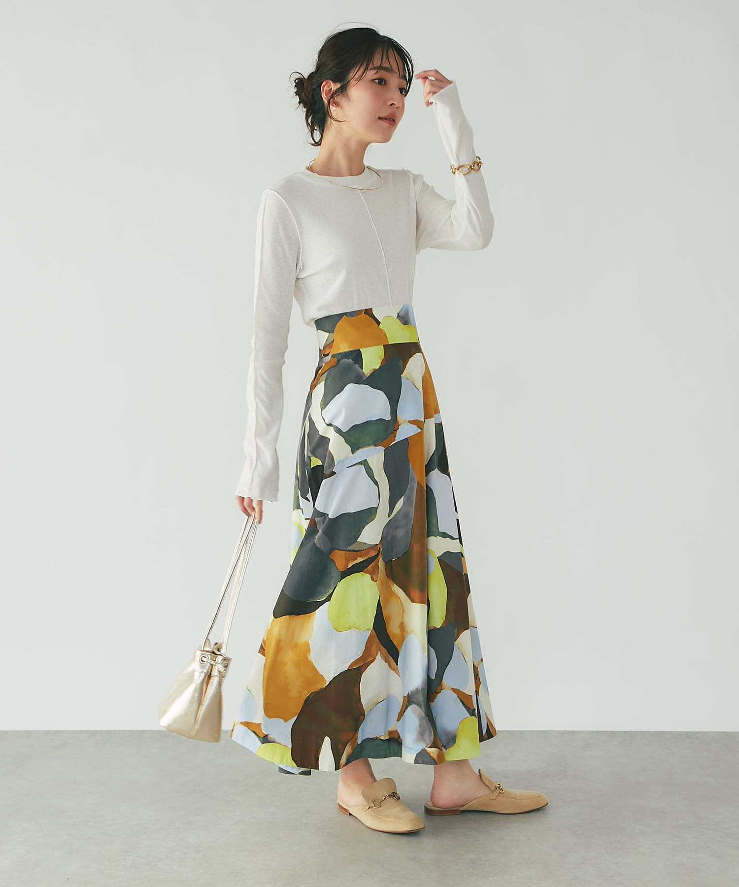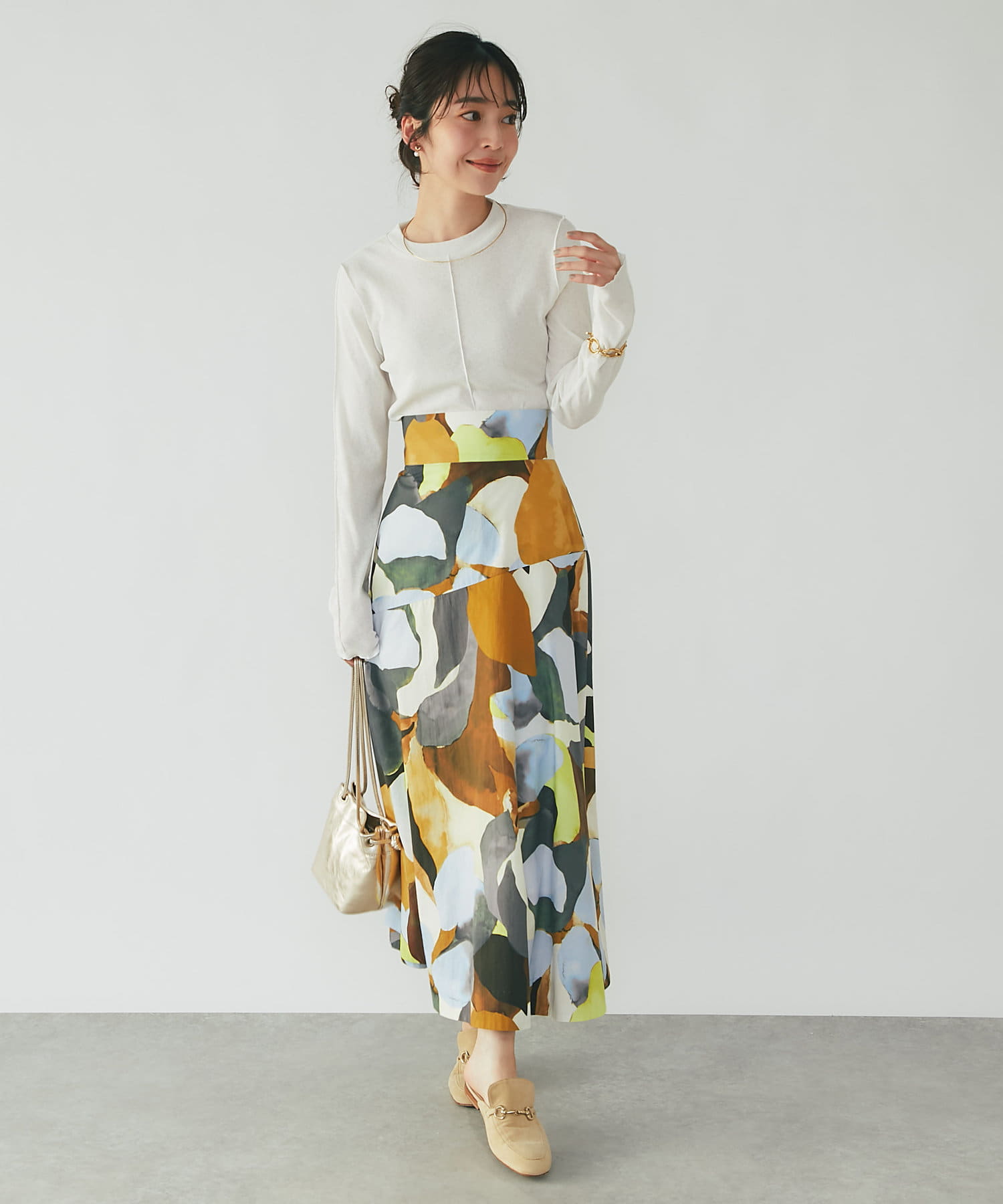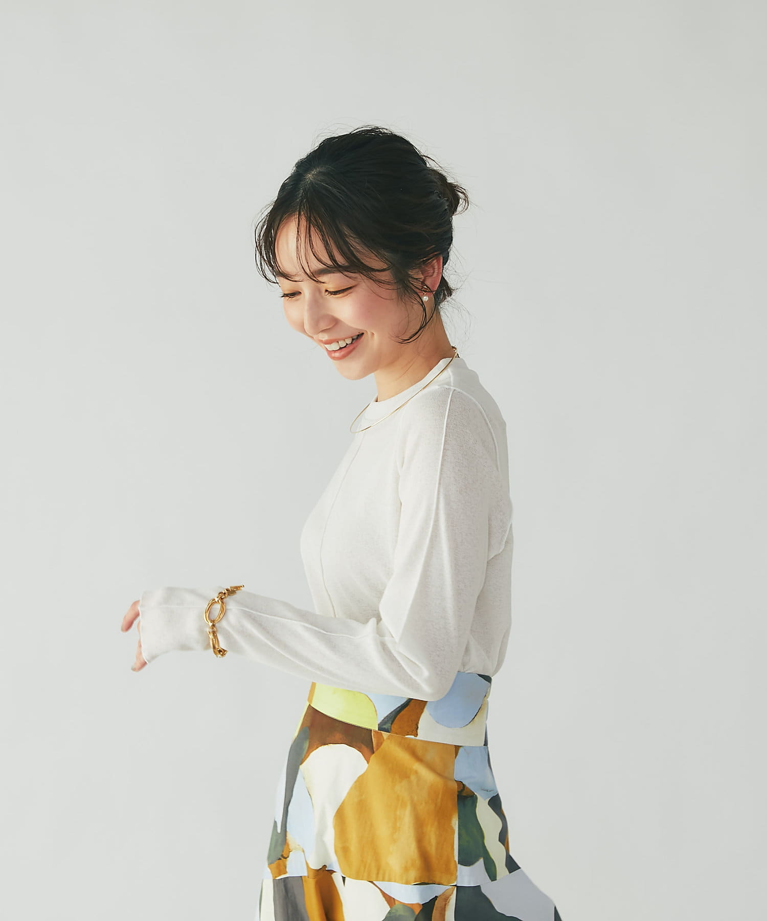 シンプルなデザインなので、カラーアイテムや柄アイテムとの相性も抜群◎
