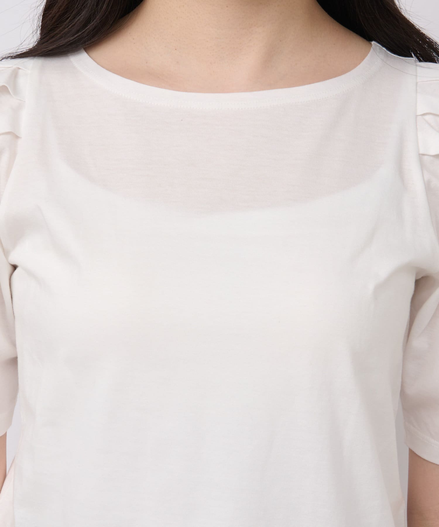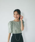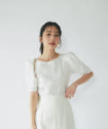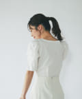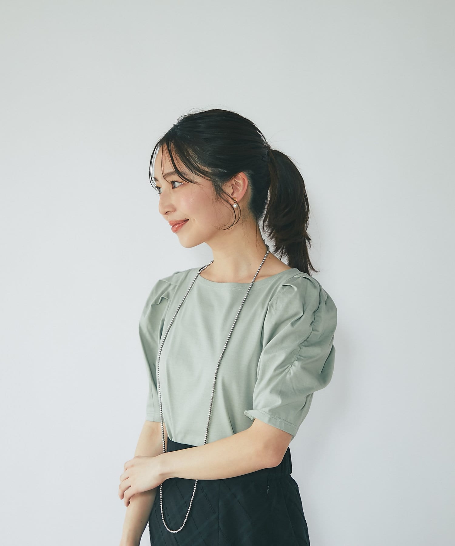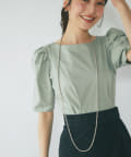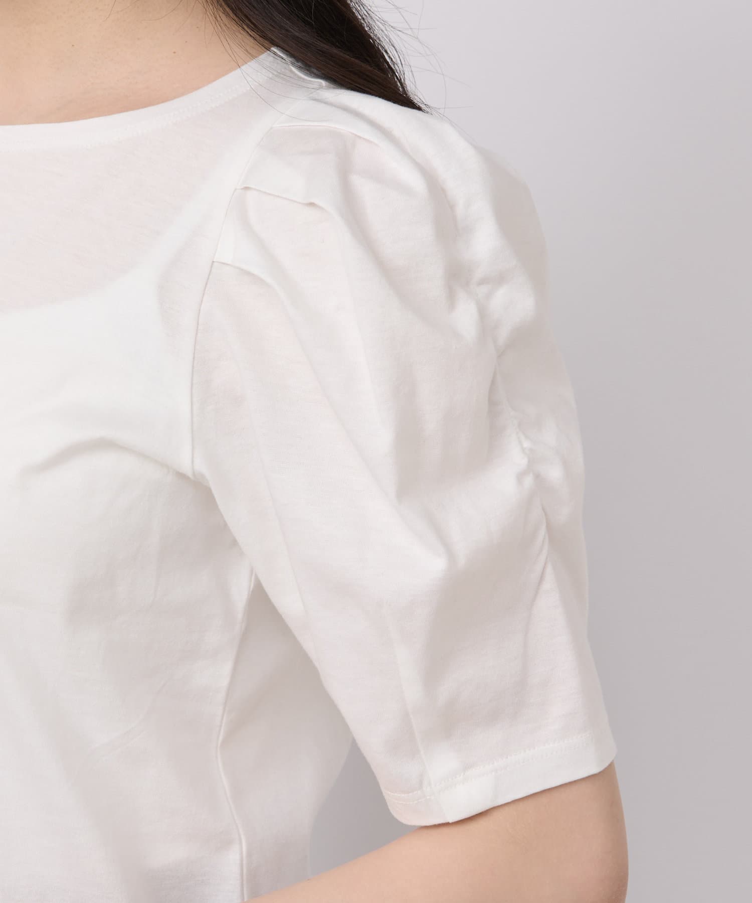 袖山タックとボリュームを控えめなギャザーのパワショルスリーブ。