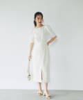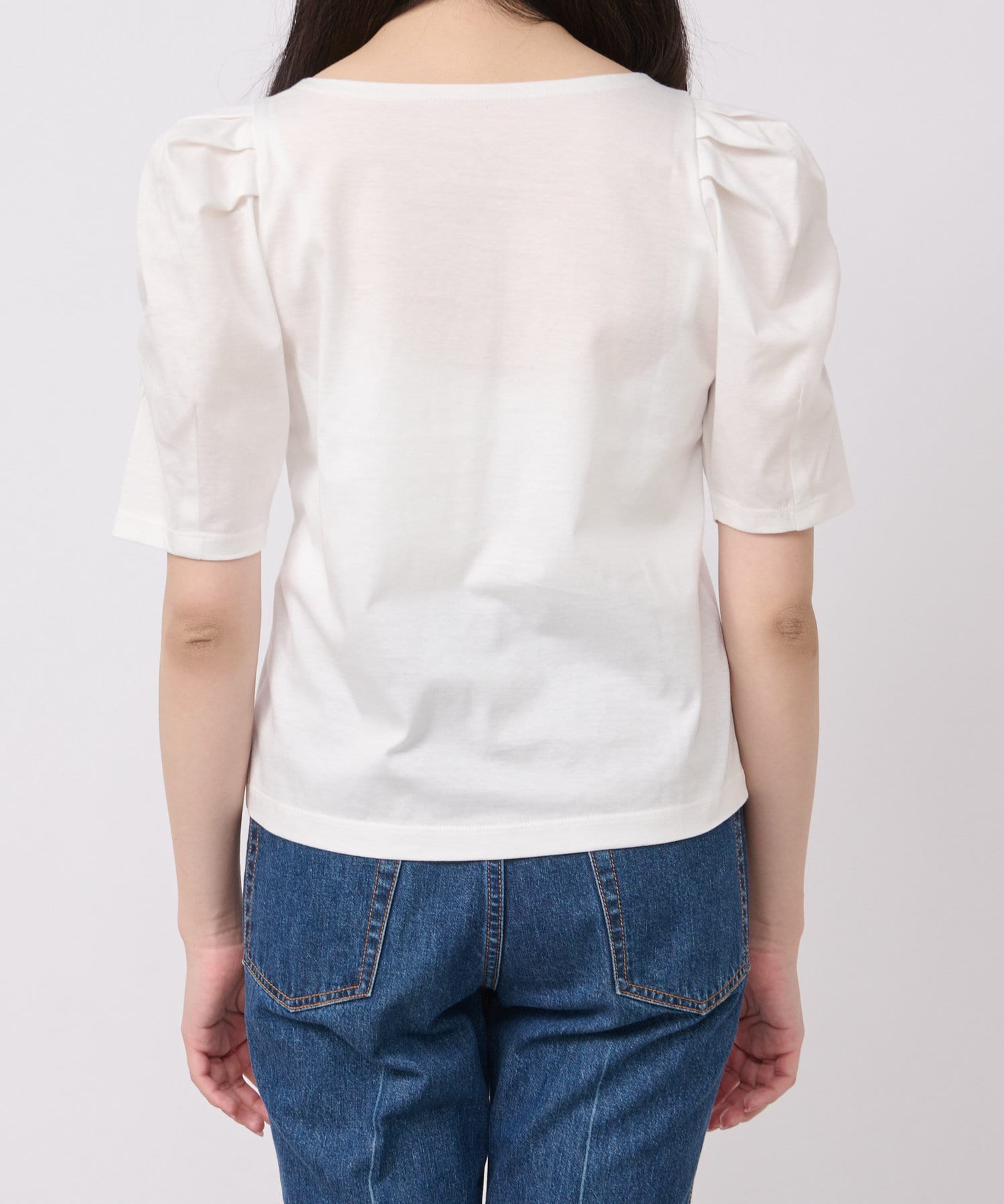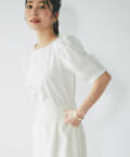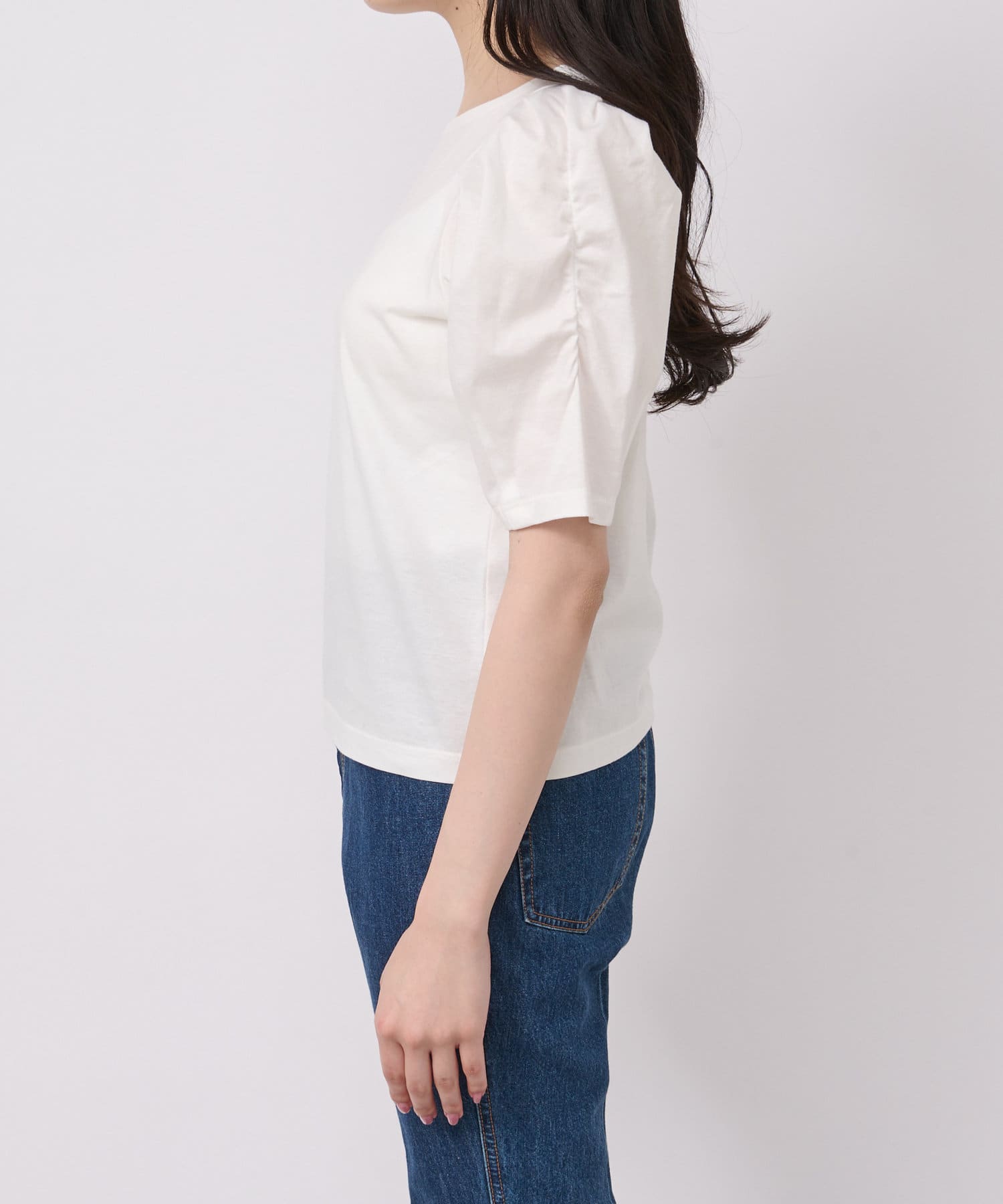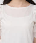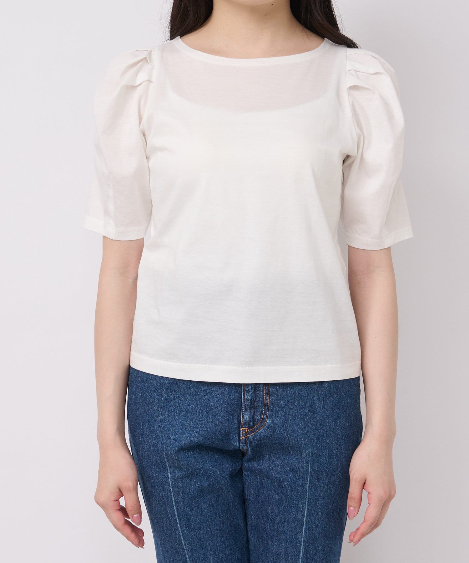 袖山タックとボリュームを控えめなギャザーのパワショルスリーブ。