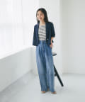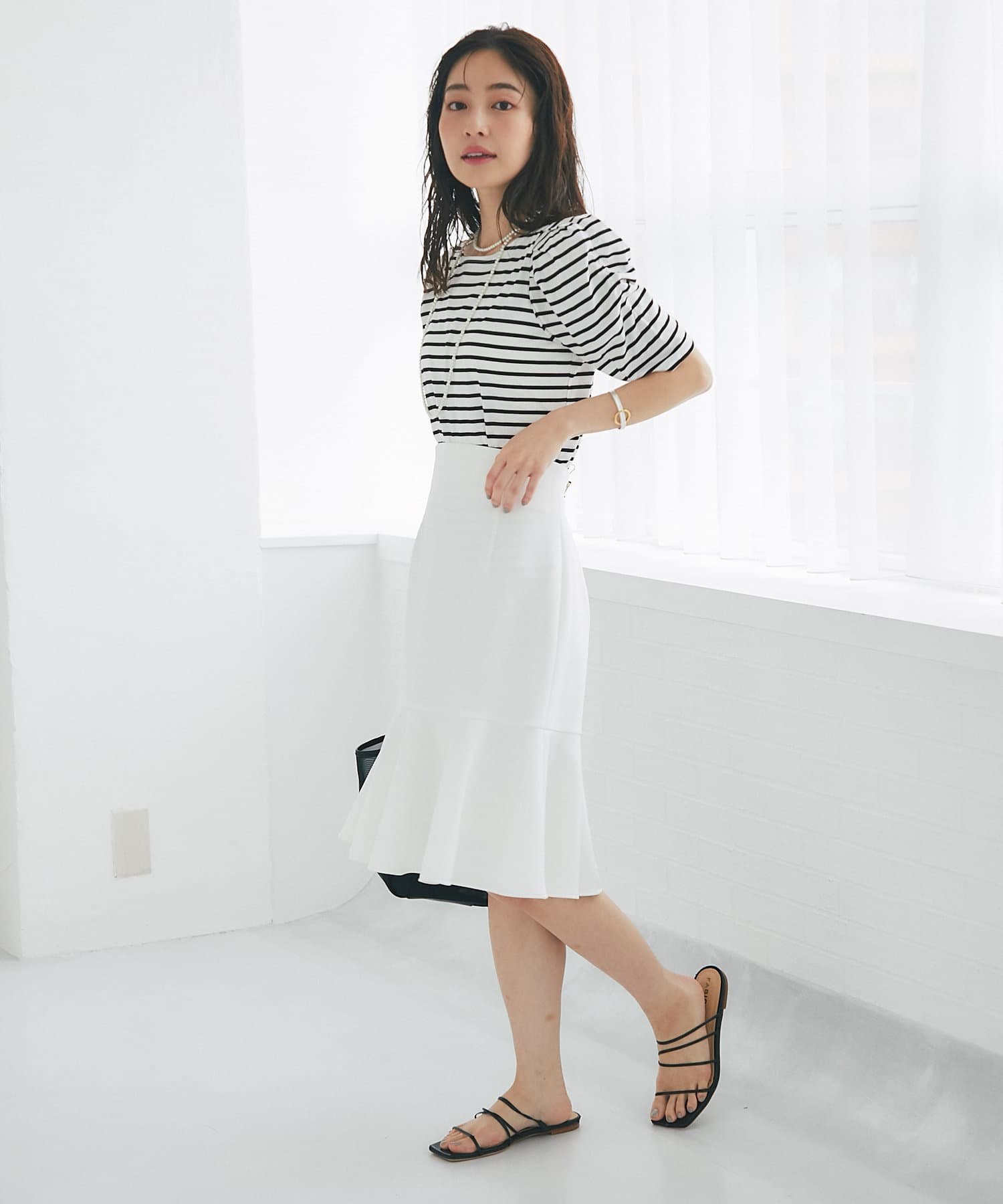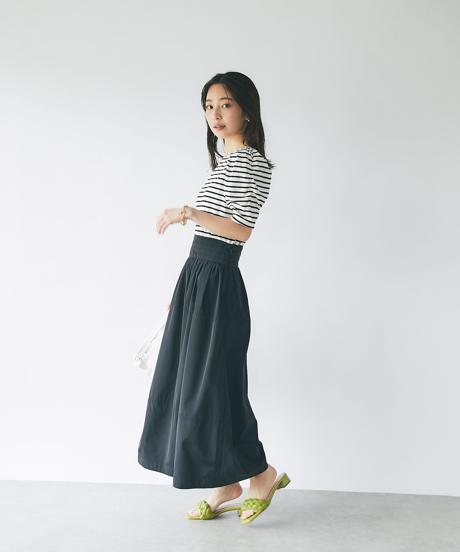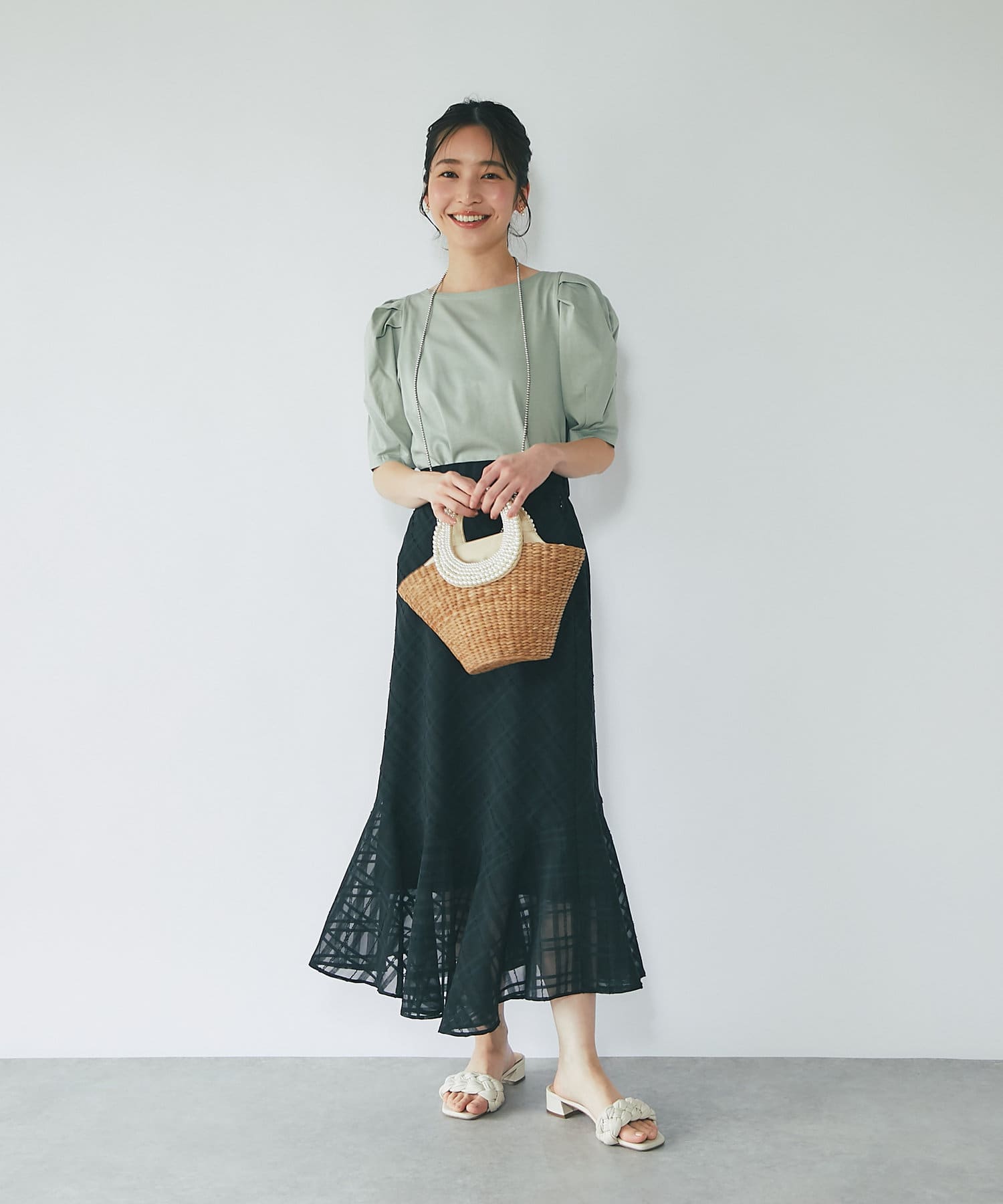 スカートと合わせてフェミニンに着こなすスタイルが特におすすめです。