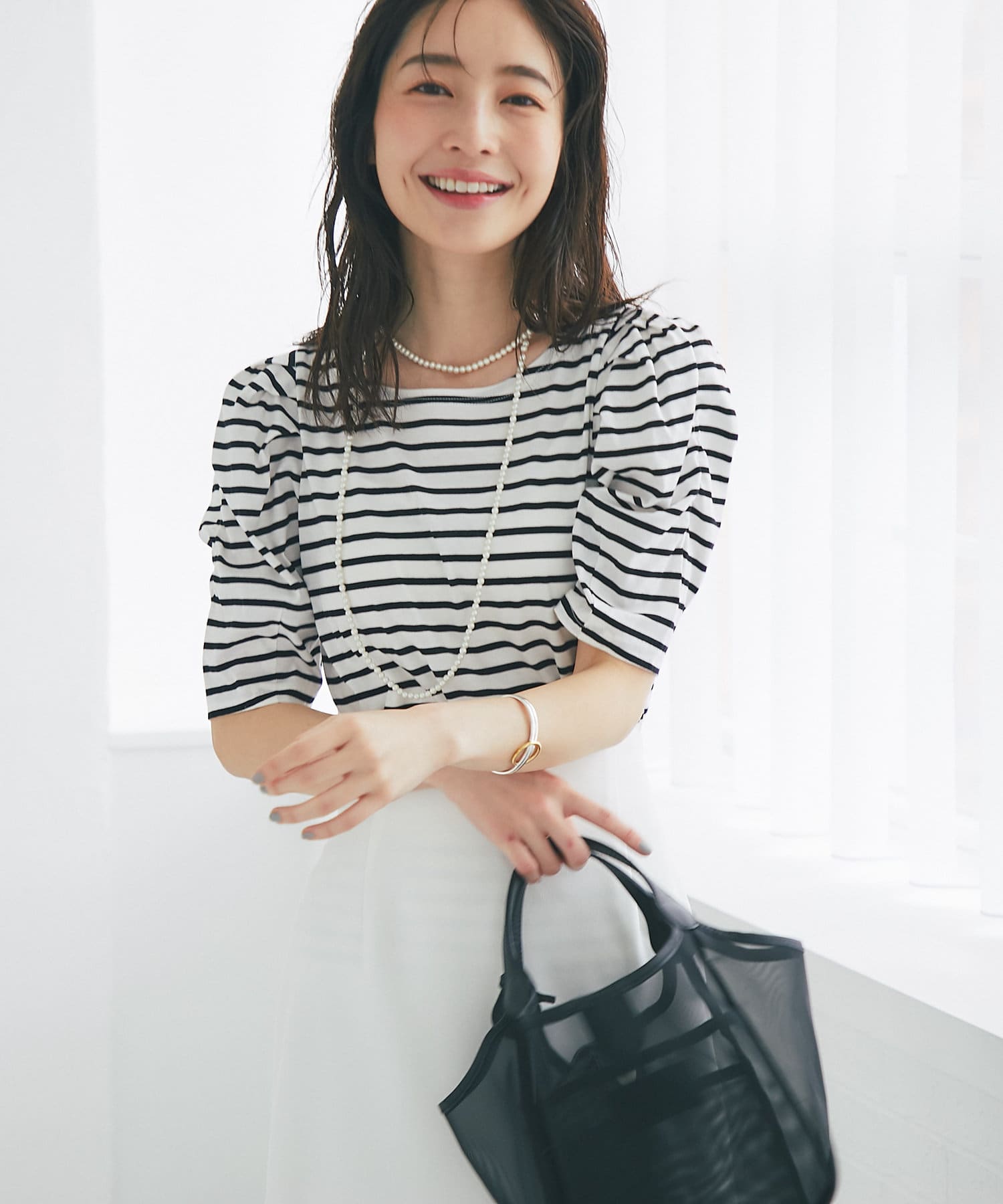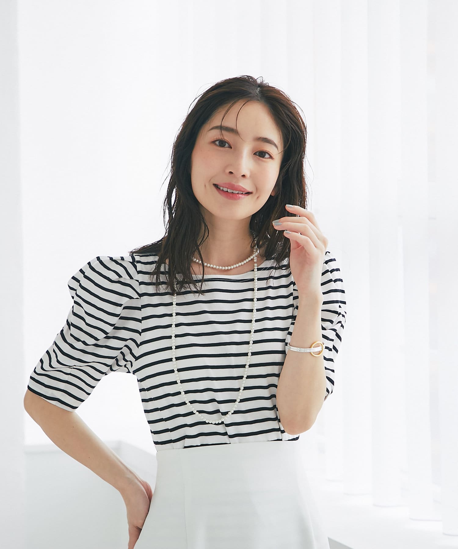 #大人カジュアル #きれいめコーデ #大人カジュアル #大人女子 #大人可愛い #上品コーデ #パワショル #カットソー #トレンド #ボーダー #インナー #シンプル #無地