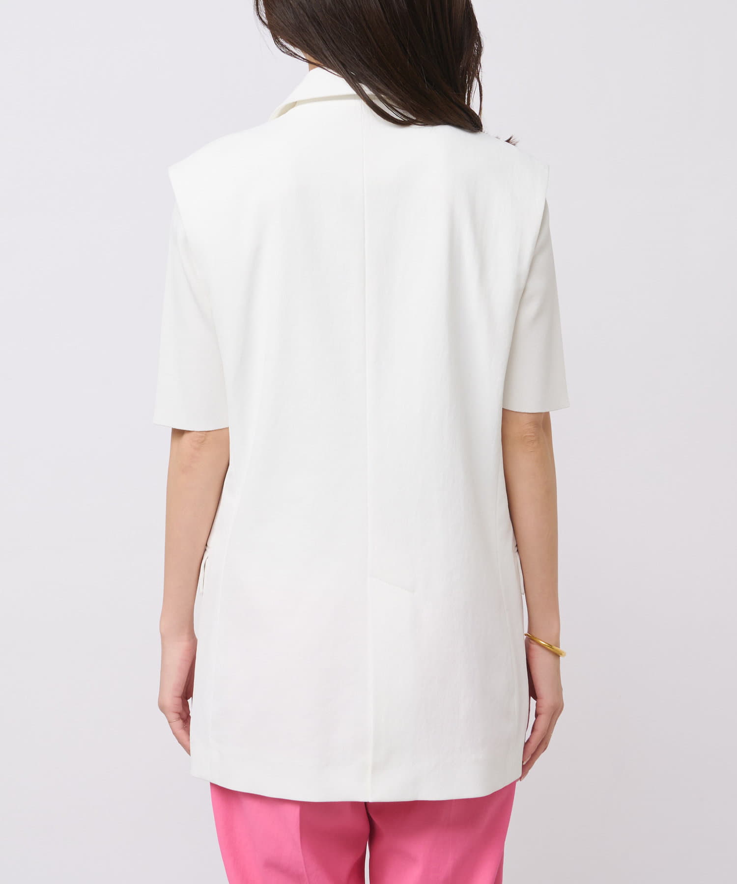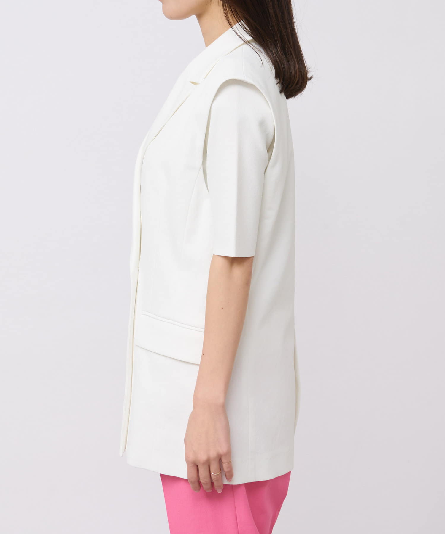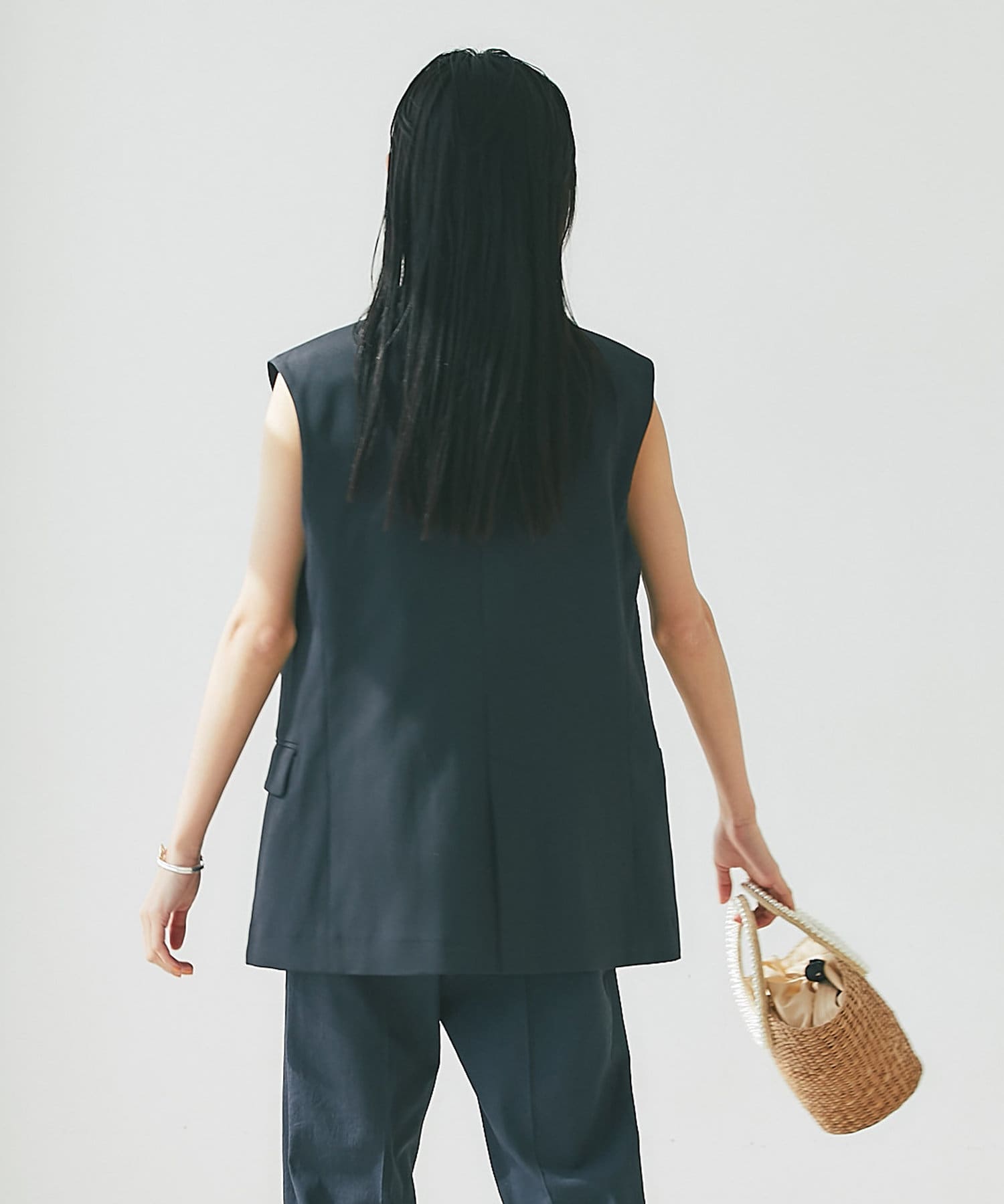 メンズライクでストンとしたボックスシルエットのスリーブレスジャケット。