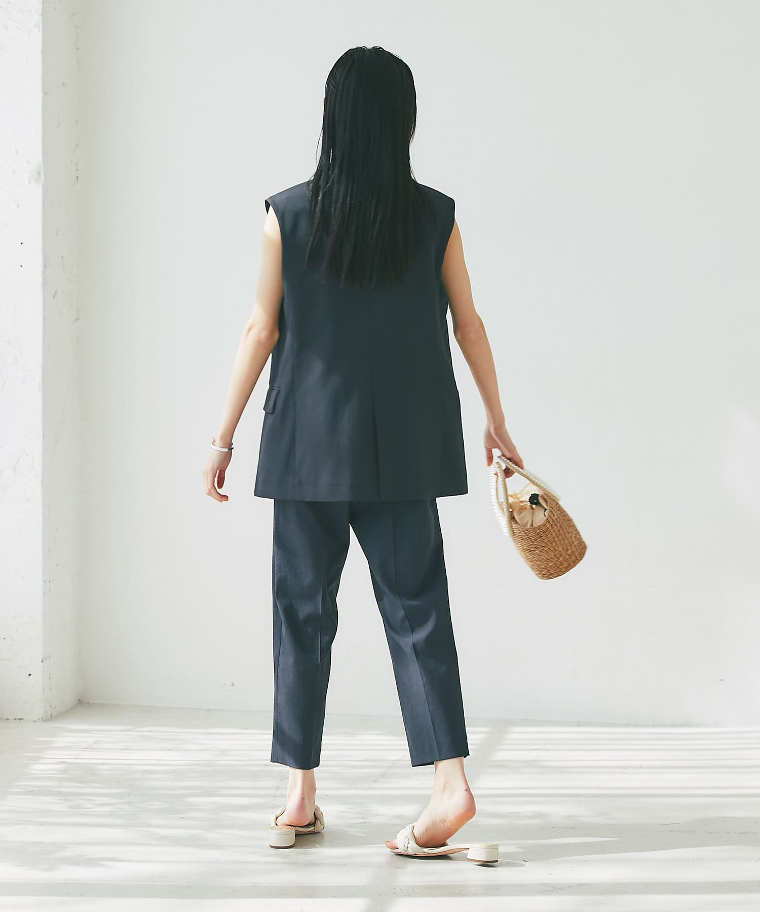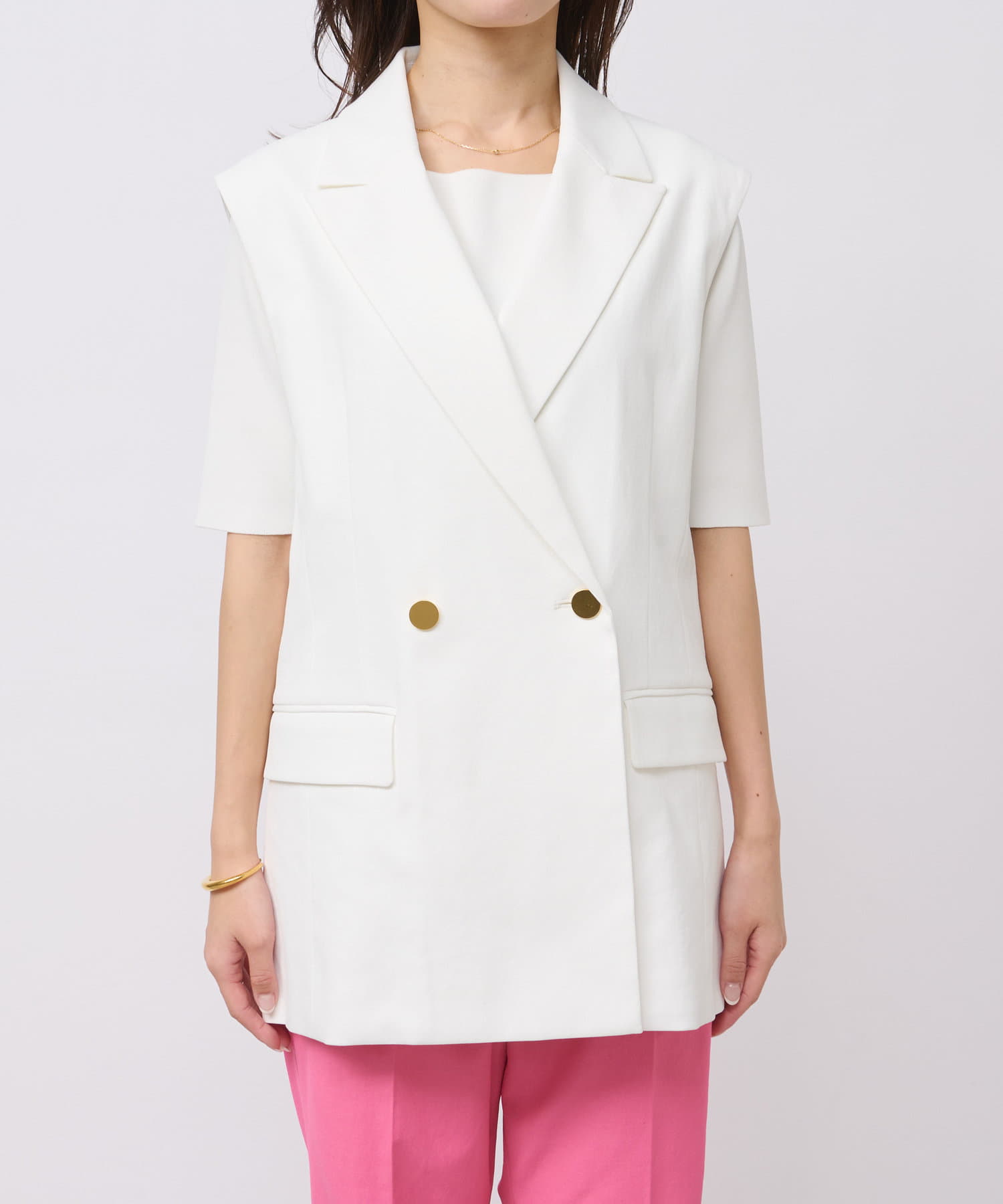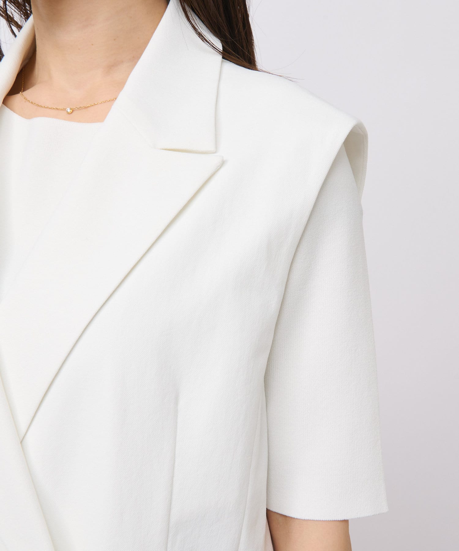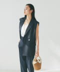 メンズライクでストンとしたボックスシルエットのスリーブレスジャケット。