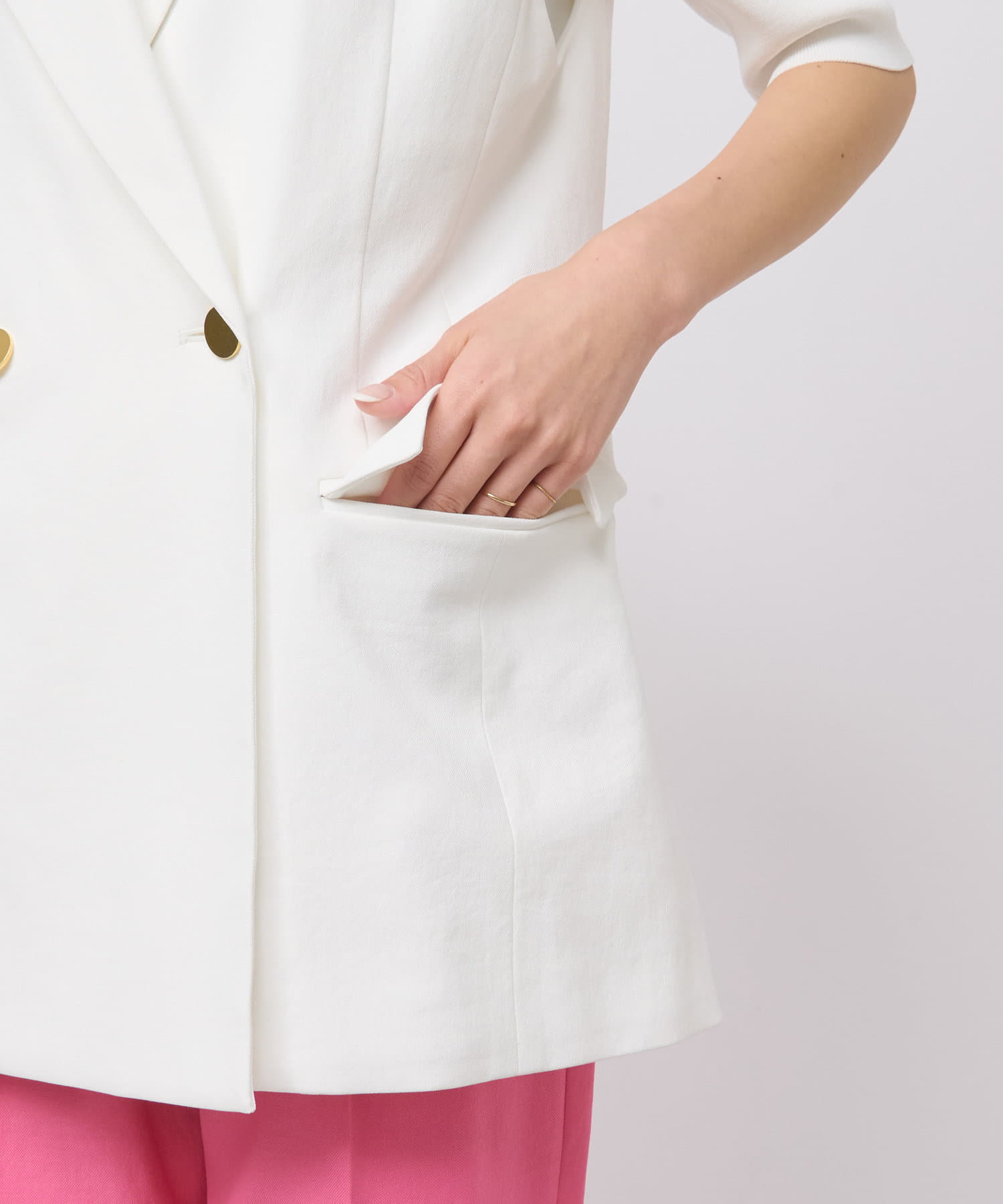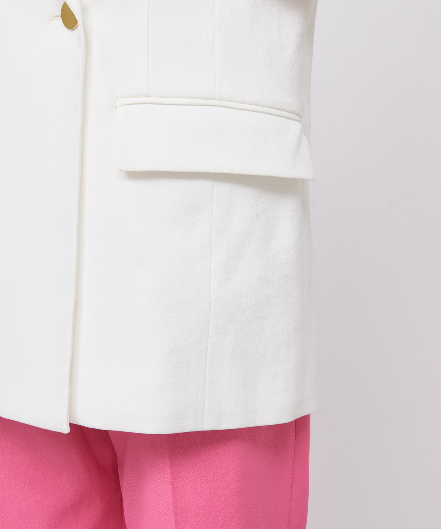 同素材のパンツやスカートとセットアップで着用すればオケージョンシーンでも大活躍。
