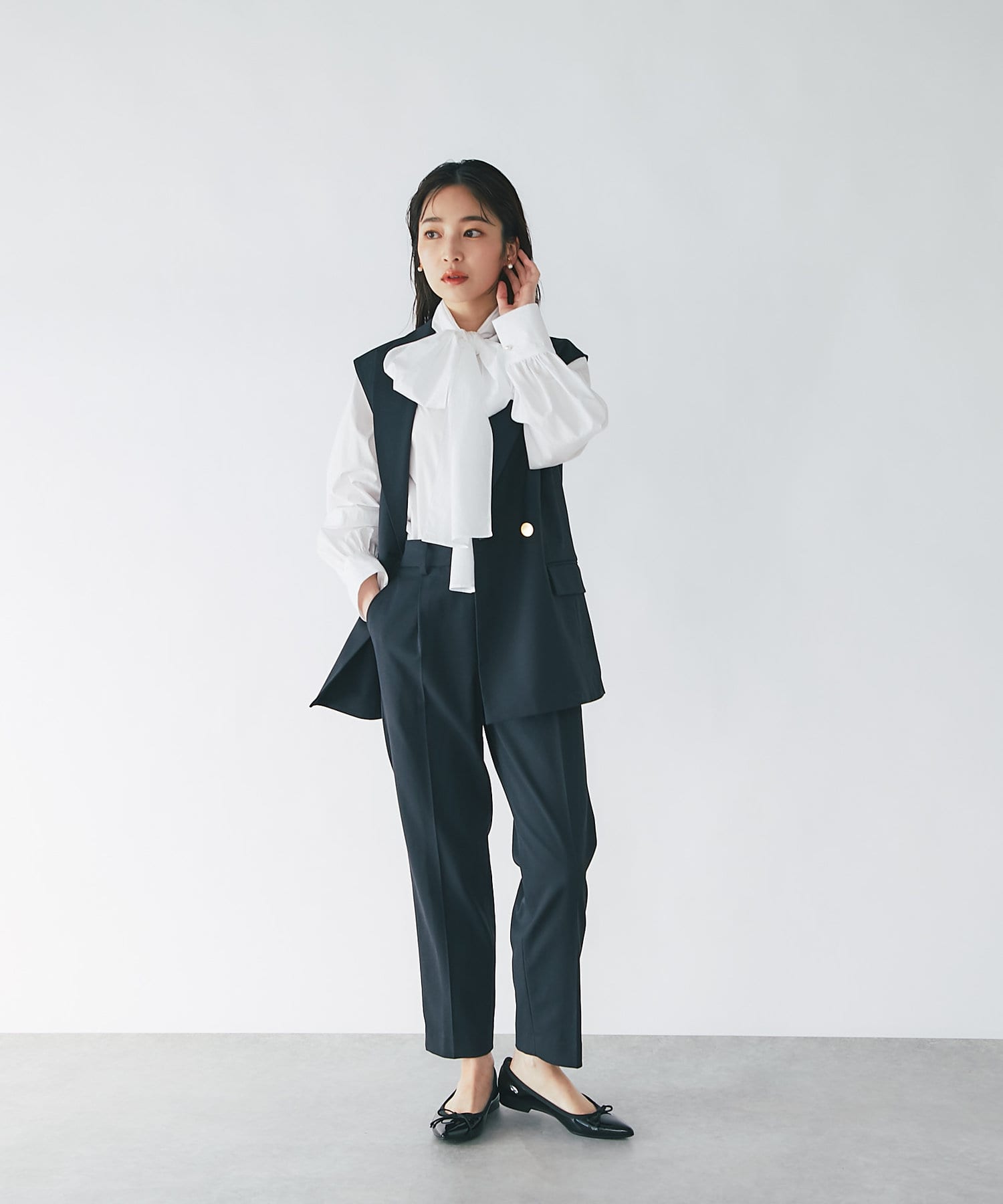 ブラウスなど綺麗目アイテムから、カジュアルにハイネックやカットソーと合わせても◎