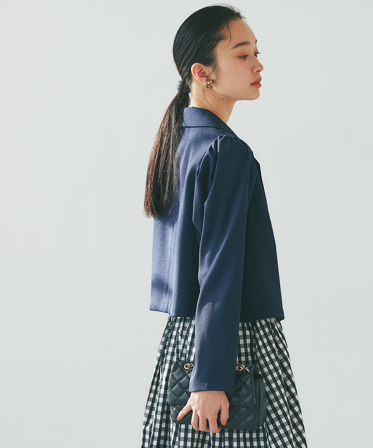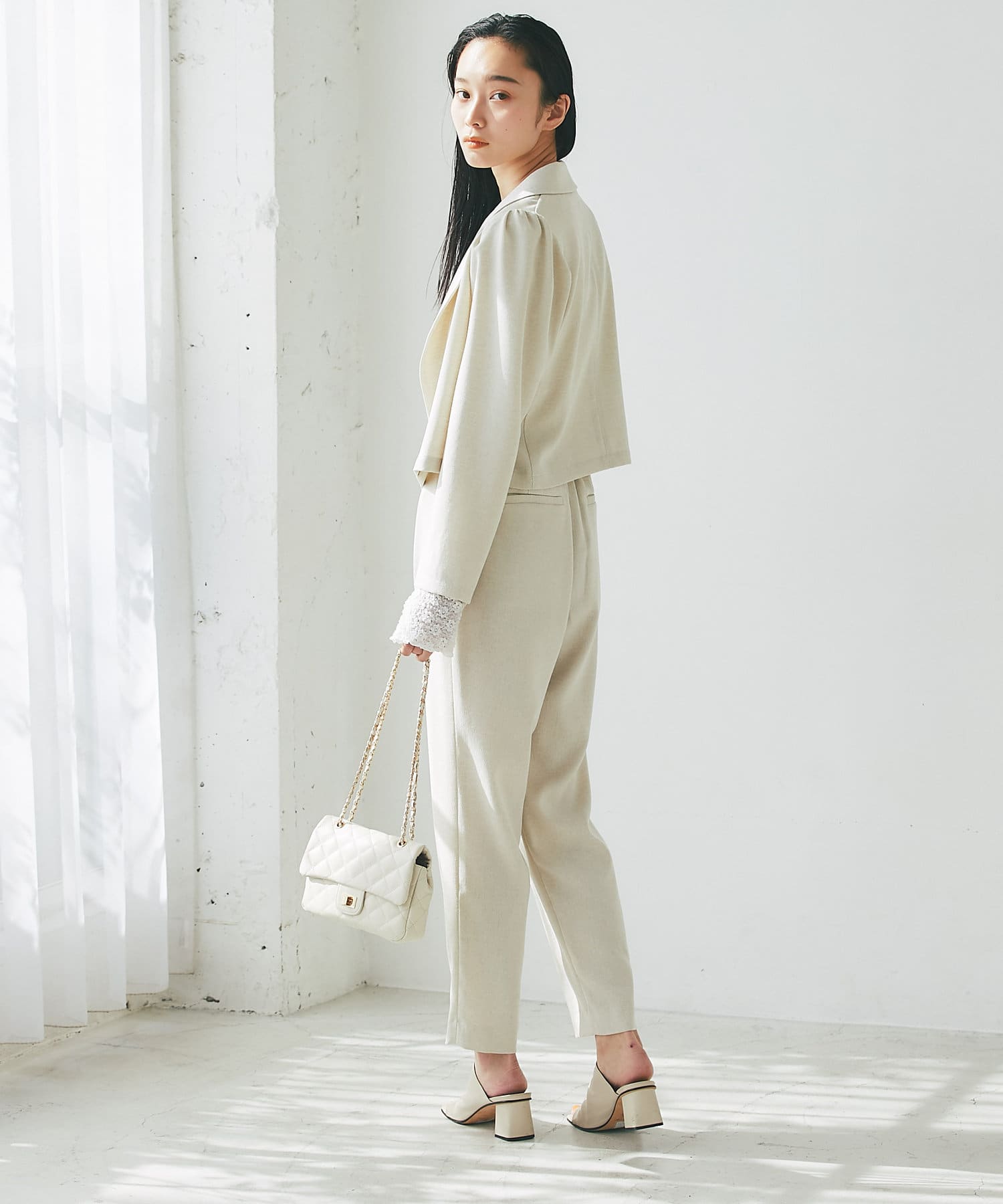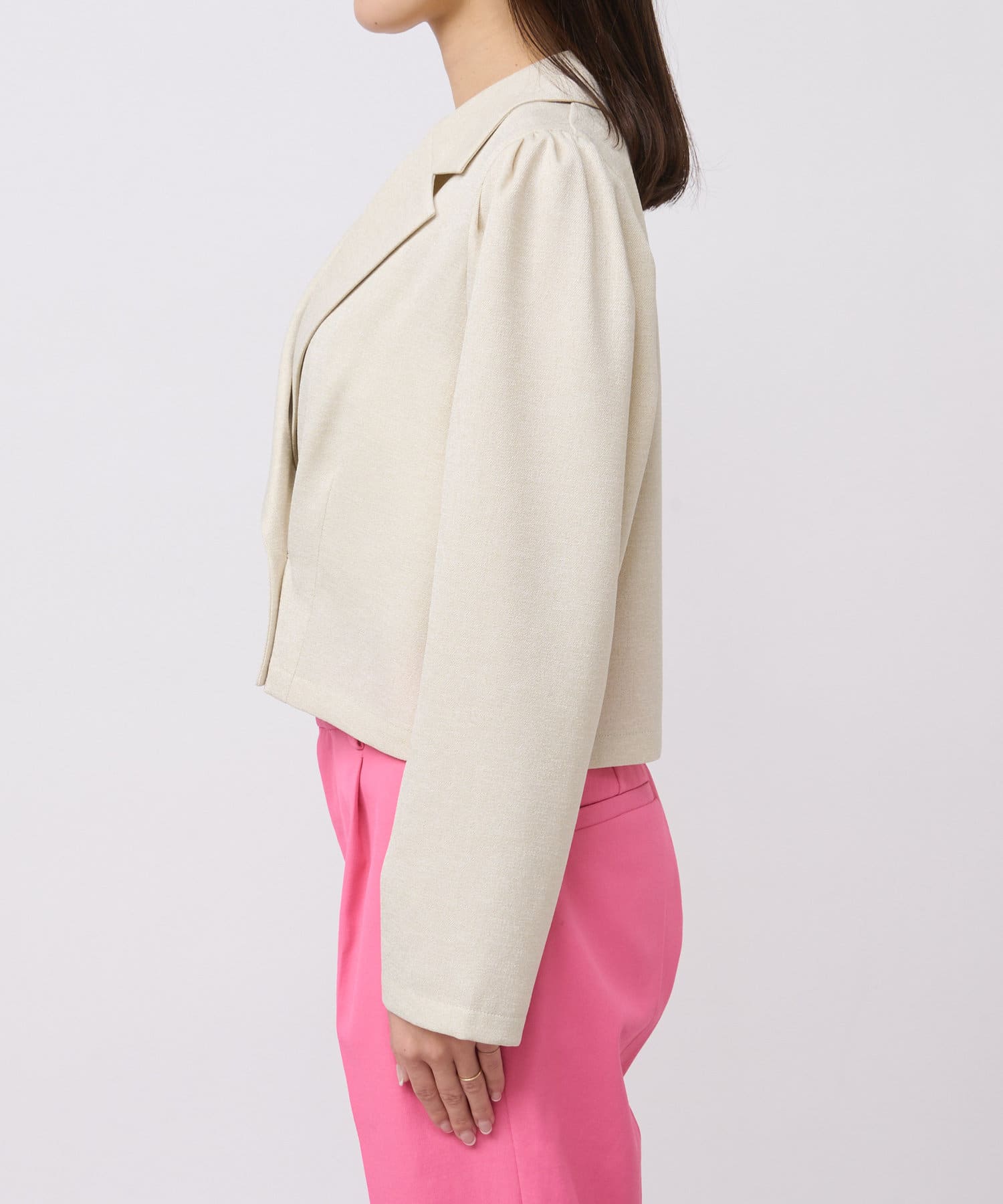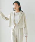 【セットアップ着用可能】リネンライクツイルクロップドジャケット