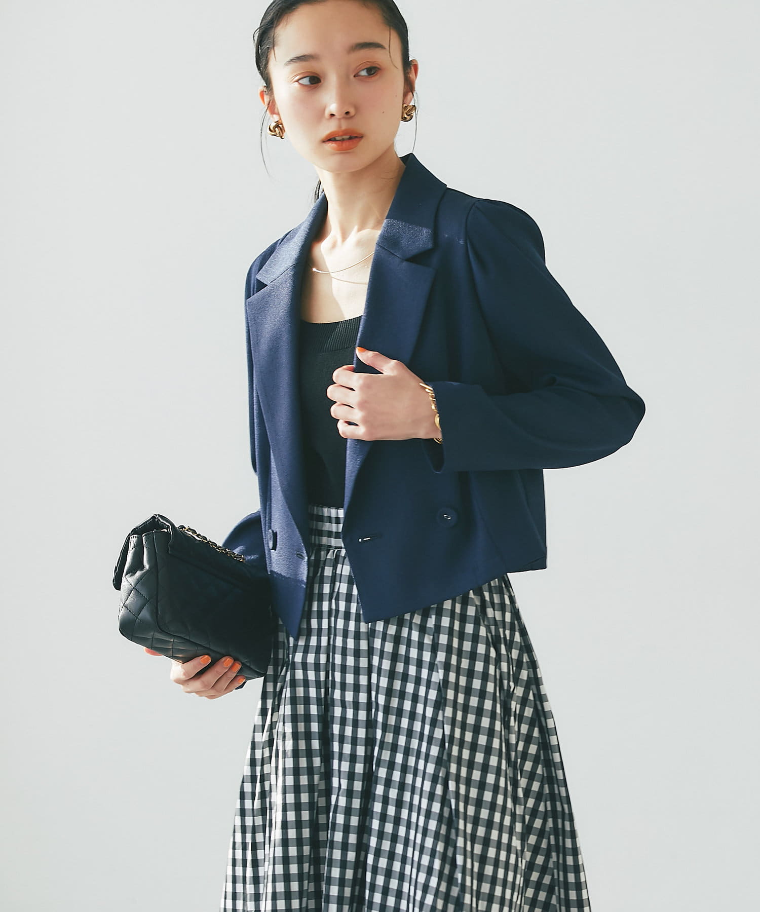 袖山にボリュームを持たせたデザインと、落ち感のある柔らかい生地でフェミニンな印象に