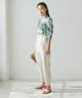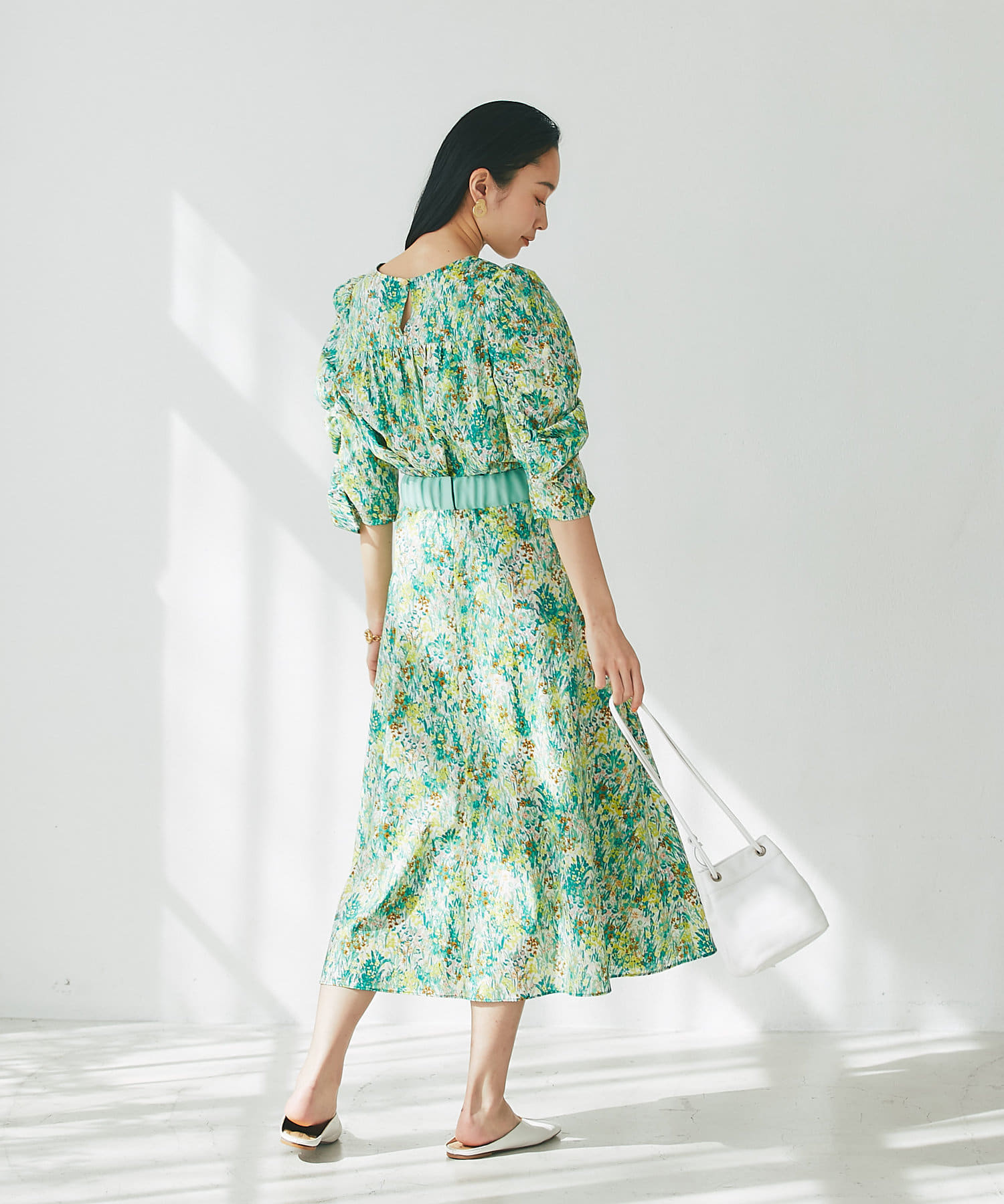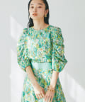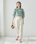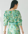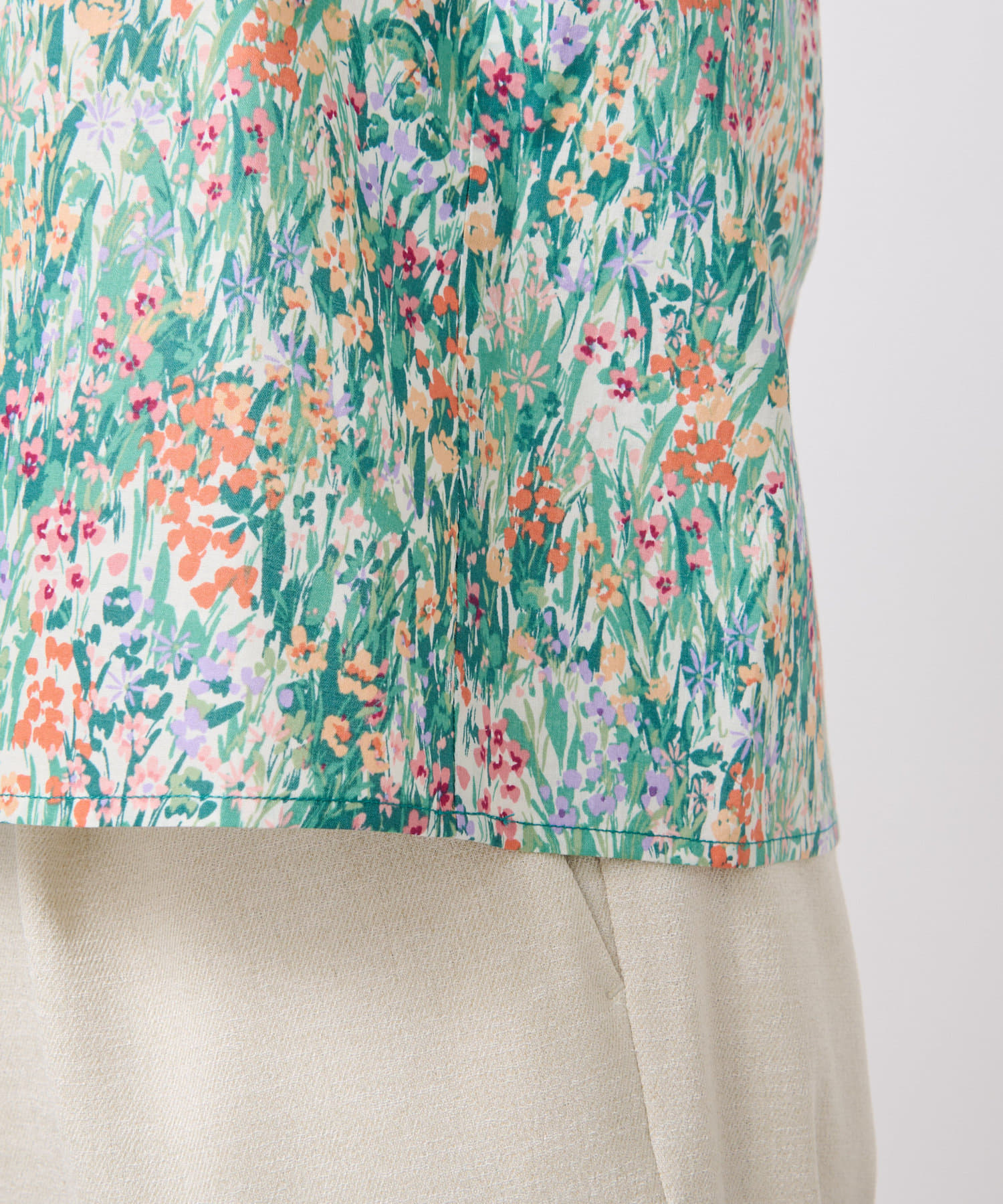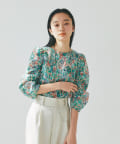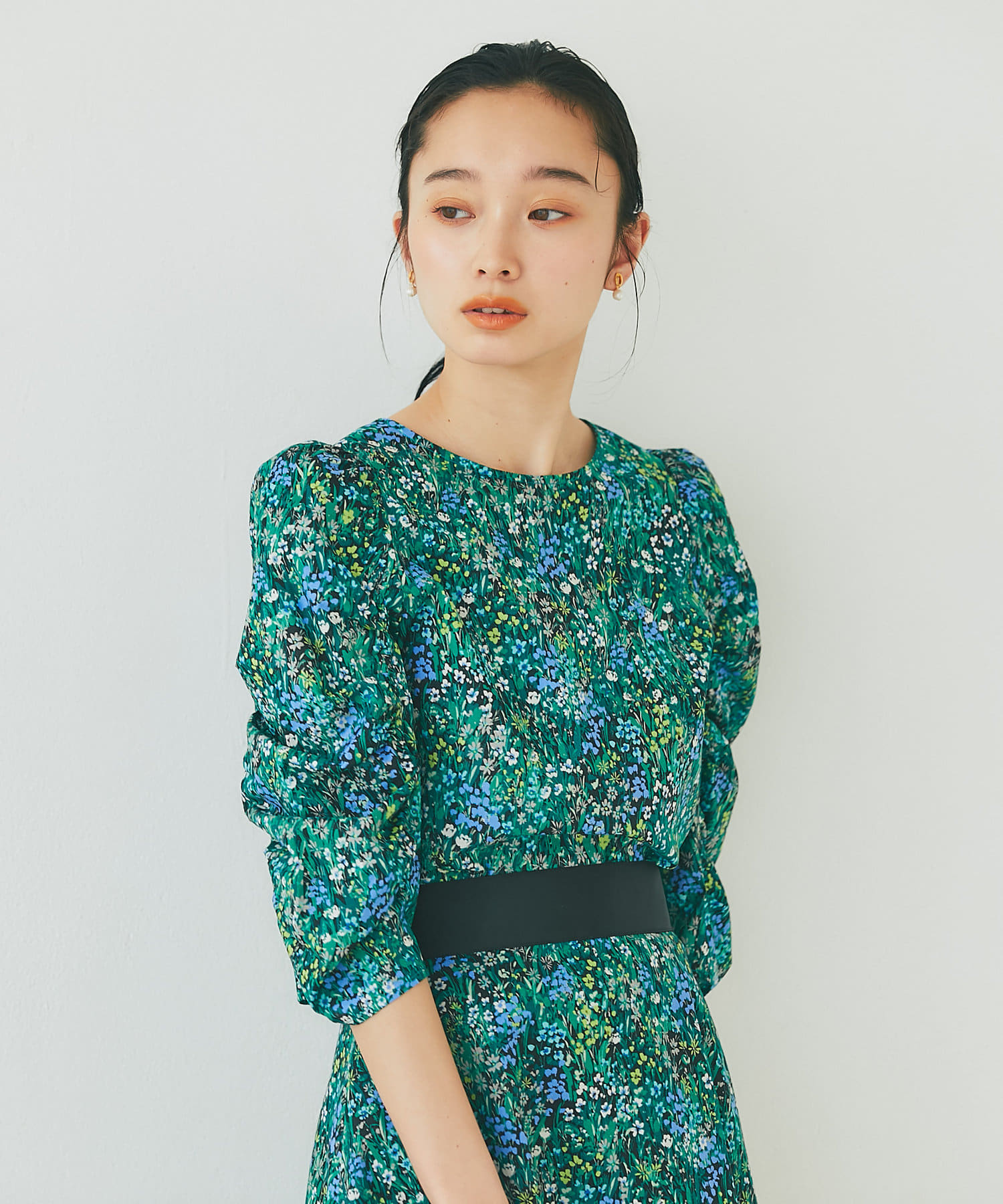 【セットアップ着用可能】フラワープリントギャザースリーブブラウス