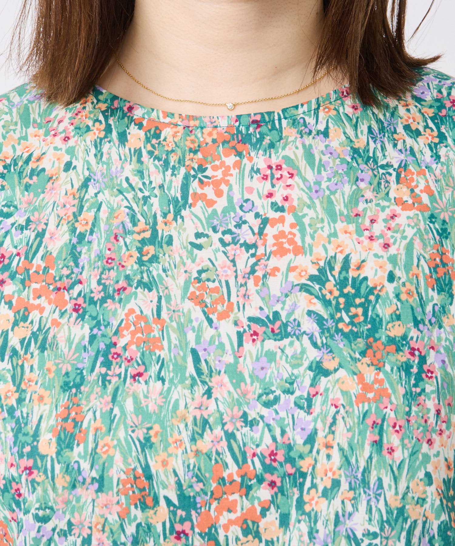 #大人カジュアル #大人可愛い #大人女子 #きれいめカジュアル #上品カジュアル #上品 #フラワープリント #コットン #ギャザースリーブ #ブラウス #デザインブラウス #小花柄
