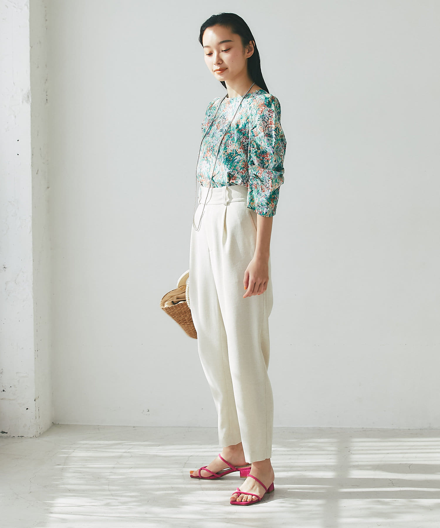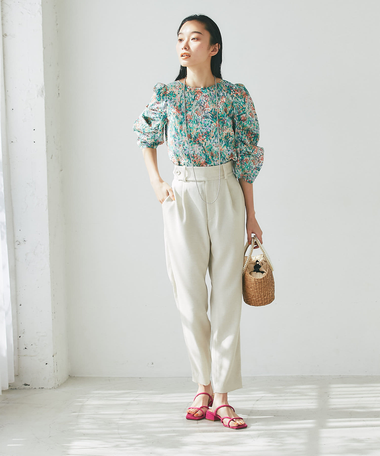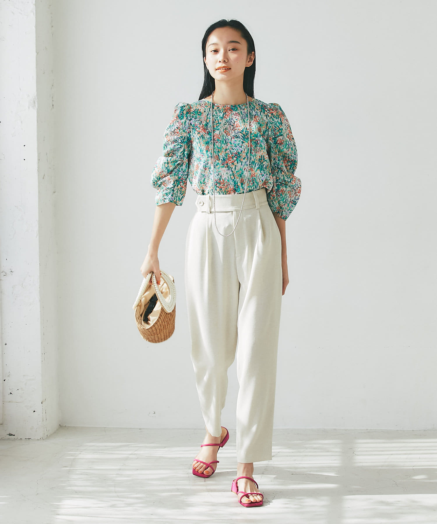 ギャザースリーブが大人かわいい小花柄ブラウス
