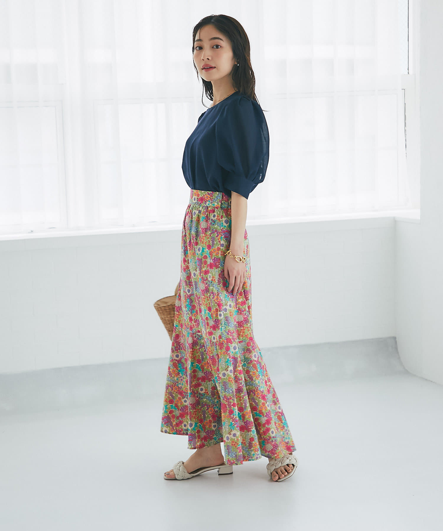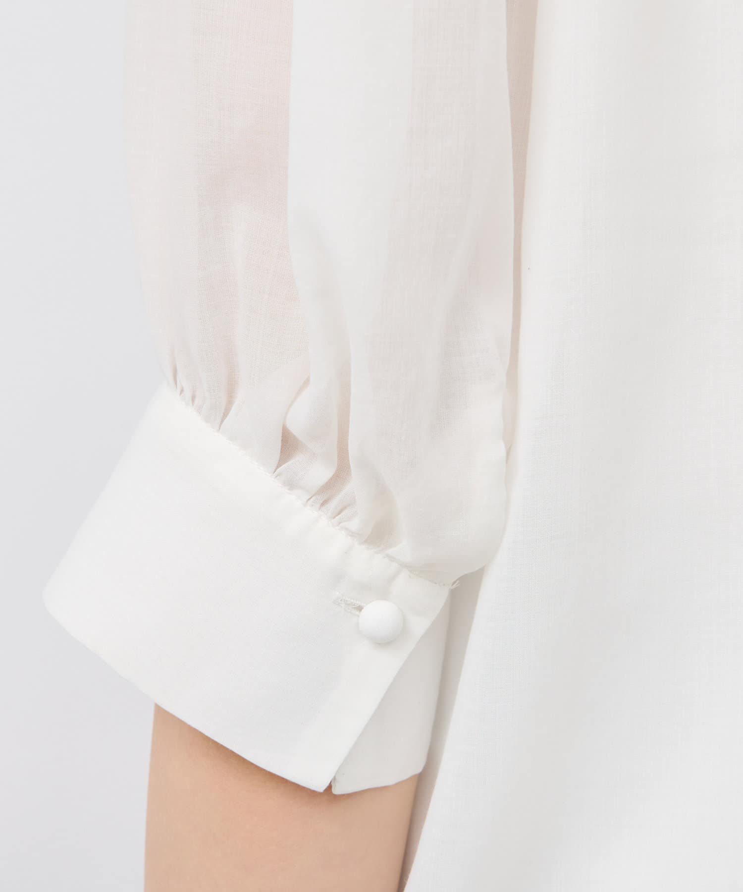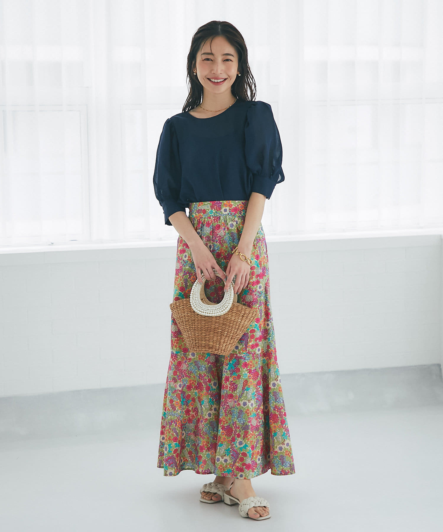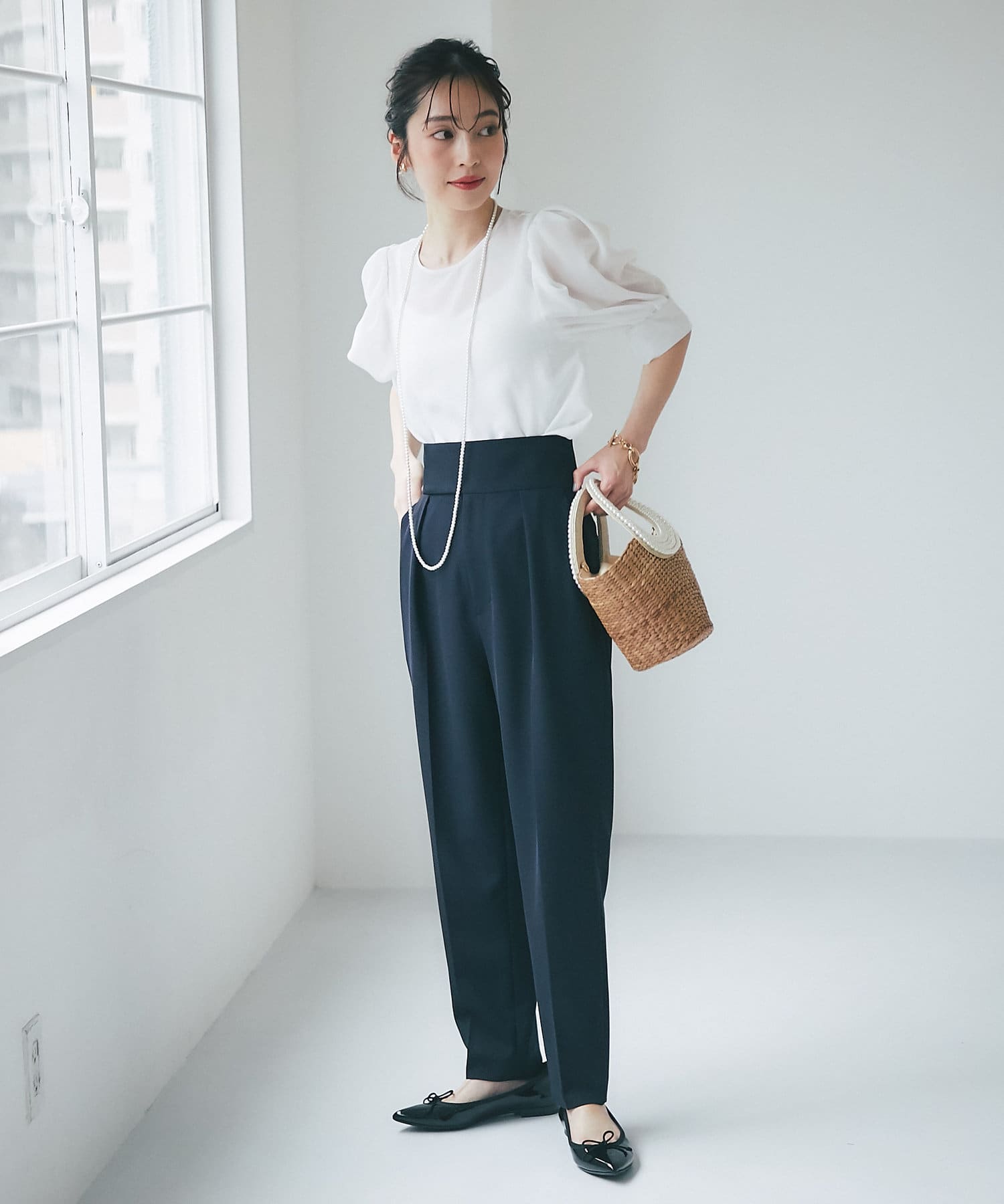 トレンドのシアーブラウスを、ボリュームスリーブデザインでボンボン流に大人可愛く仕上げました。